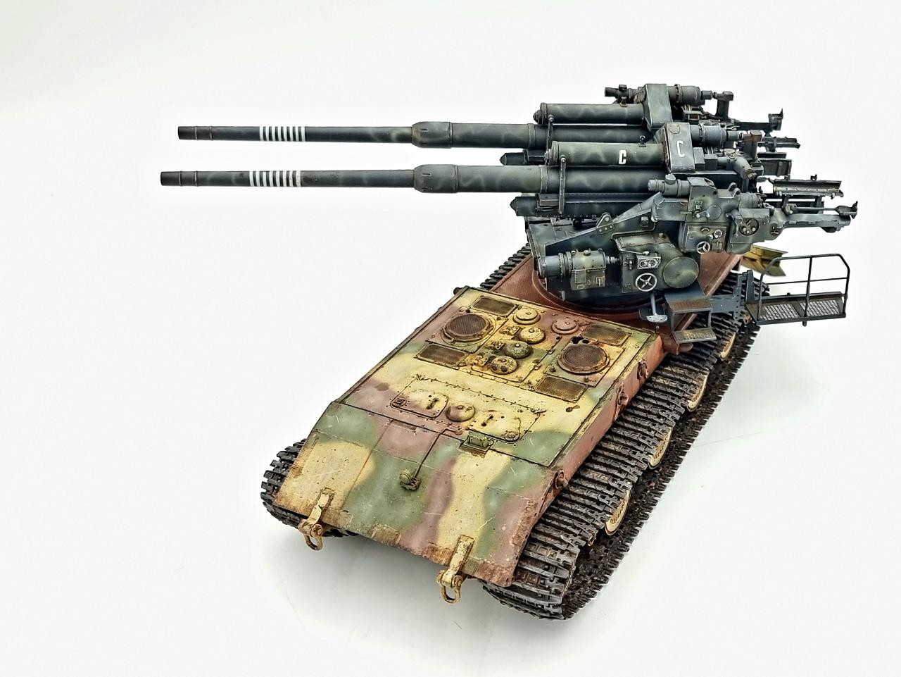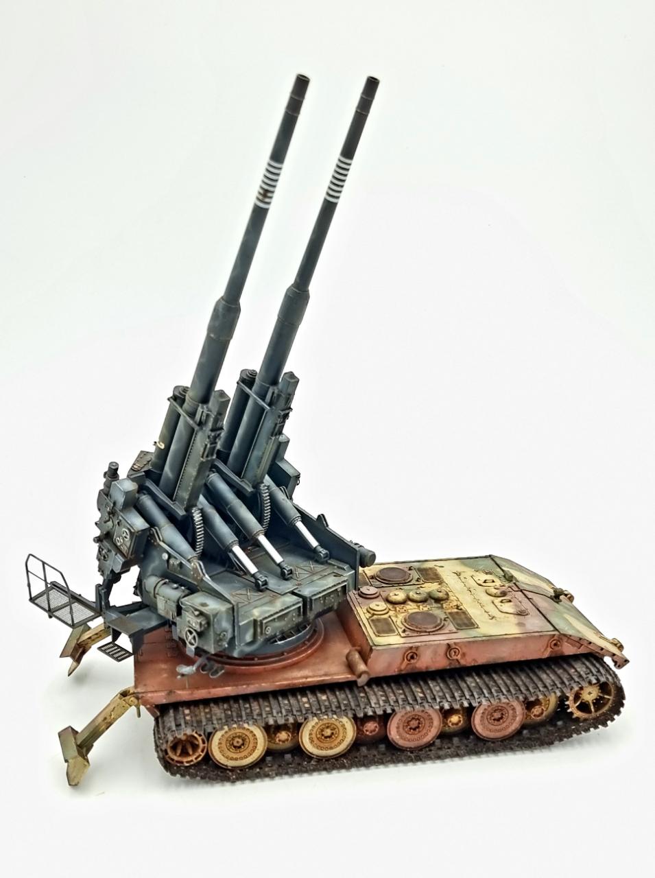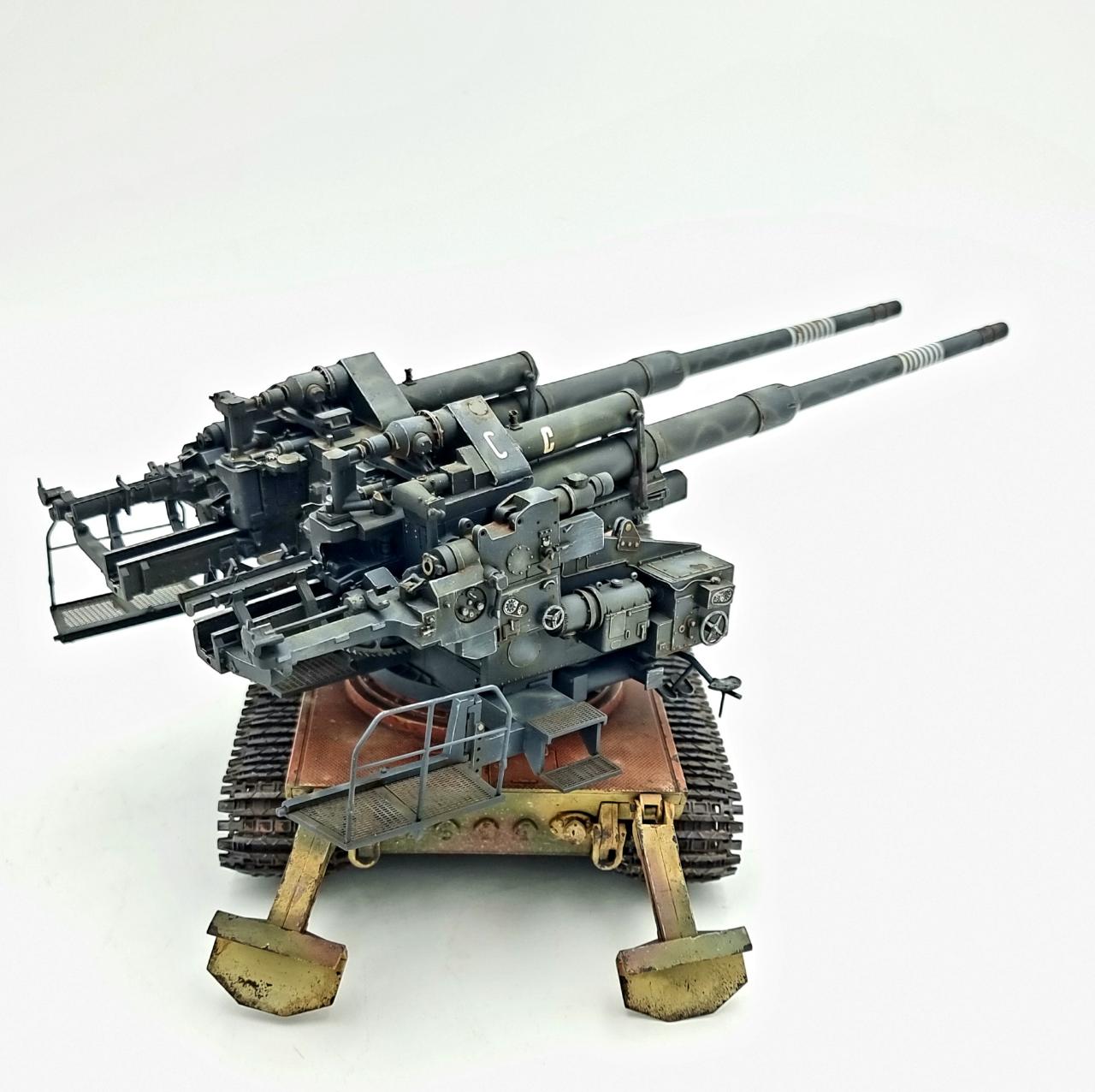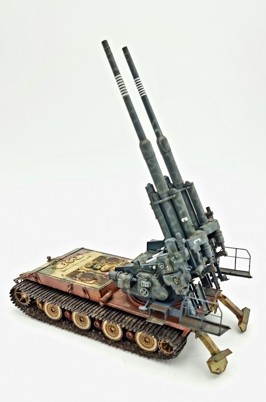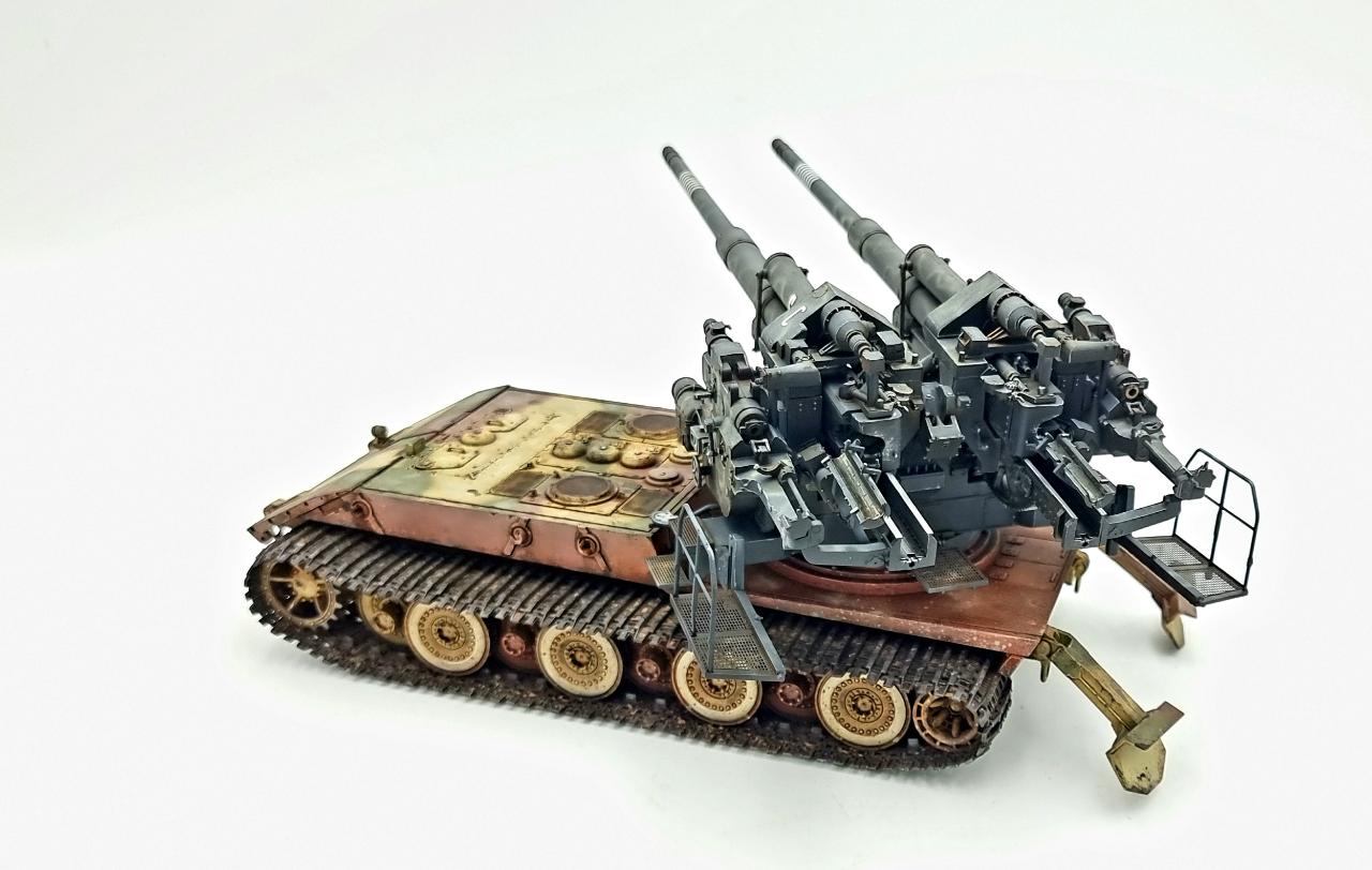 어뮤징하비의 바펜트리거 E-100과 타콤의 128mm Flak 40 쌍둥이포를 합쳐 완성하였습니다.