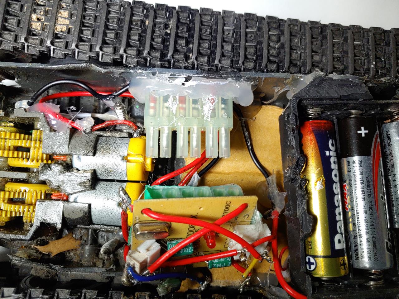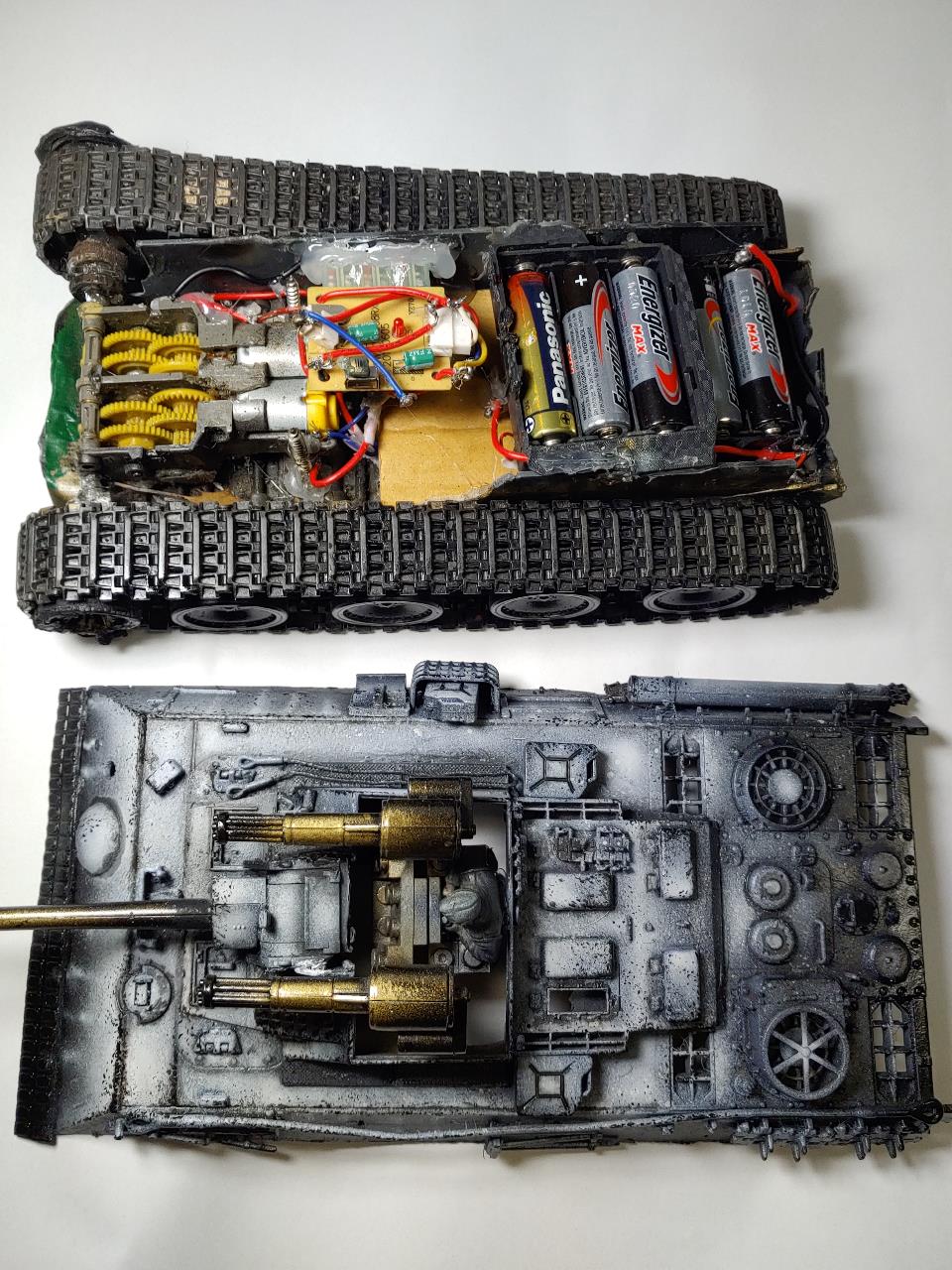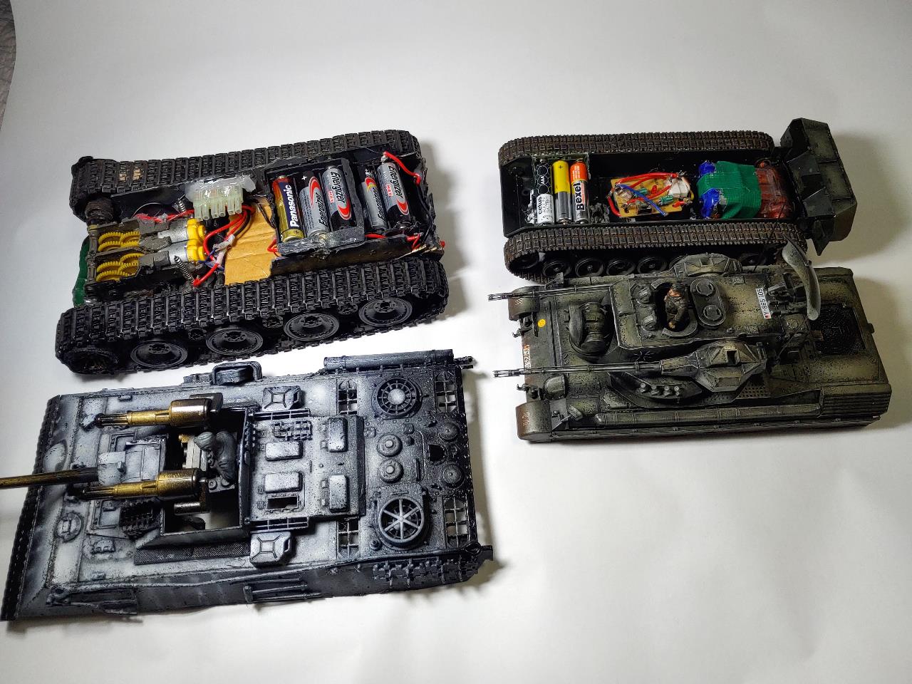 만들다 망친킷을 버리려니 아깝고해서 상상해서 조합했습니다 거기서 그치지않고 rc로 만들었으며 rc 수신기와 조종기는 다른탱크에도 공유할수있도록 커넥터에서 수신기를 빼서 다른탱크에 끼워주면 다른탱크도 굴릴수 있습니다.물론 기어박스 건전지박스 커넥터는 공유할수없습니다.커넥터를 끼울수있게 각각 만들어 주어야 되는데 커넥터 몸통과 전선 크기가 커서 좀 어렵더군요 제가한것보단 작은 커넥터를 사용하시면 좋습니다.전선도 얇은것을 쓰는게 훨씬편합니다.