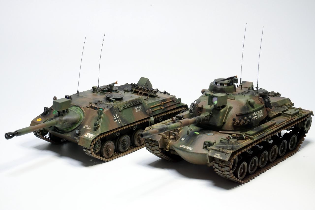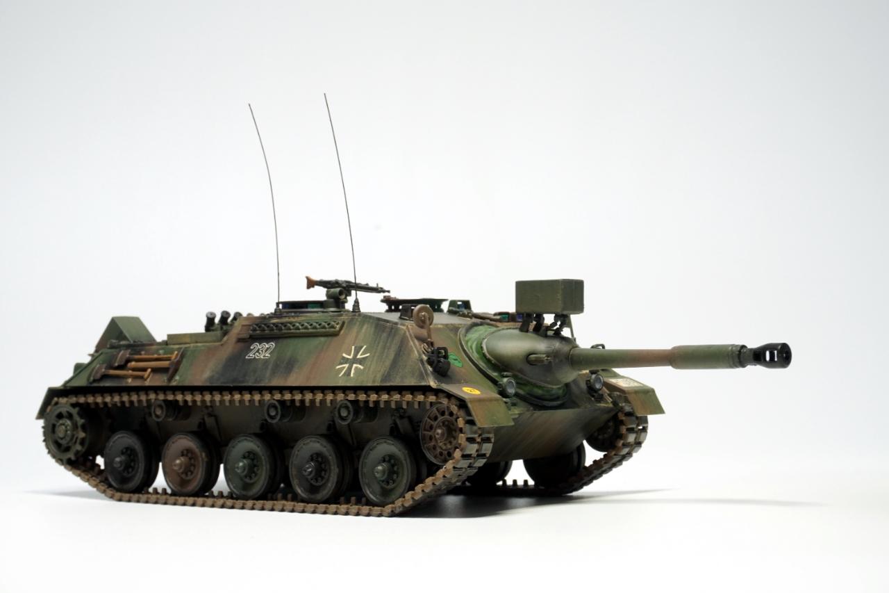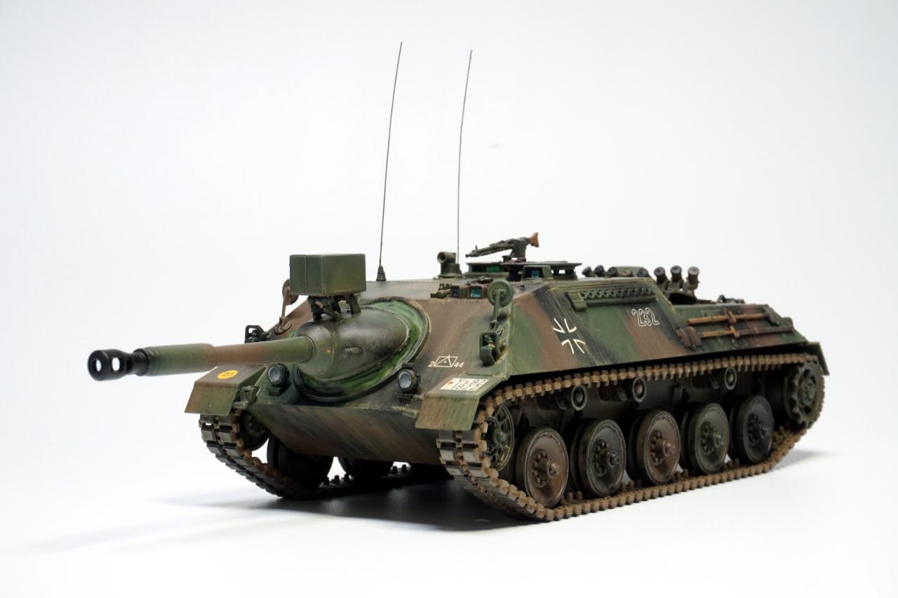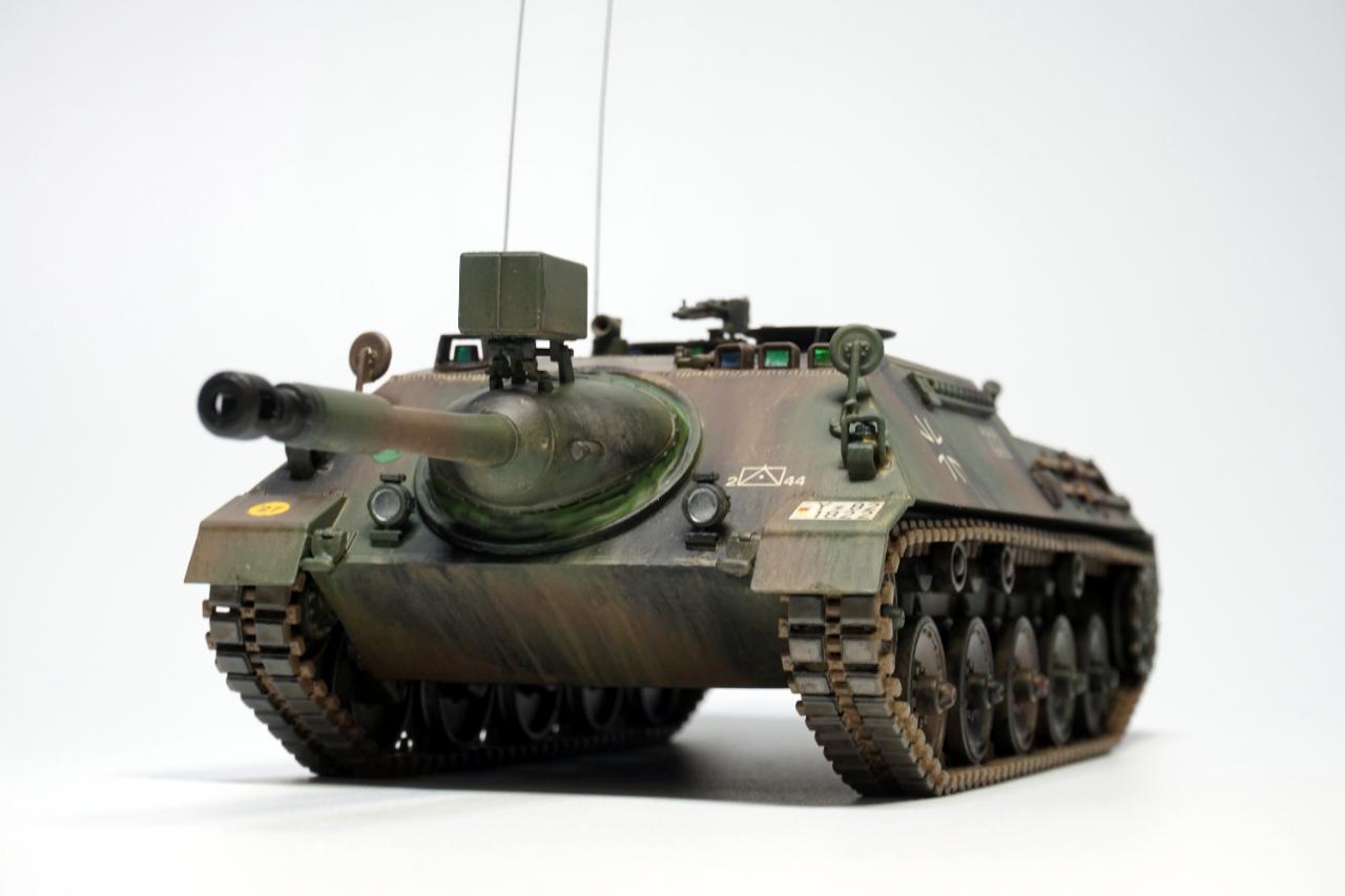 냉전 시기 서독에서 개발된 최후의 구축전차, 카노넨 야크트판저 입니다. 2차대전 독일군의 구축전차와 빼닮은 모습을 하고 90mm 주포를 장착한 모습입니다.