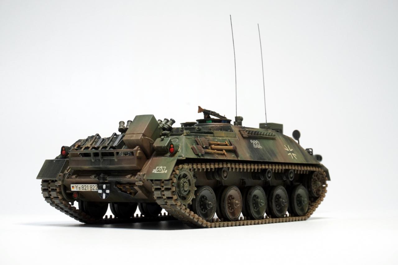 레벨에서 2008년에 출시한 키트로, 인젝션 키트로는 유일한 것으로 알려져 있죠. 키트는 90mm 주포를 단 구축전차 버전과 주포를 탈거한 포병용 관측 장갑차 버전을 구현할 수 있게 되어있습니다. 조립은 큰 어려움 없이 진행하였으나 차체 전면 상하부 접합면에 큰 단차가 있어 메워주었고, OVM 공구들의 디테일이 투박하다는 단점이 있습니다.