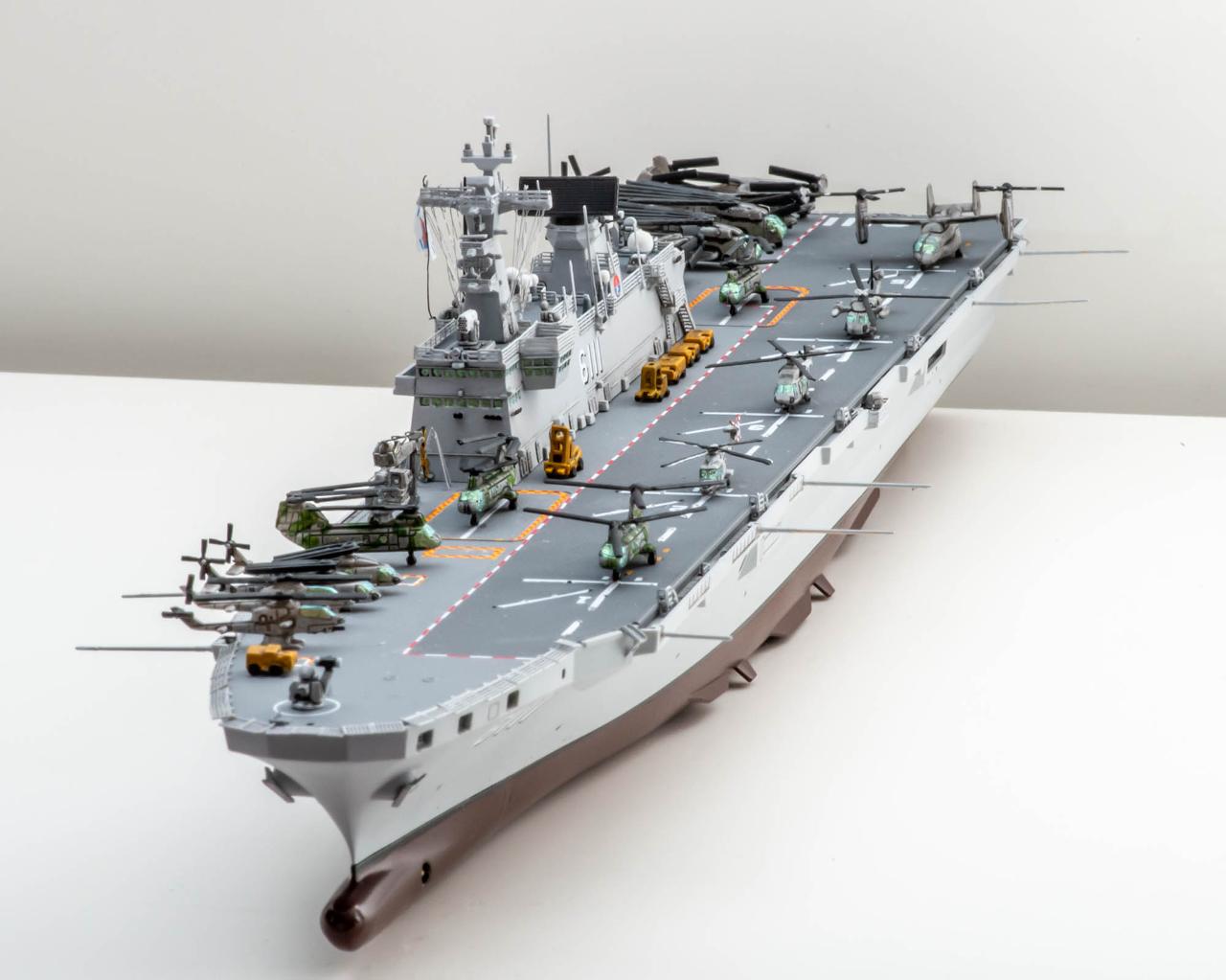 아카데미 1/700 기본킷 + Tetra model 포토에칭 별매킷으로 제작한 독도함입니다. 그 외 하비보스의 USS WASP LHD-1 킷에서 함재기를 빌려(?)왔습니다.