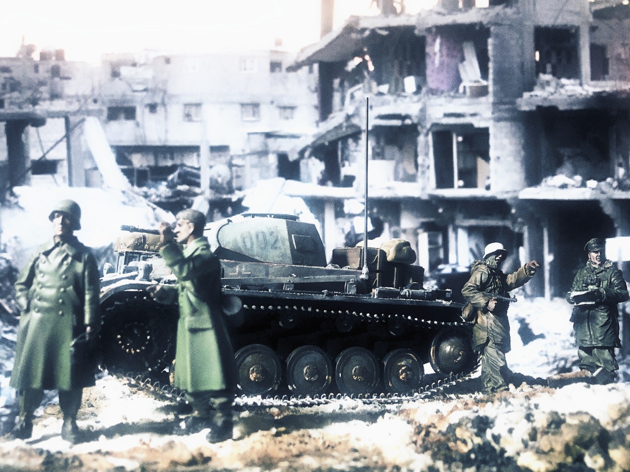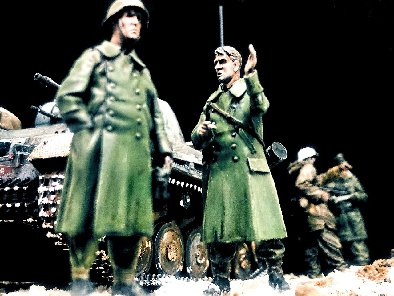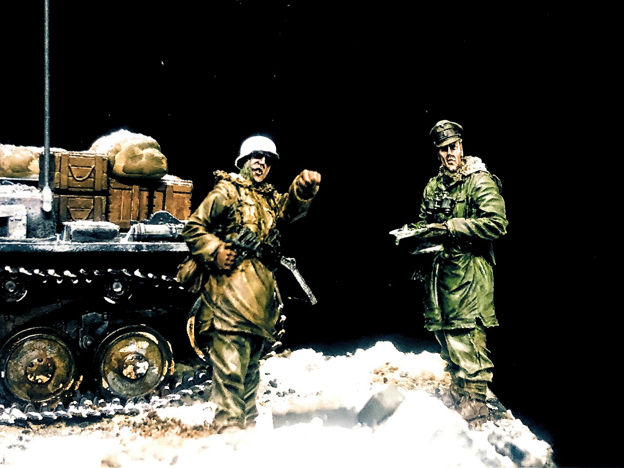 피규어는 언제 구입한지 알 길이 없는 방구석에 굴러다니던 레진 인형들을 사용했고 베이스는 쓰고 남은 미니아트 사의 파괴된 거리 조각과 각종 지면 표현제, 정크 부품들 그리고 베이킹 파우더를 이용해서 만들었습니다.