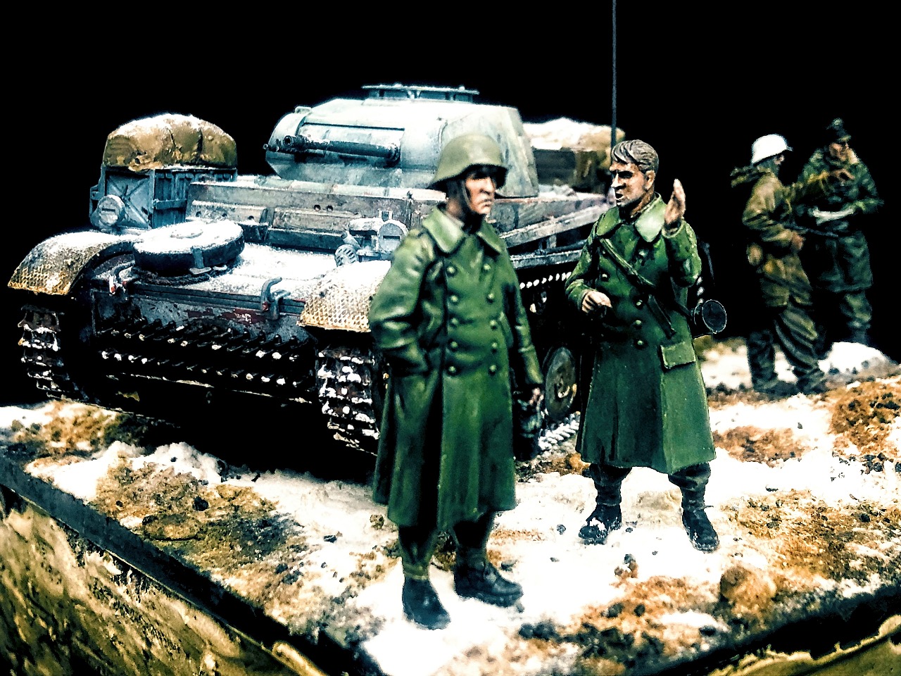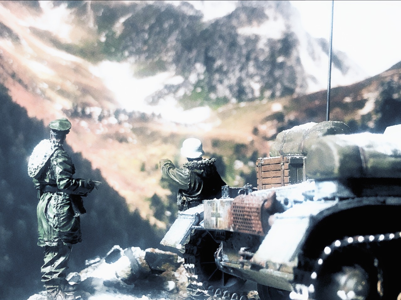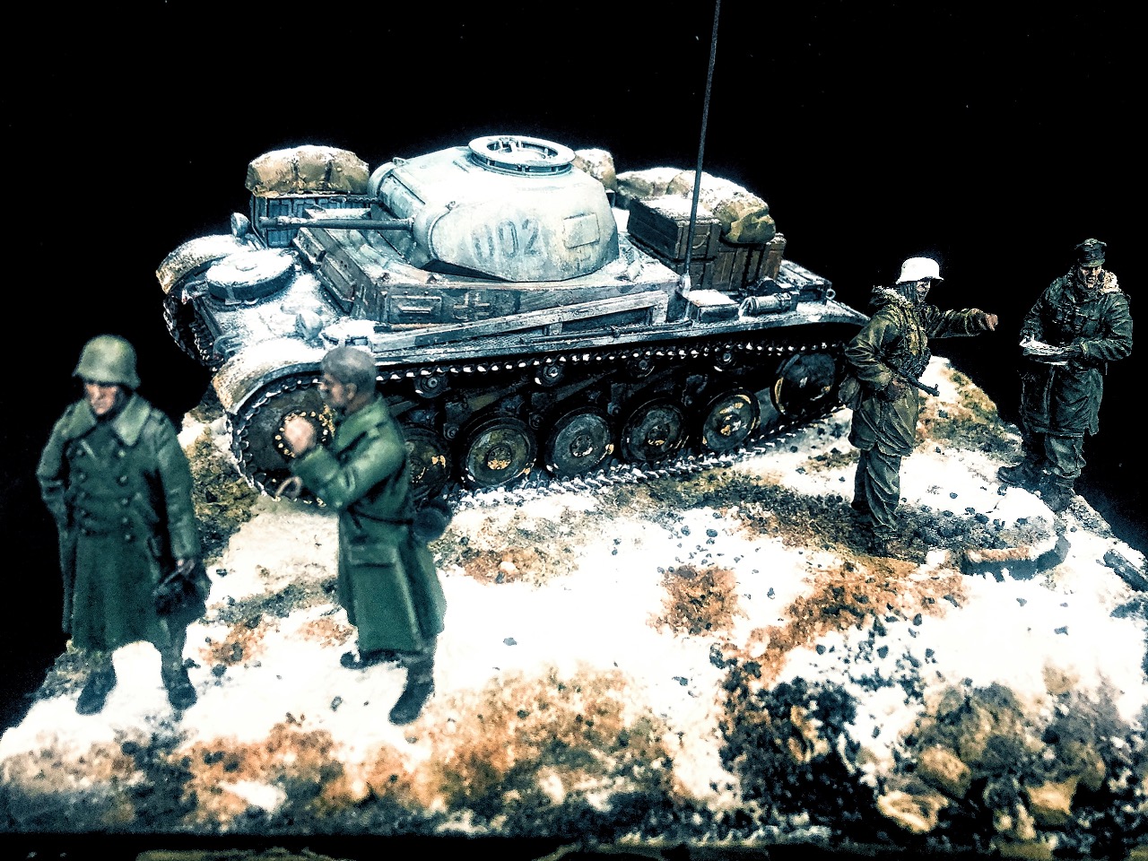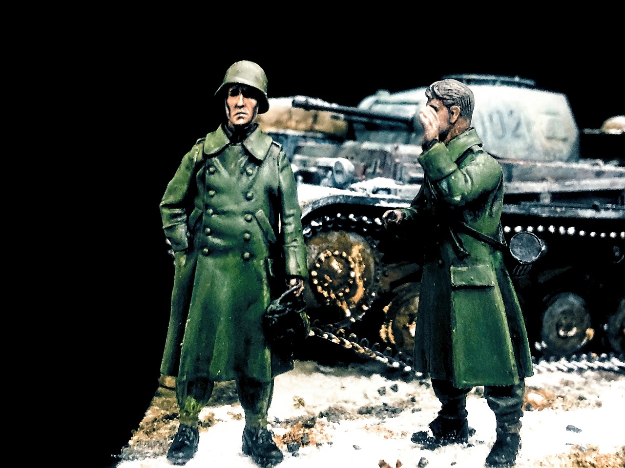 피규어는 언제 구입한지 알 길이 없는 방구석에 굴러다니던 레진 인형들을 사용했고 베이스는 쓰고 남은 미니아트 사의 파괴된 거리 조각과 각종 지면 표현제, 정크 부품들 그리고 베이킹 파우더를 이용해서 만들었습니다.