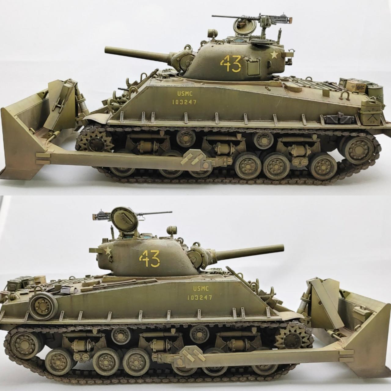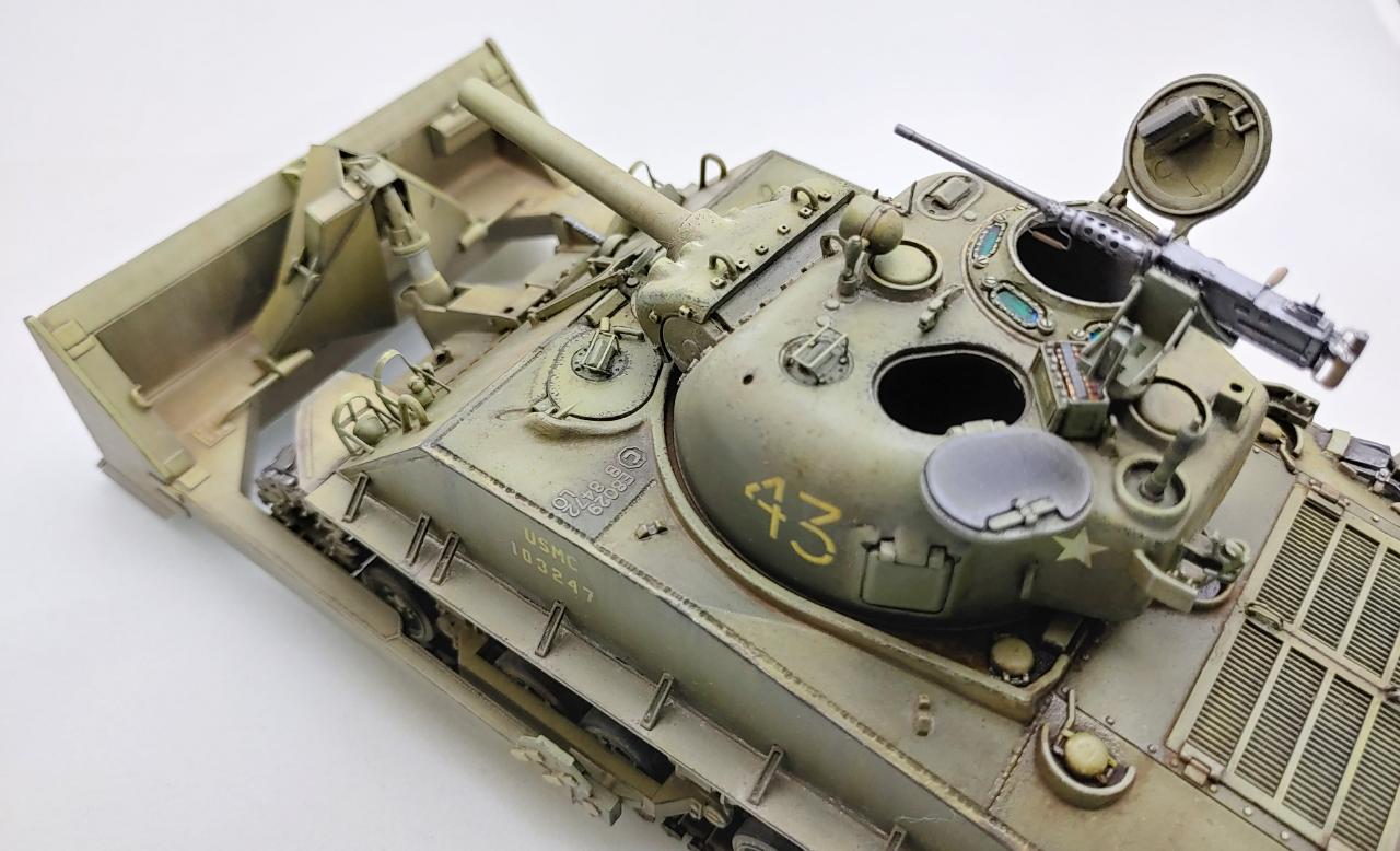 적용된 포탑번호 등은 Star Decal의 한국전 참전 미해병대 전차세트에서 가져왔습니다. 마크와 번호가 덕지덕지 붙어 있던 미육군 2차대전 셔먼에 비교하여 한구전 해병대 셔먼은 좀 얌전한 편입니다.
