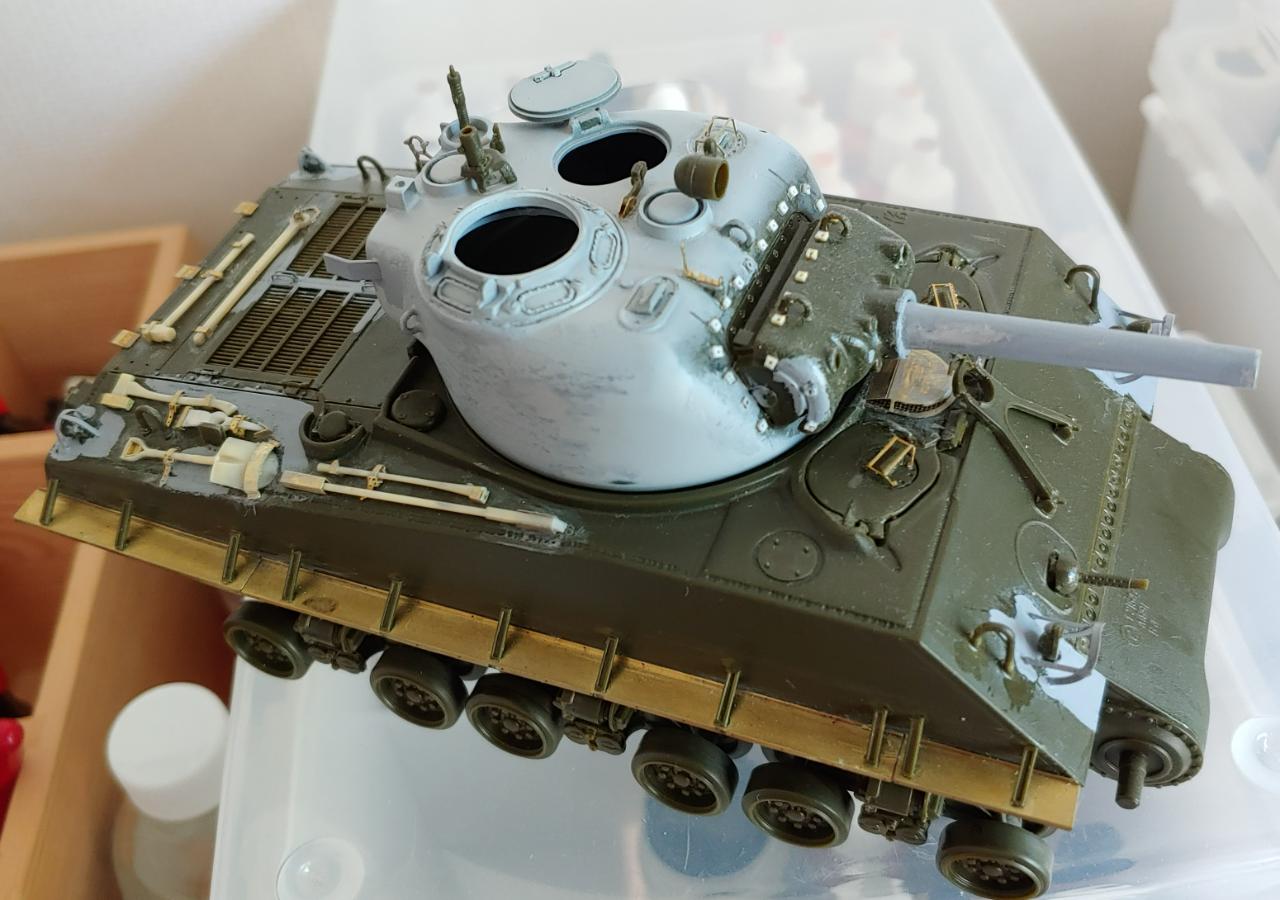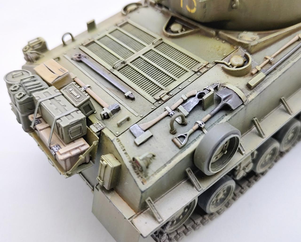 OVM등의 모양이 시원찮은 부분은 Voyager Model의 레진제 악세사리(미군장비품 세트)와 에칭제 벨트 등을 적용해 주었습니다. 아카데미 키트는 최근에 나온 중화권의 셔먼에는 못 미치지만 가성비도 좋고 별매 옵션으로 Detail-UP한다고 생각하면 밑바탕이 되는 키트로써 매우 좋다고 생각합니다. 페리스코프나 장구류의 최소한의 형상 등은 이탈레리 보단 좋다고 생각합니다.