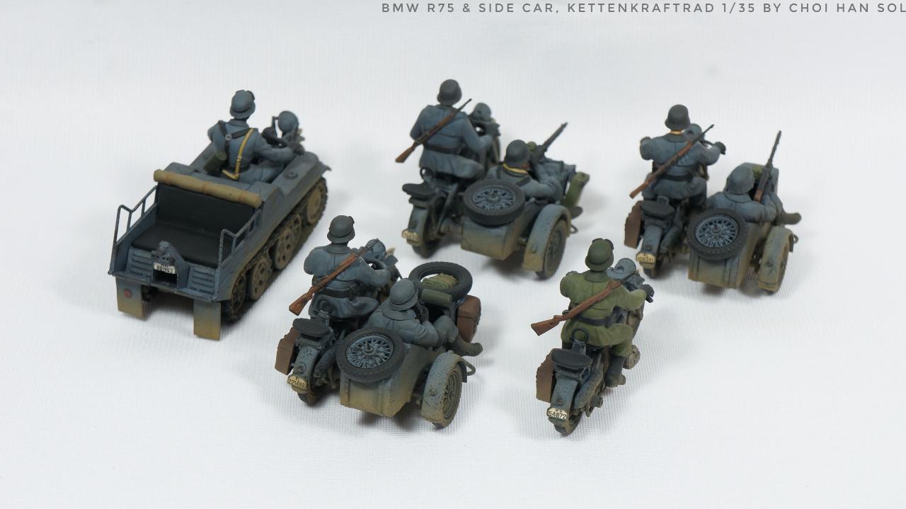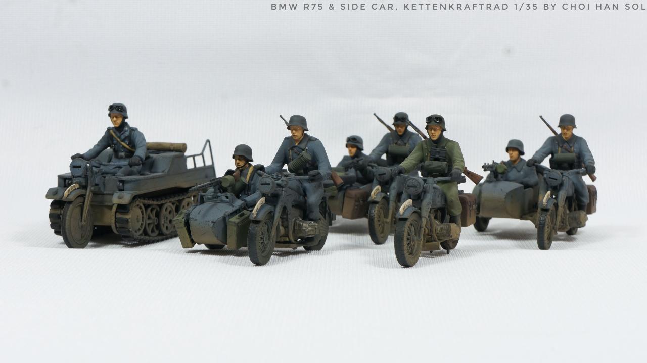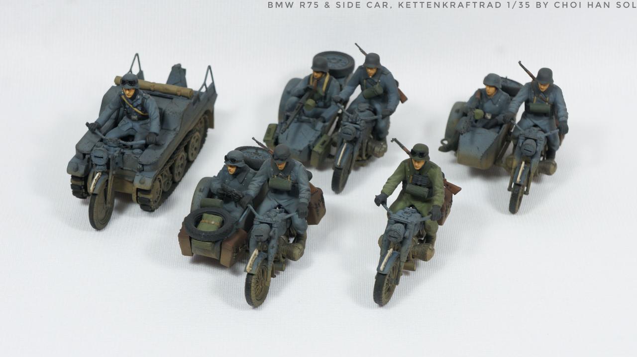 도색의뢰로 진행하게된 타미야제 구판 케텐크라트와 오토바이&사이드카입니다.