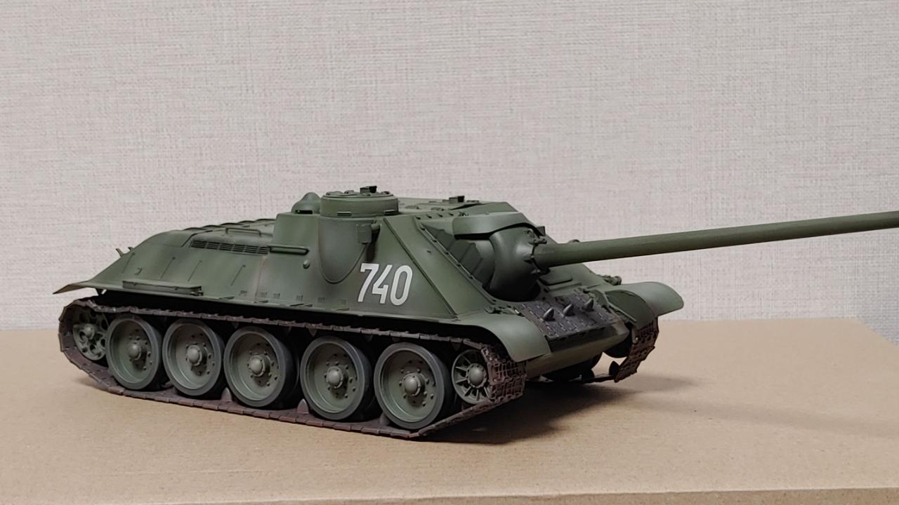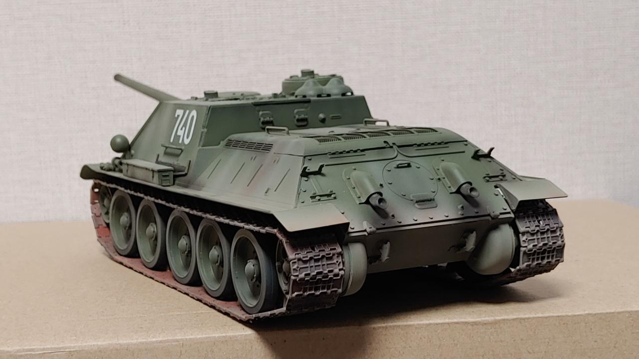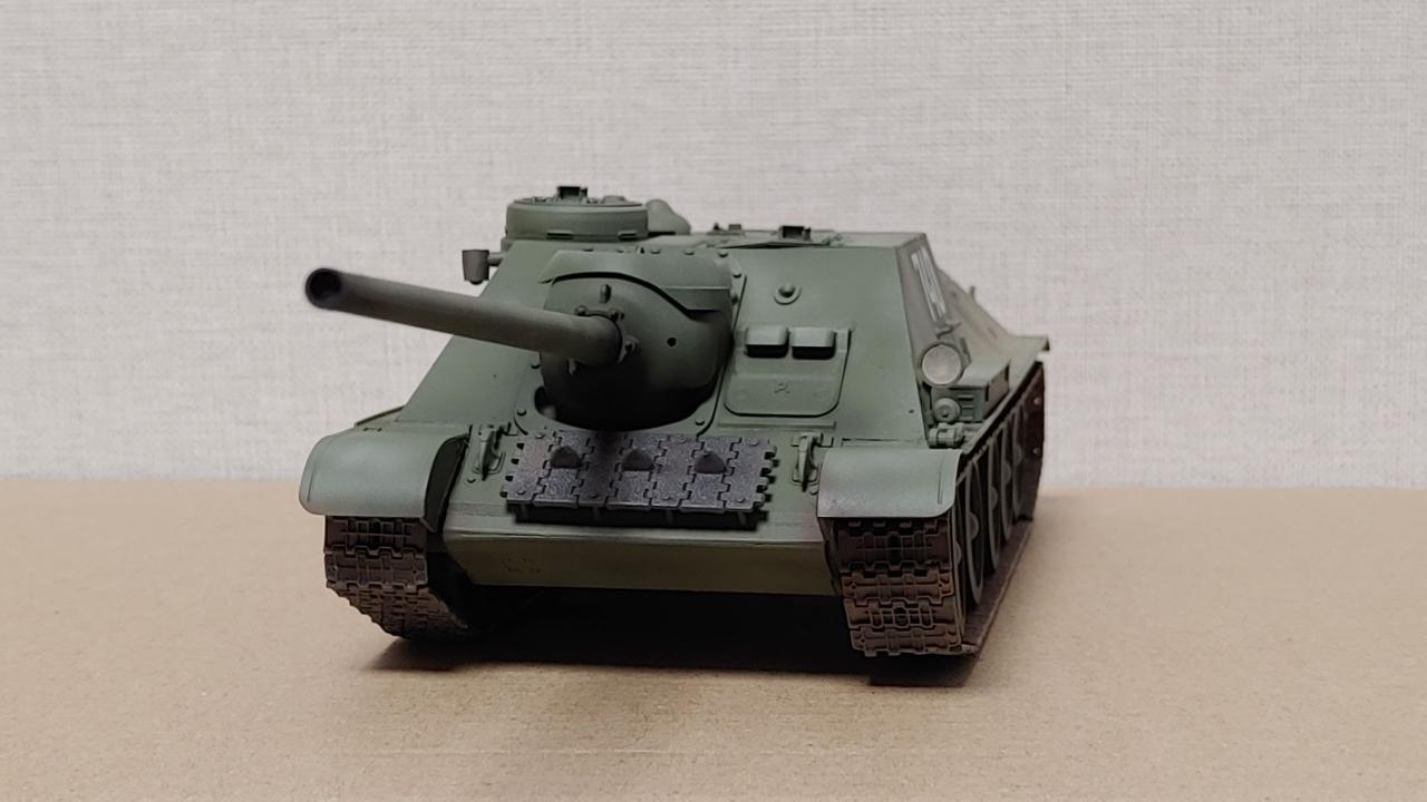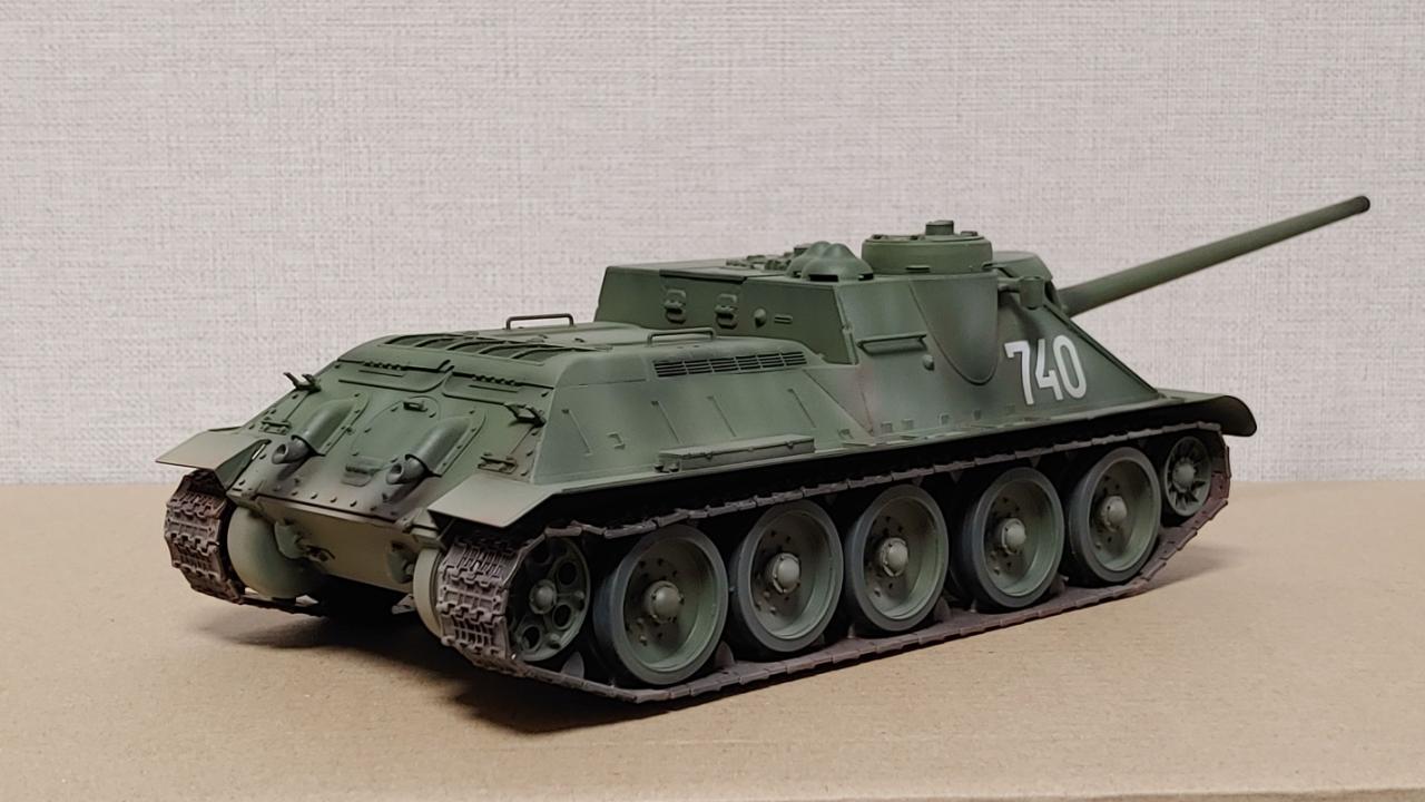 아카데미의 즈베즈다 재포장판 SU-100 대전차자주포입니다...납작하고 통통한 느낌이 매우 귀엽습니다...