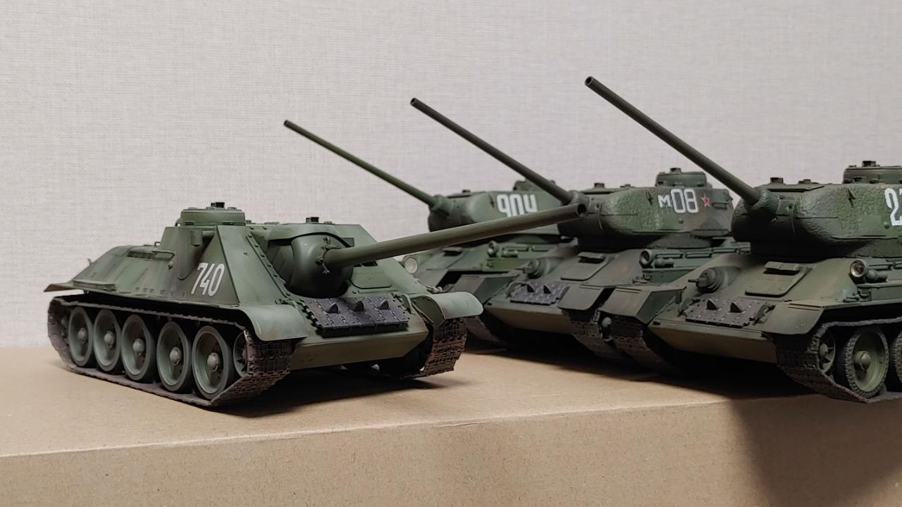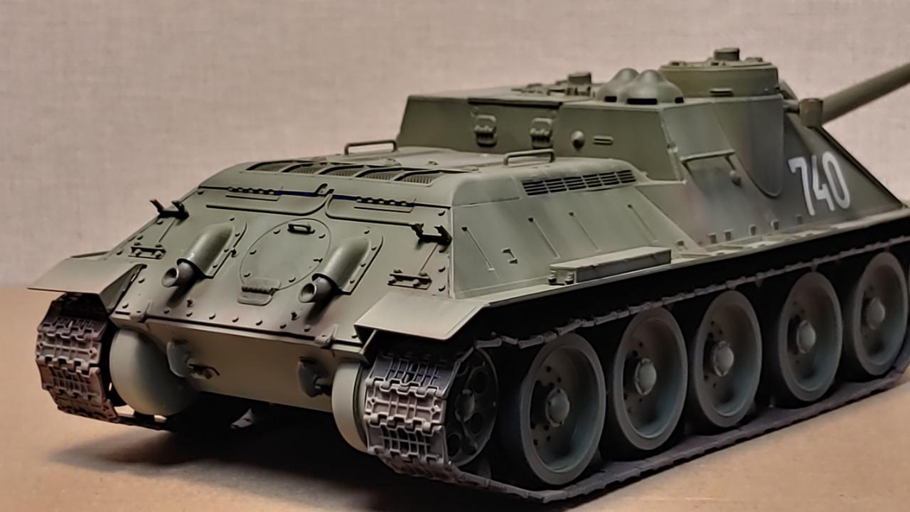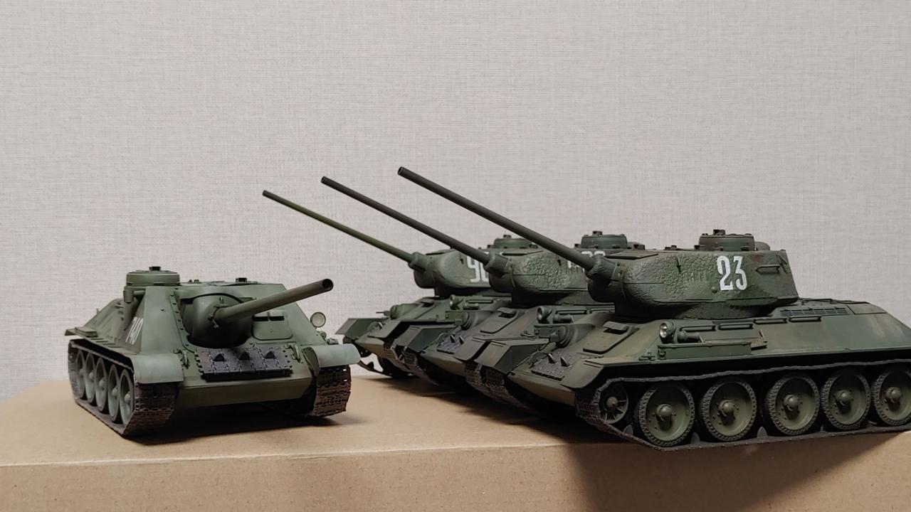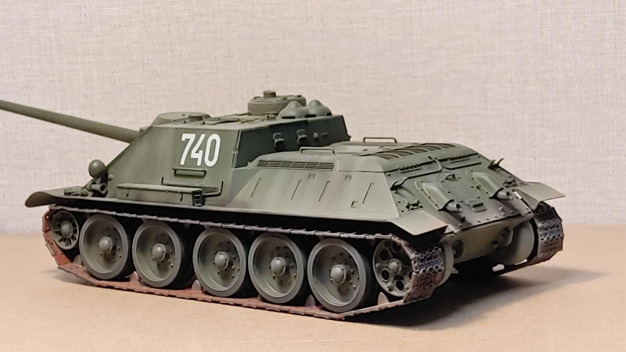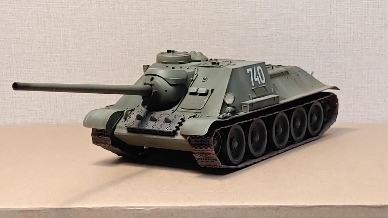 아카데미의 즈베즈다 재포장판 SU-100 대전차자주포입니다...납작하고 통통한 느낌이 매우 귀엽습니다...