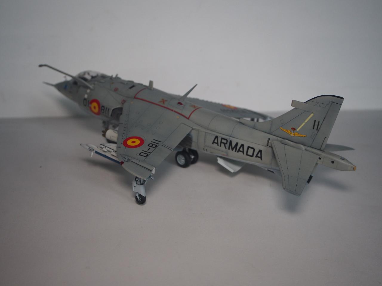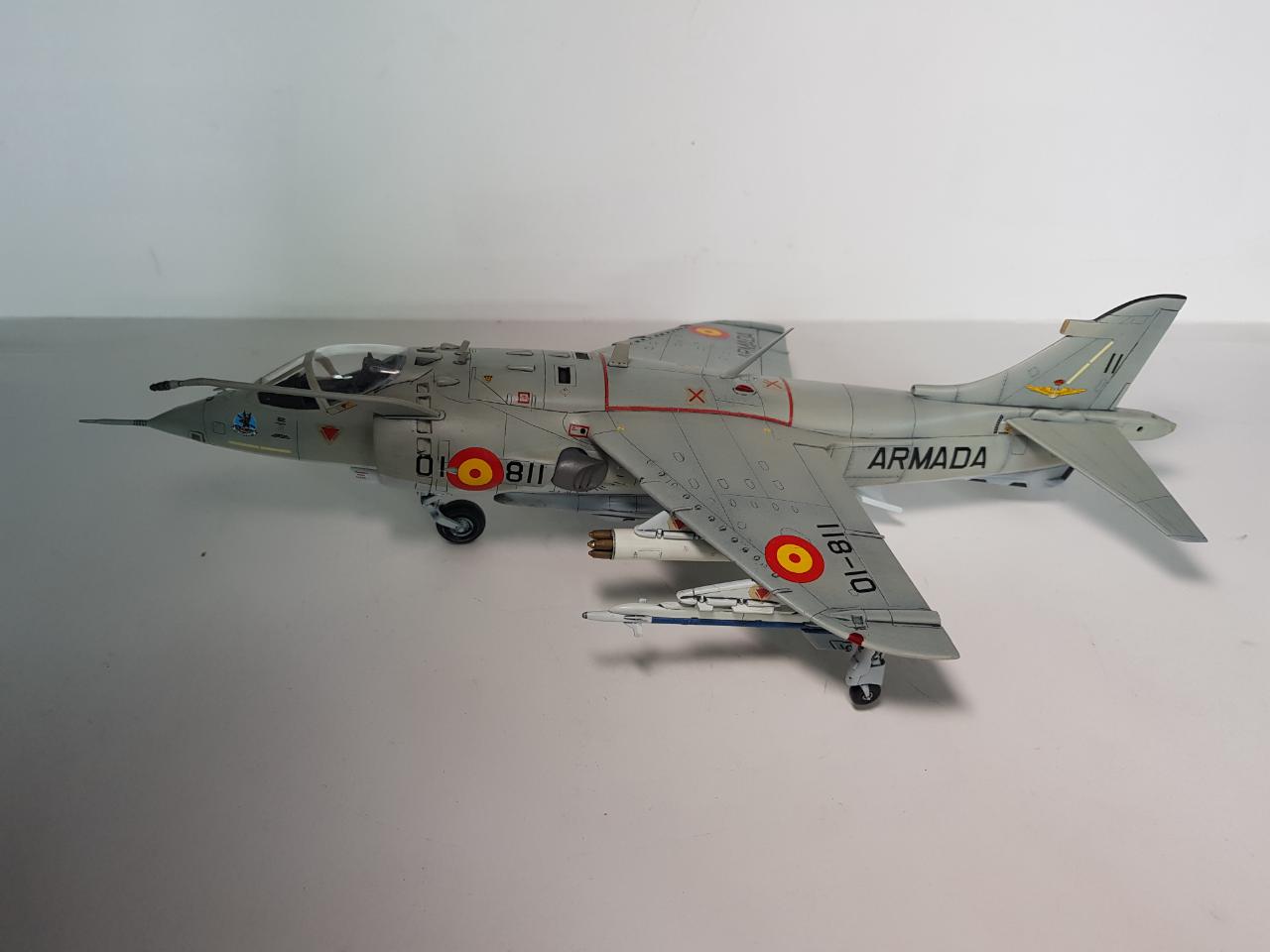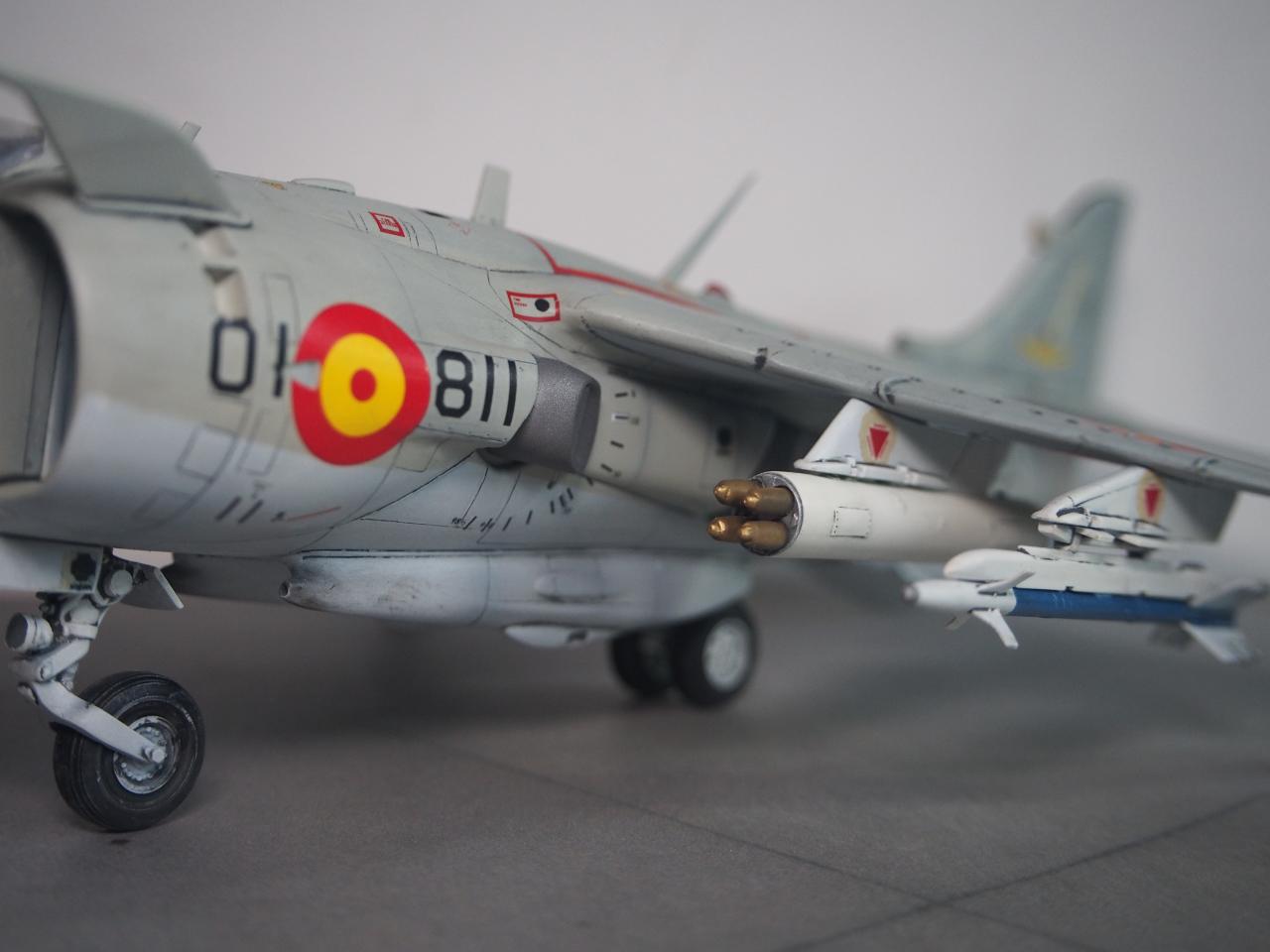 패널라인 작업을 하면서 미국 해병대형으로 할까 아님 영국 공군형으로 할까 고민하다가 기왕 작업하는거 그나마 국내에서는 잘 안보이는 스페인 해군형으로 결정하고 거기에 추가되는 기수 전방 측면 카메라, 수직 미익 및 동체 후방 끝단에 장착되는 레이더 경보 수신기를 추가해 주었습니다.