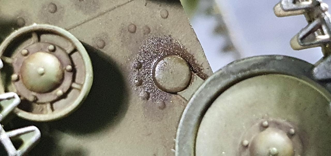 포탑 상면의 경우는 도드라지는 리벳 같은 부분에 약간 하이라이팅을 해주었습니다.