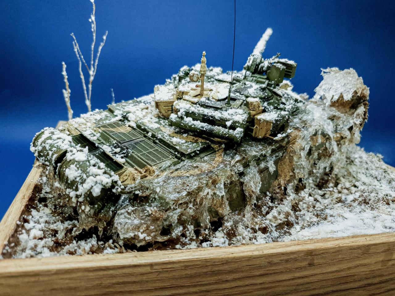 동계훈련컨셉을 생각하며 러시아하면 떠오르는 추운 눈, 진창, 웅덩이 등을 이미지화하며 눈 덮힌 진창의 웅덩이를 망설임없이 물을 튀며 질주하는 모습을 구현해보려 노력했습니다. (실상 유튜브영상중 진창에 빠져 못나오다 구난되는 영상에서 많은 힌트를 얻었습니다^^;)