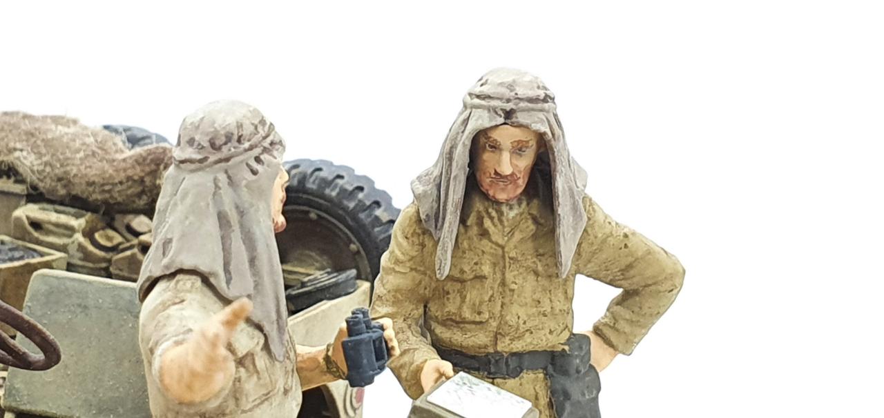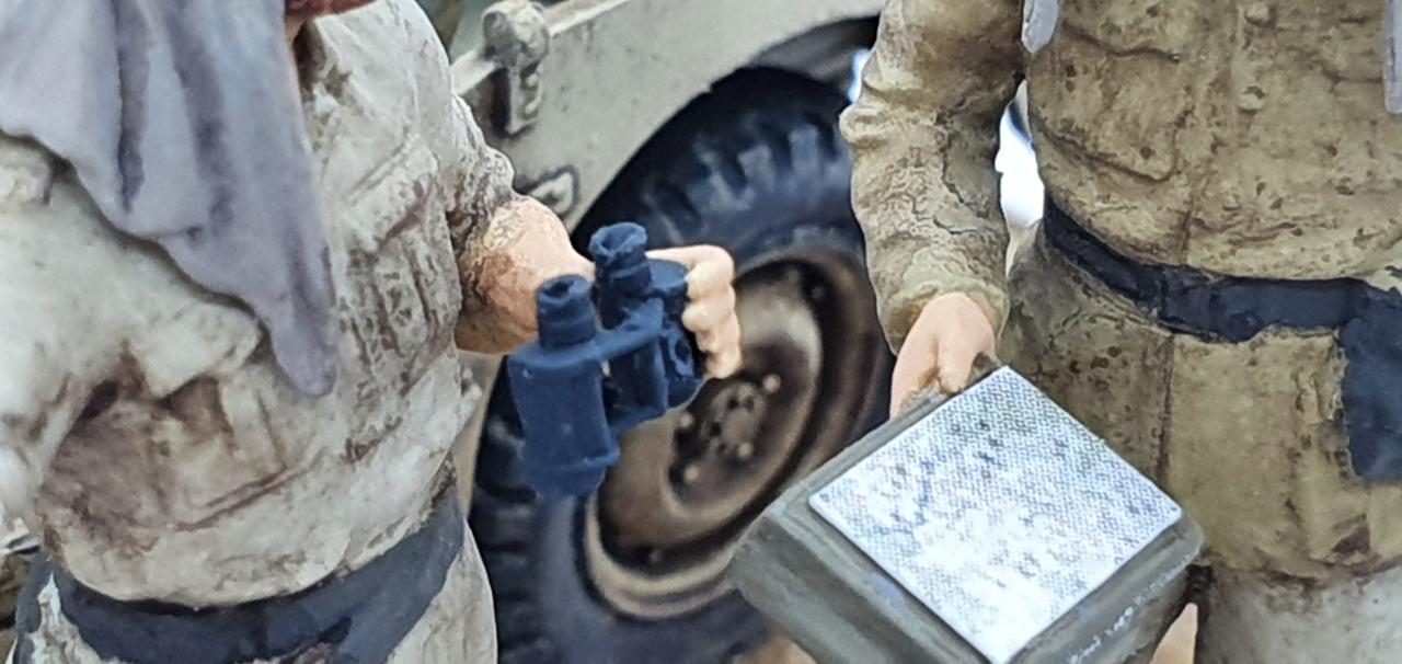 인형은 MB인형을 타미야 LRDG 차량과 합본하여, 타미야에서 다시 출시한 것입니다. 그 키트에서 인형 2명을 이번에 사용하였습니다. 인형과 멍멍이는 다른 가공 없이 그대로 스트레이트로 작업하였으며, 원형 베이스에 배치했습니다.