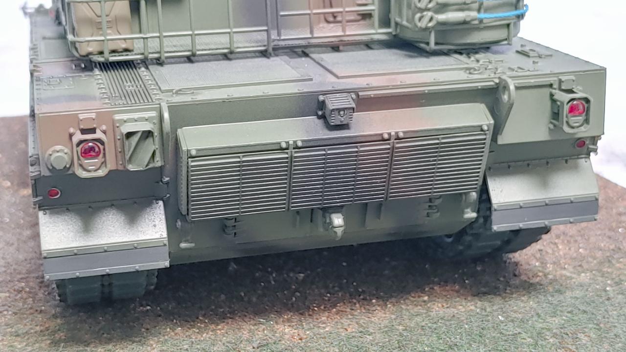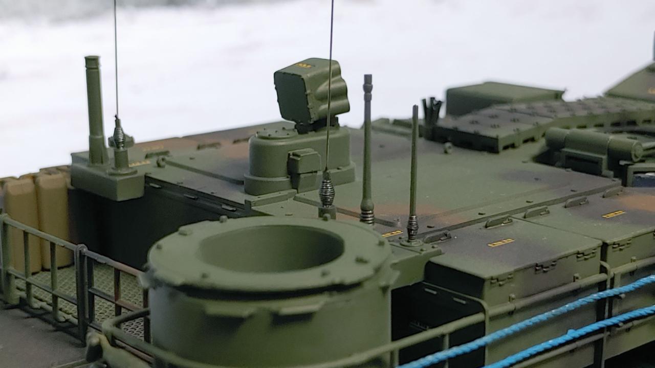 궤도는 군제 스텐레스, 미그 트랙워시, 타이어블랙을 사용해주었습니다...APS의 붉은 렌즈는 실차량 사진을 토대로 칠해주었습니다...