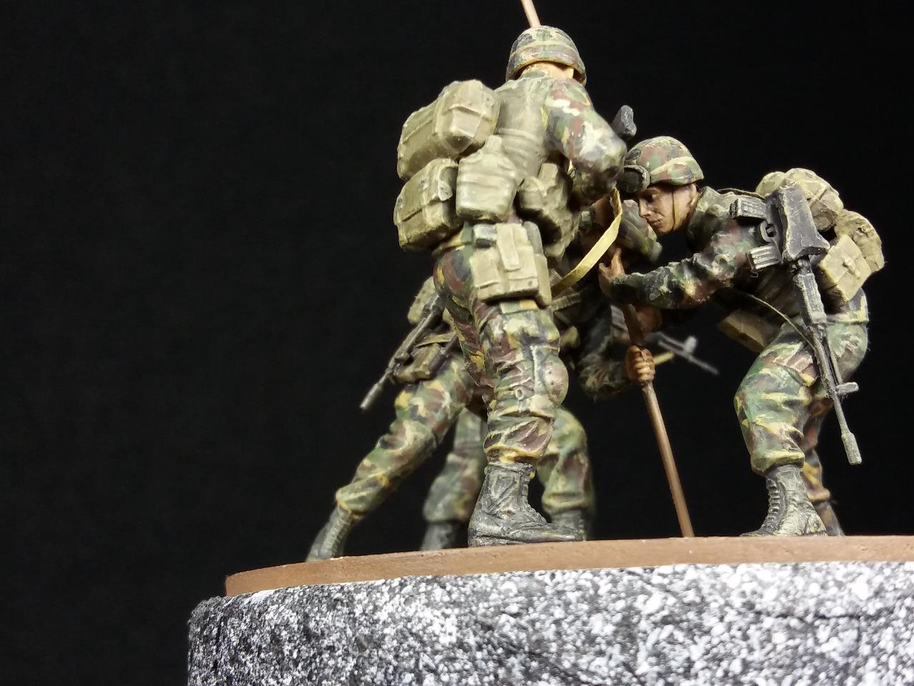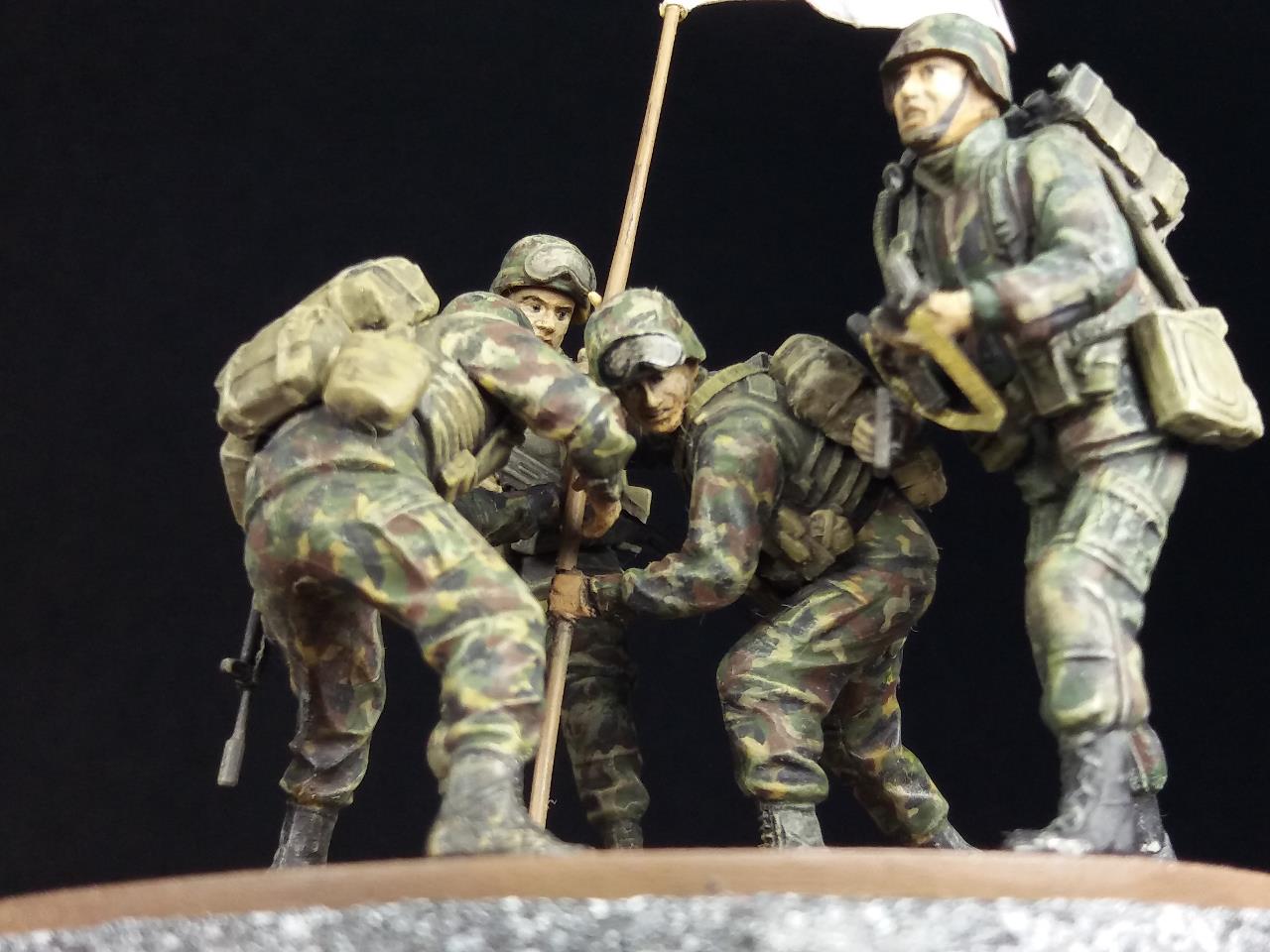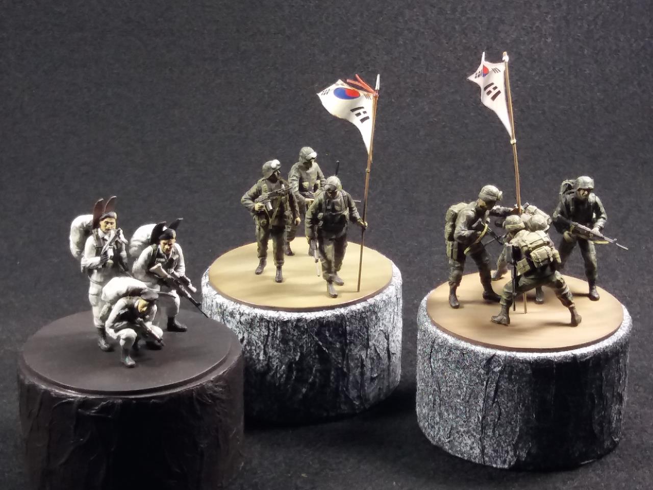 페기하려던 인형에 도색을 신나로 닦아 재 사용하였읍니다. 재 도색을하였고 베이스는 박스테입 스고남은 알멩이를 도색하고 위판은 포멕스로 재단하여 도색 하였읍니다.