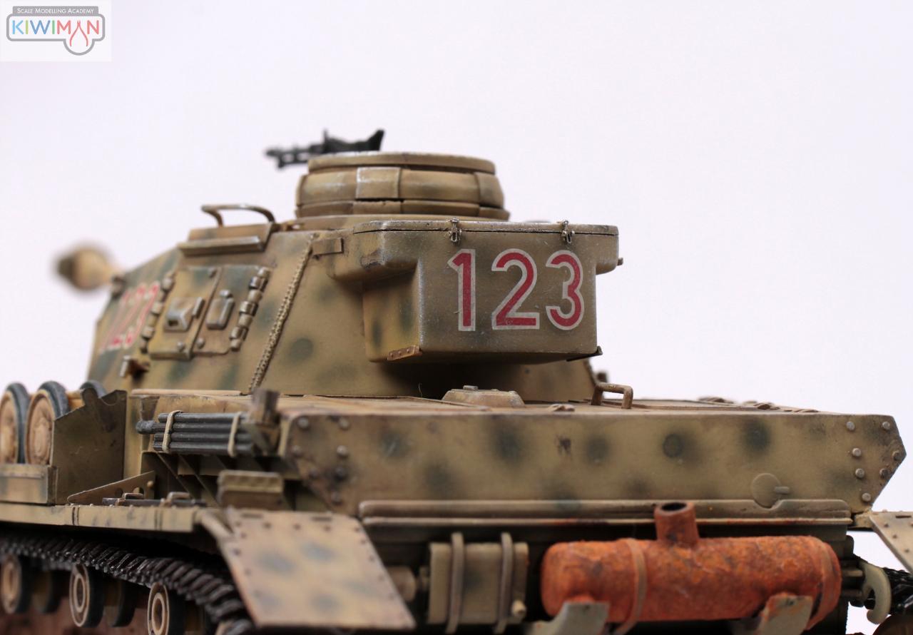 키트 그대로 만들어 주었고 포탑 뒤쪽 공구함의 자물쇠고리만 에칭 사용했습니다. 위장 무늬도 설명서 참조하여 적용했습니다.