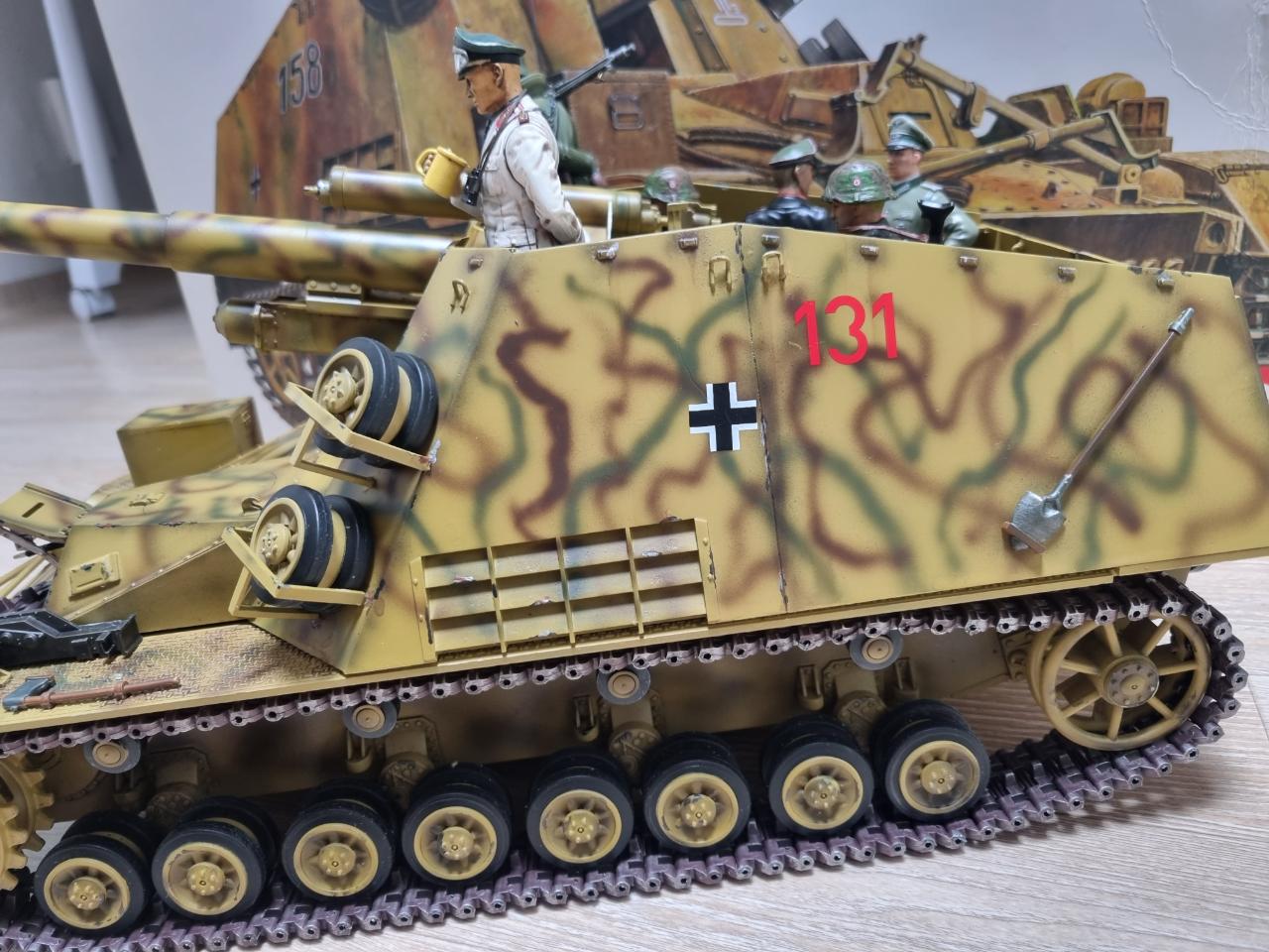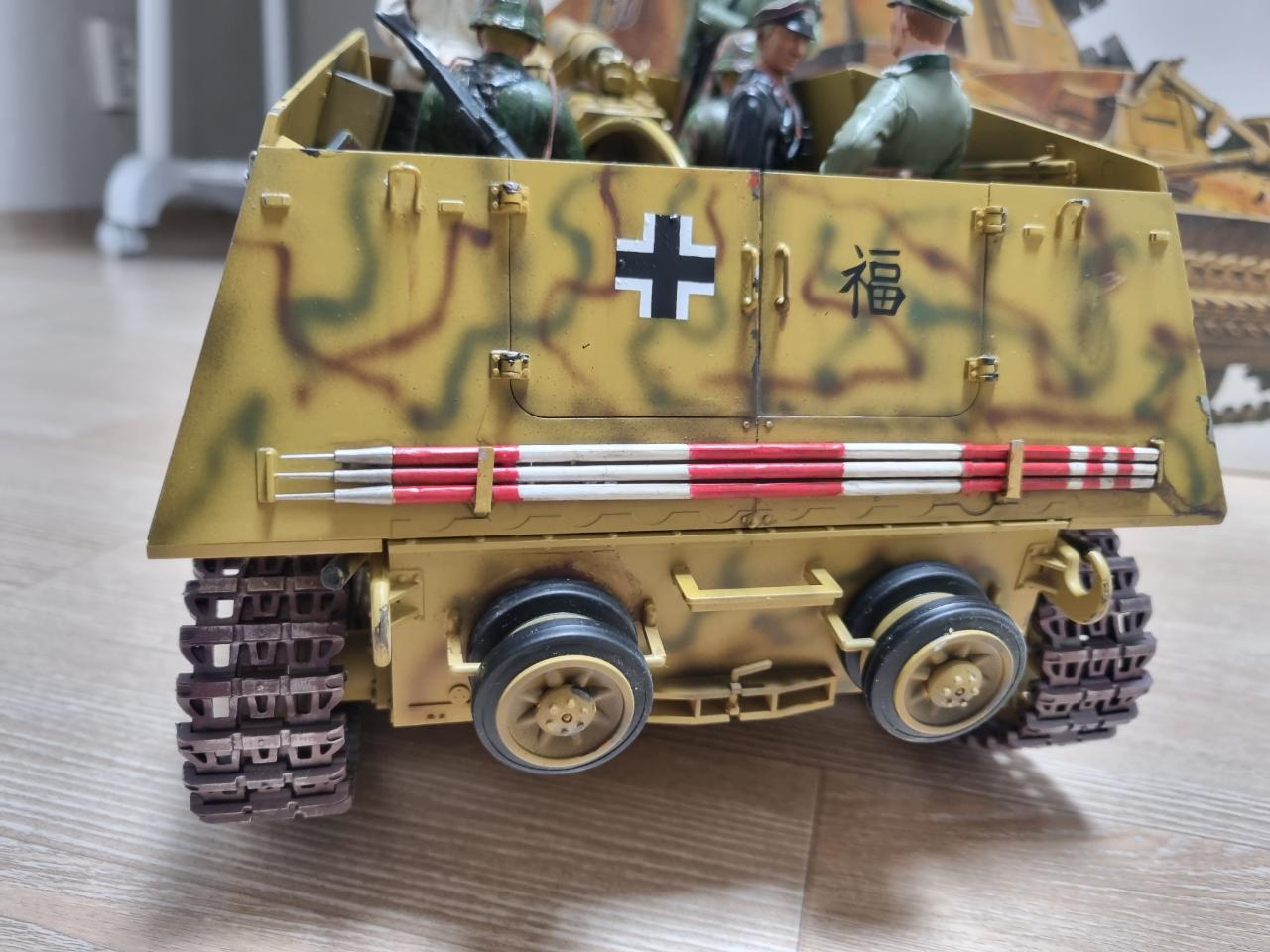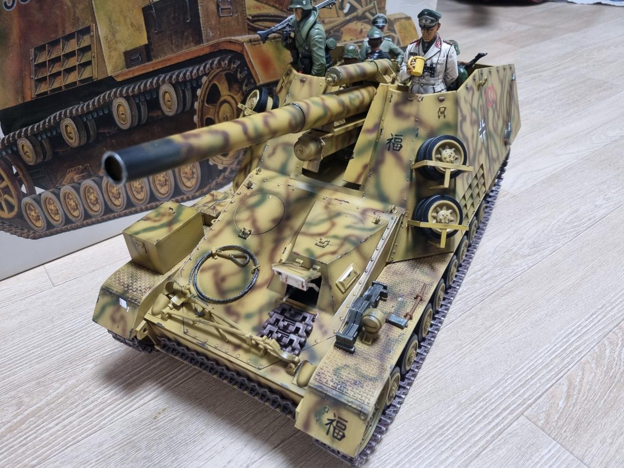 추억의 반다이 훔멜을 제작해 봤습니다. 요즘의 타미야보단 못하지만 유일한 대물스케일 RC탱크라 정겹습니다. 도색은 대전말 히틀러 유겐트 사단도장으로 하였고 가지고 있던 타미야 1/16 피규어를 모두 태워 분위기를 업그레이드 시켜 보았습니다. 롬멜 장군님이 전장을 순시하고 있다고 보시면 됩니다.