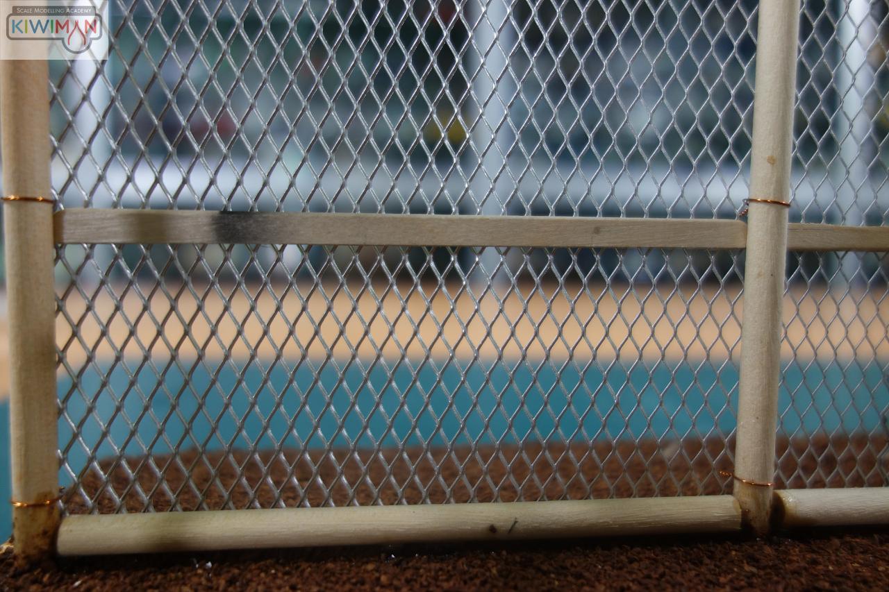 바깥쪽 철망은 화방에서 파는 철망을 사용하였고 앞쪽의 그물 같은 네트는 다이소에서 파는 제품의 망을 이용했습니다. 기둥은 아이스크림 막대를 이용했습니다.