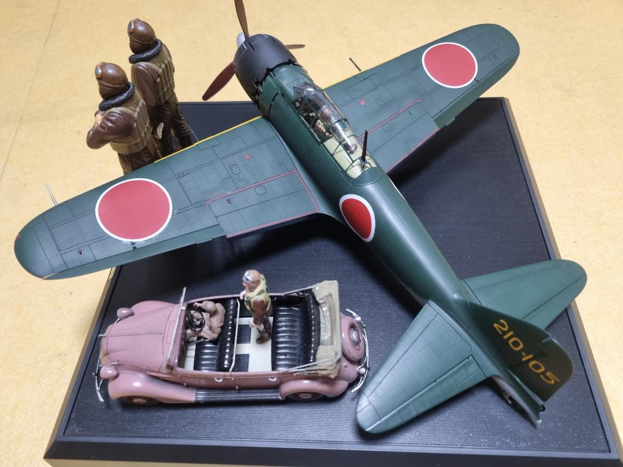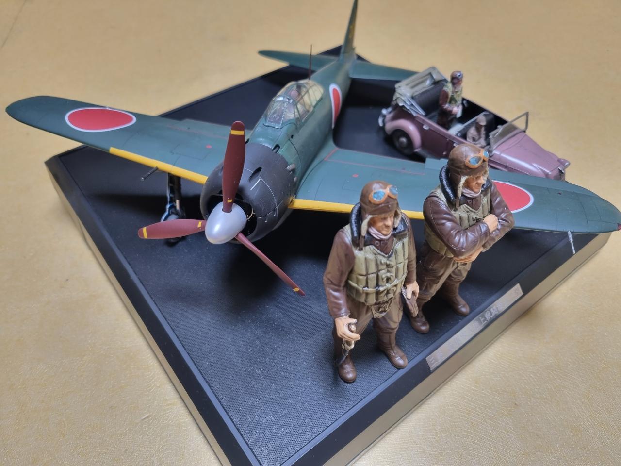 '진주만 공격준비'란 제목으로 타미야 제품들로만 비넷을 완성해 보았습니다. 정면의 인형은 타미야 1/16 사무라이 파일럿이고 그 뒤 비행기는 1/32 타미야 제로센 사운드버젼, 관용차는 1/35 타미야 도요타 차량입니다. 여어가지 악세사리를 추가하니 1/32 비행기만 있는 것보단 나아 보입니다.