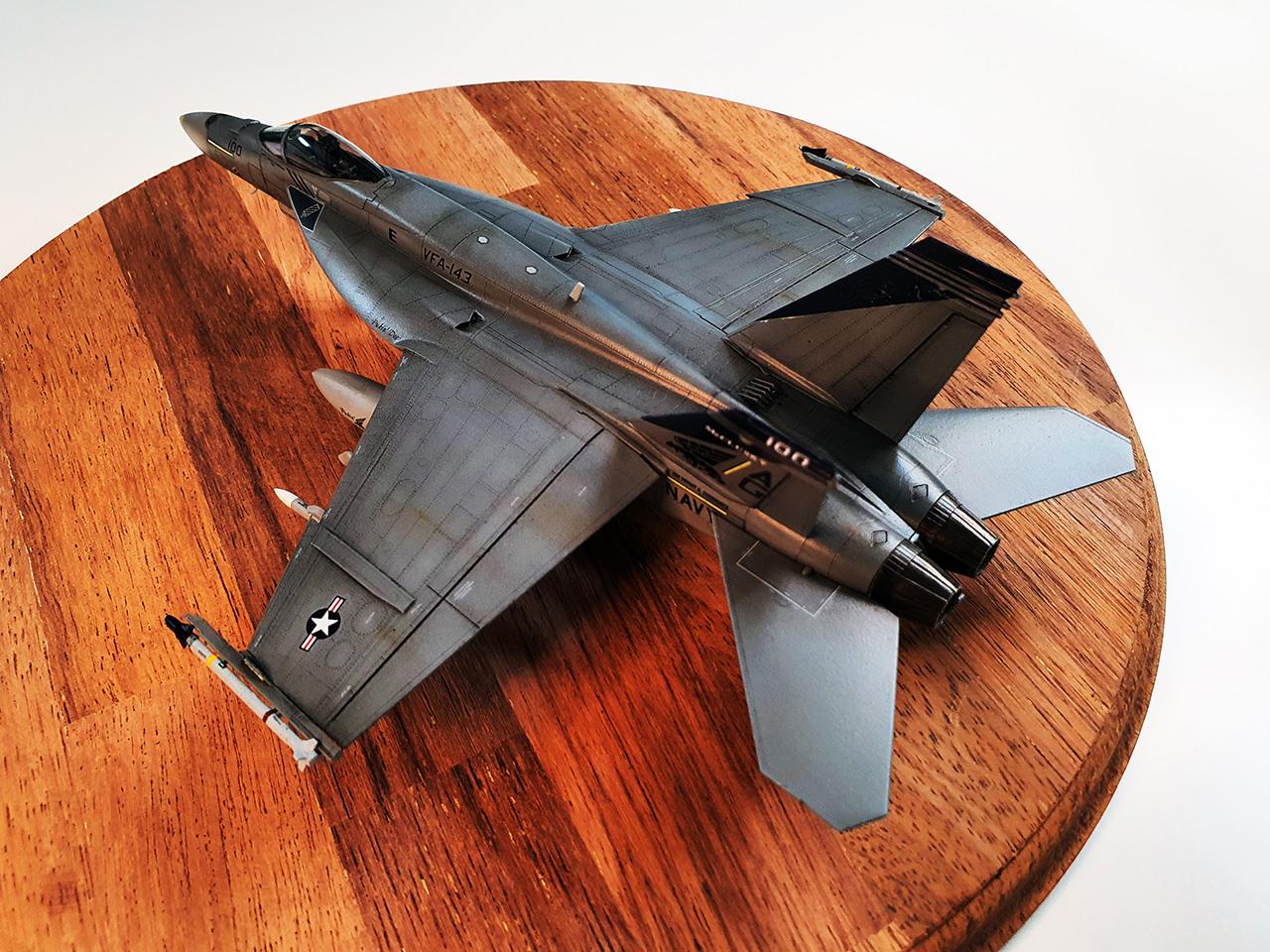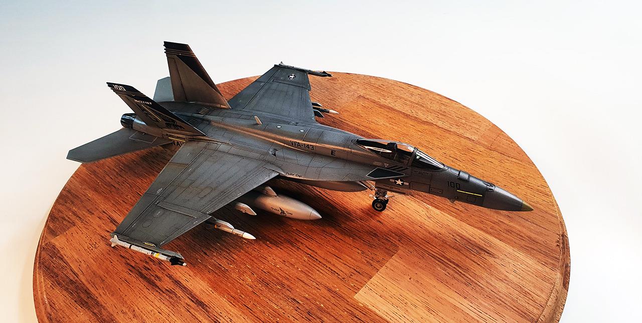 제작에 사용한 키트는 아카데미사의 1:72스케일 키트로, VFA-143의 마킹을 재현하고 있습니다. 아카데미社 사장님이 퓨킨독스를 좋아하는건지(^^;) 톰캣 시절부터 신금형 톰캣, F/A-18E 까지 거의 퓨킨독스의 역사를 재현해주고 있어서 VFA-143 분들이 보시면 명예 대대원 패라도 드려야하는건 아닌지 싶습니다.