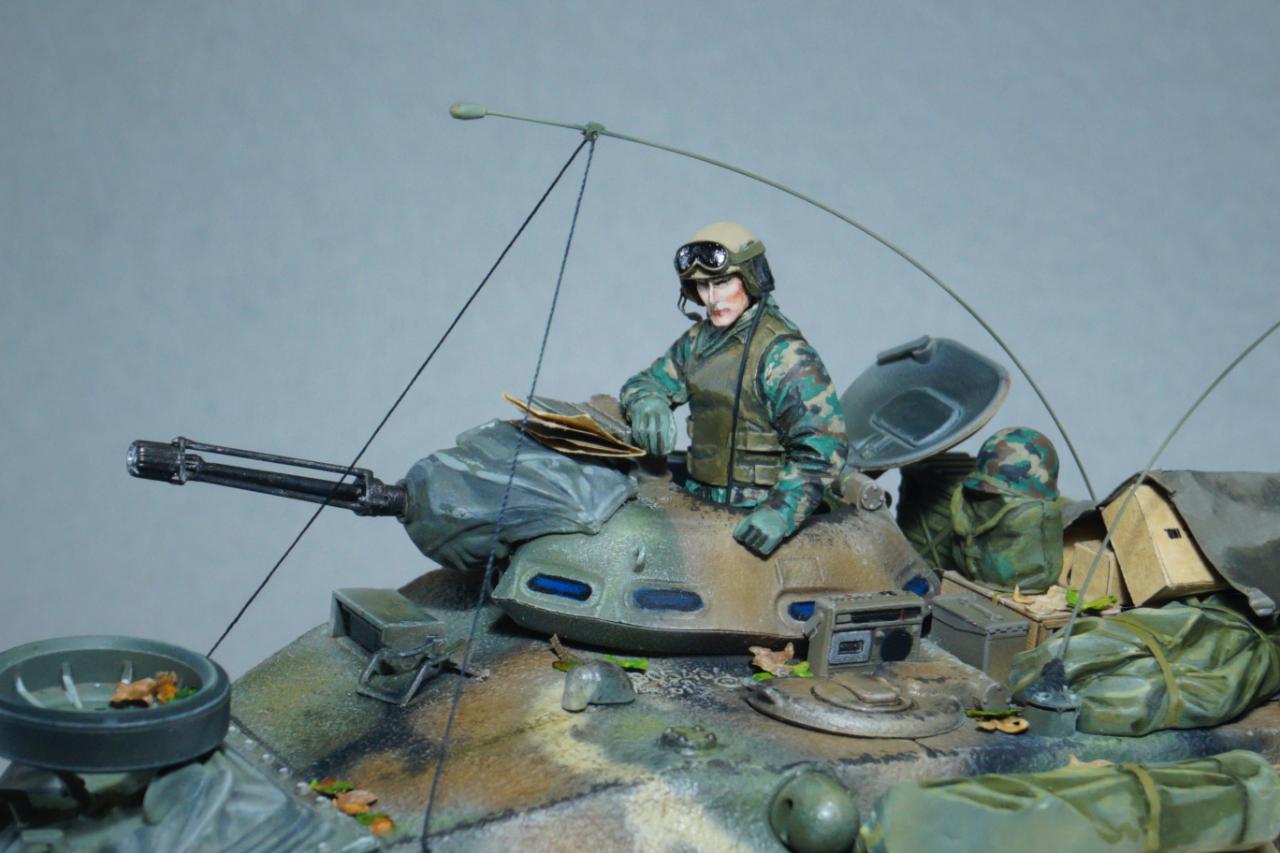 이번 작업은 지면이 추가되는 바람에 살짝 시간이 걸렸고요, 전체적인 도색 패턴은 MERDC 4색 패턴으로 진행했습니다. 또한 여러 장비품들이 올려졌고 승무원 2명도 추가 작업이 됐습니다. 궤도는 갈등을 많이 했는데 그냥 키트에 포함되어 있는 제품으로 진행했습니다. 물론 볼륨이 괜찮아 선택을 했습니다.
