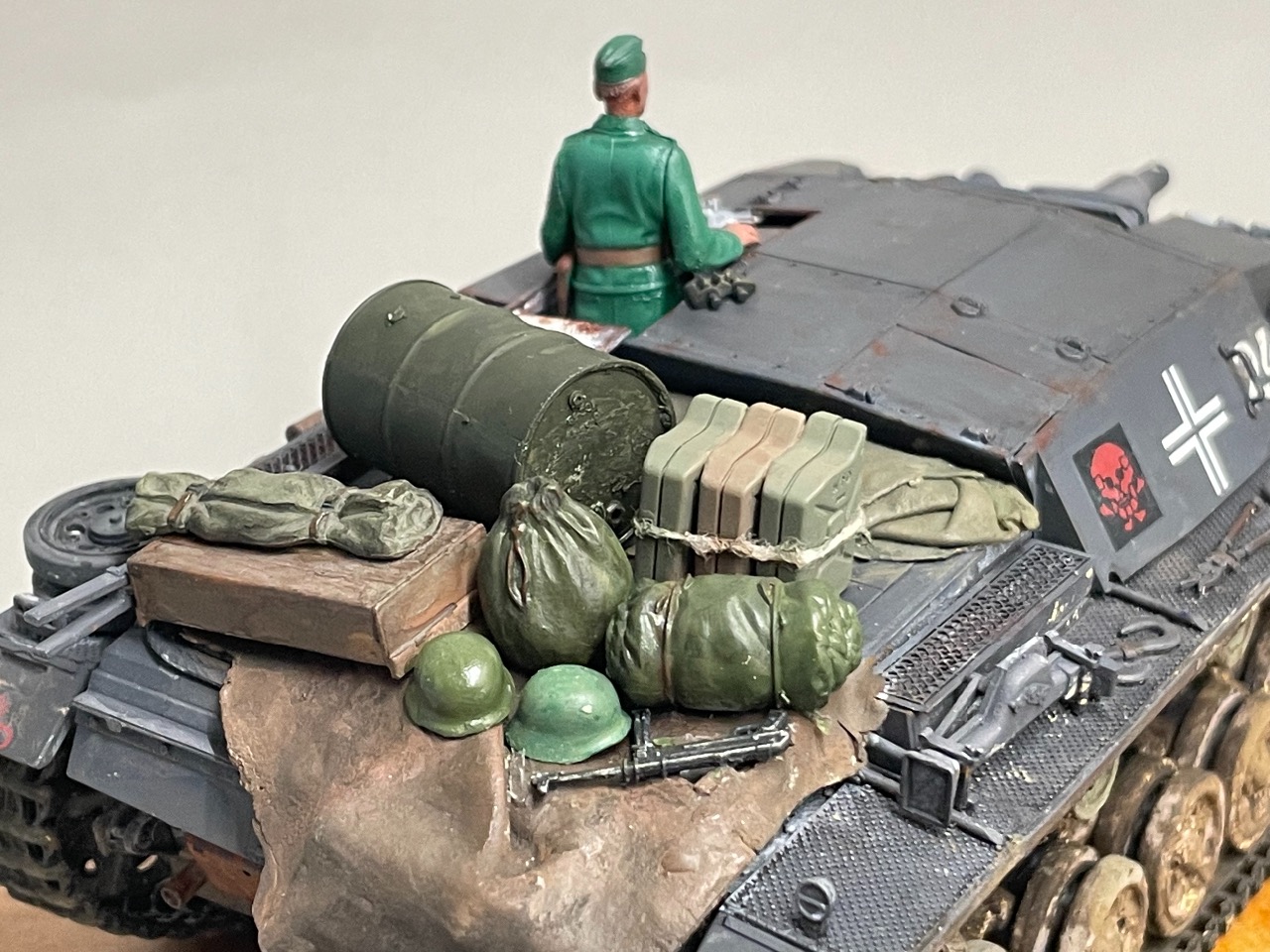 차체 뒷편에 드럼통,연료통,방수포 등등 물건들 몇개 놓아주었습니다.