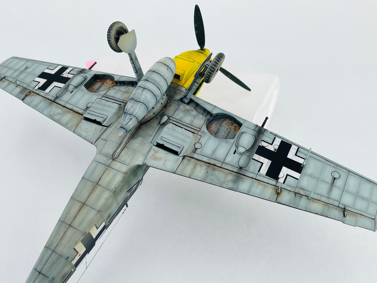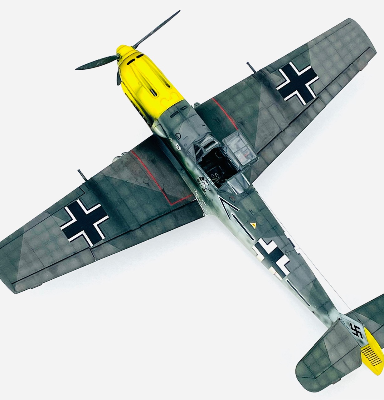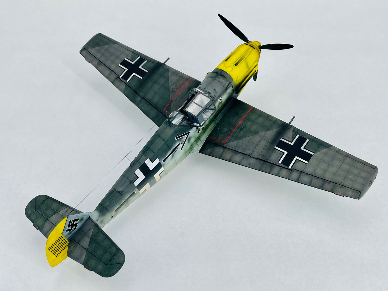 트럼펫제 Bf109E-4 입니다. 아크릴 도색이구요, 품질은 늘 그렇듯이 런너는 그럴싸한데, 조립해 보면 갸우뚱… 입니다. 그렇지만 가성이 좋고, 에칭도 있어서 전체적으론 나름 준수한 킷 이라고 생각됩니다.