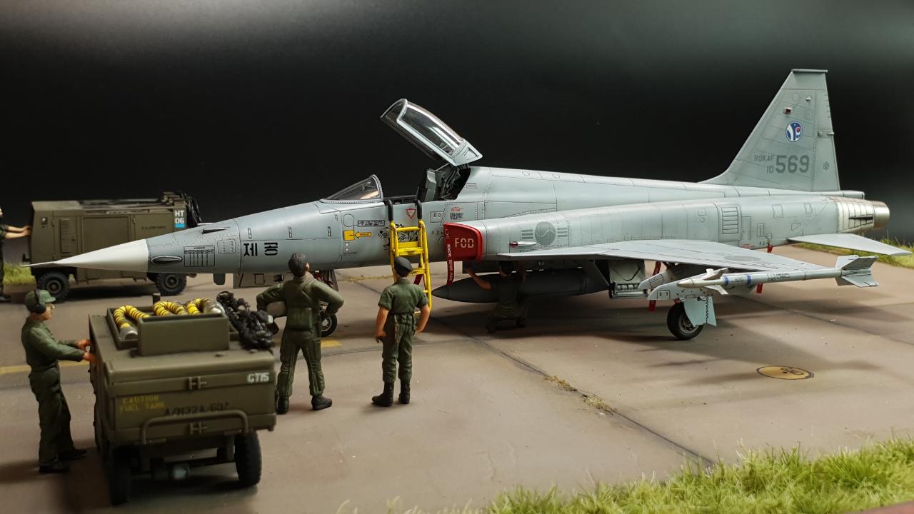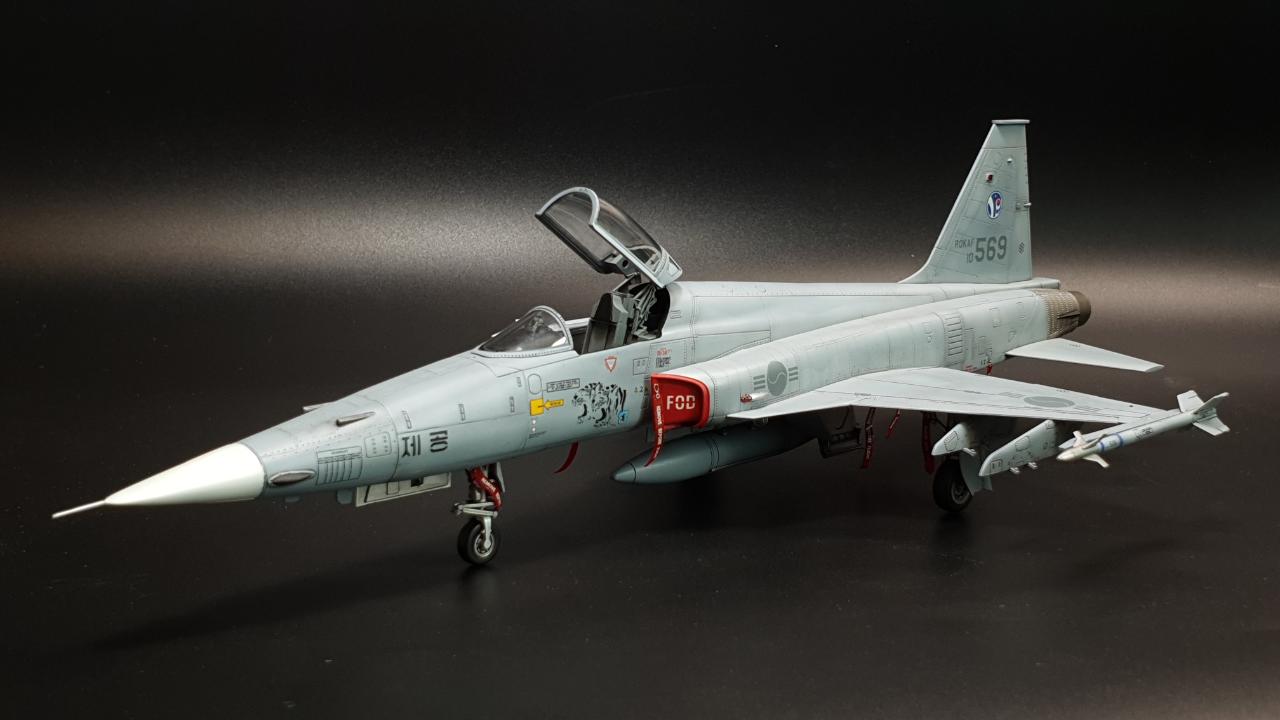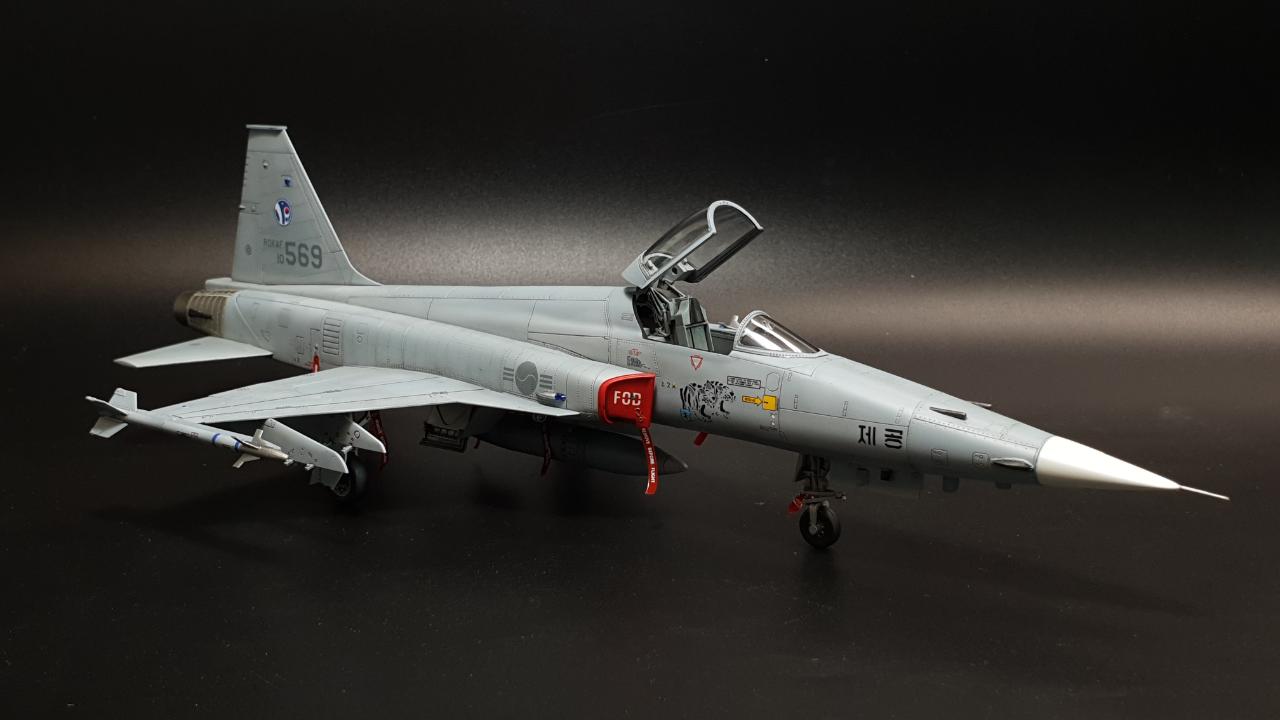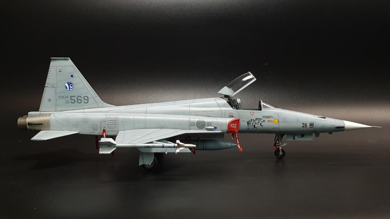 안녕하세요. 아카데미 KF-5E 입니다. 키트 외 DEF의 FOD 커버를 적용했습니다. 키트는 더할나위없이 좋구요, 도색은 실물이 위장무늬의 구분이 거의 없어 단색도장처럼 보이는 것을 참고해 약간의 조색을 해주었습니다.