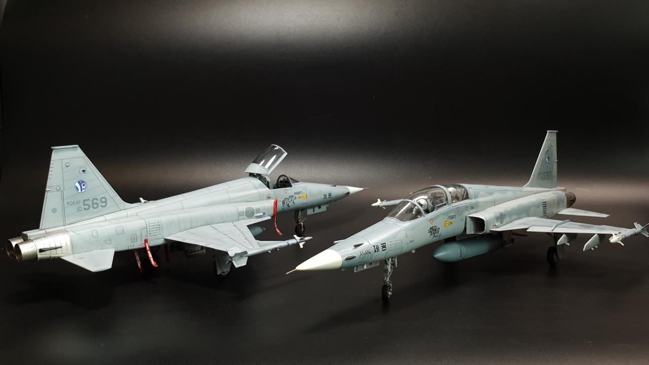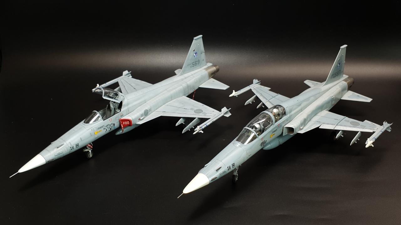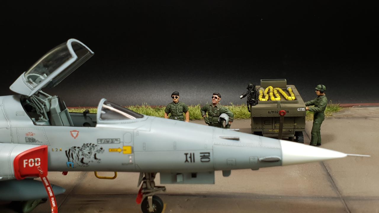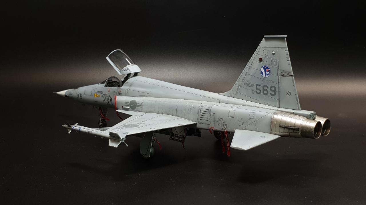 안녕하세요. 아카데미 KF-5E 입니다. 키트 외 DEF의 FOD 커버를 적용했습니다. 키트는 더할나위없이 좋구요, 도색은 실물이 위장무늬의 구분이 거의 없어 단색도장처럼 보이는 것을 참고해 약간의 조색을 해주었습니다.