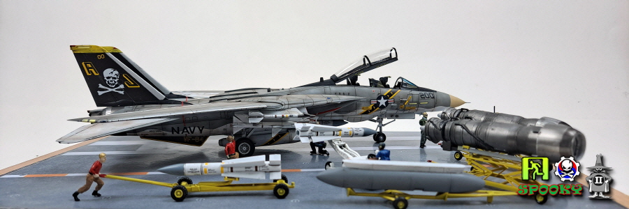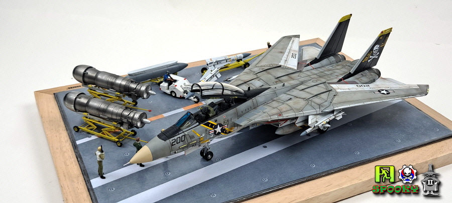 방금 전 완성한 F-14A VF-84 JOLLY ROGERS에 소품들을 이용해 간단하게 더 꾸며보았습니다.