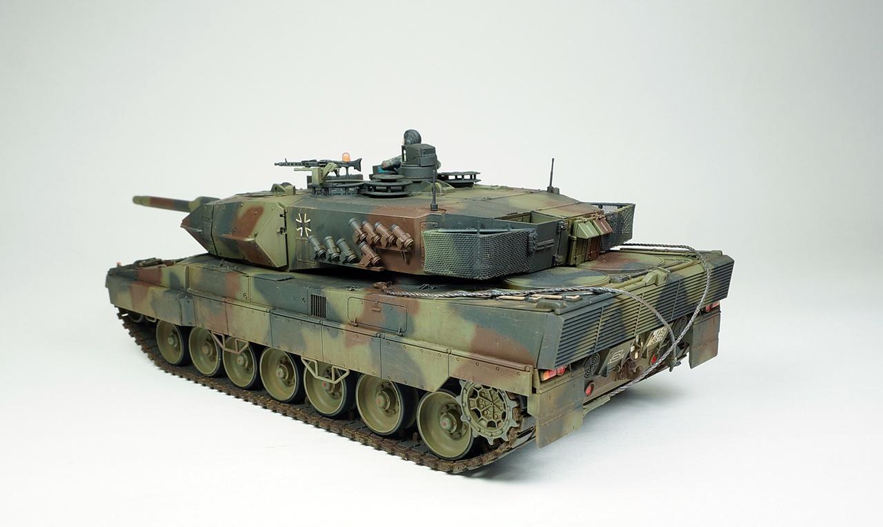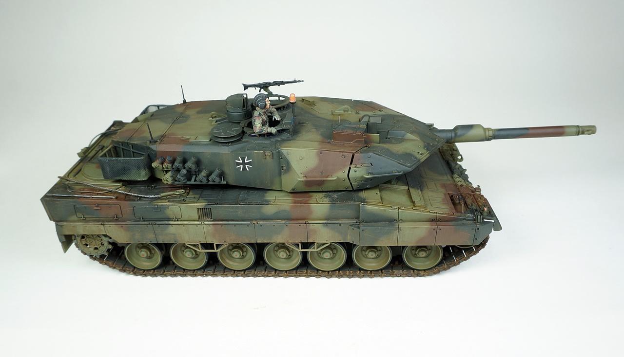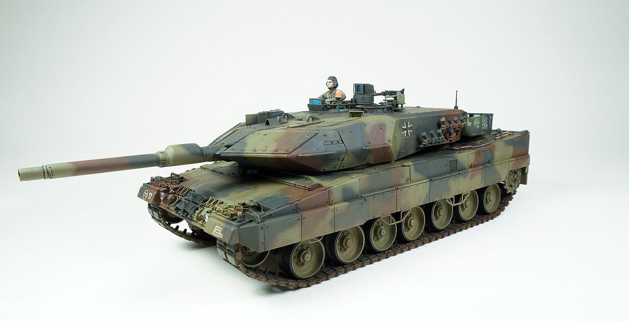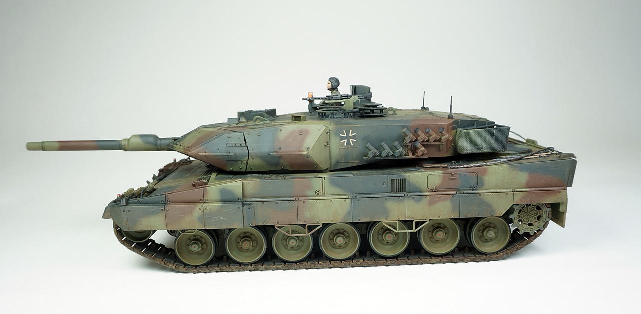 타미야의 레오파드2A5입니다. 사용한 키트는 사실 A6형인데 포탑조립을 다 하고 나서야 A5형 포신으로 잘못 끼운걸 알고 바꿔보려했으나 이미 단단하게 접착제가 굳은후라 그냥 포신을 놔두고 A5형으로 만들었습니다. 외관상 달라진건 포신밖에 없다고 알고 있는데...정확치는 않습니다. 타미야키트 답게 뚝딱뚝딱 금방 조립했고 키트그대로 만들었습니다. 다만 오래전부터 넣어주던 토잉케이블용 나일론실과 재단과 접착이 번거로운 바스켓용 나일론메쉬는 가격대비 아쉬움이 있습니다.