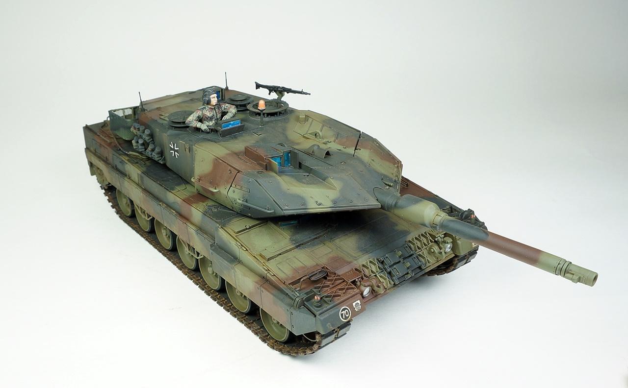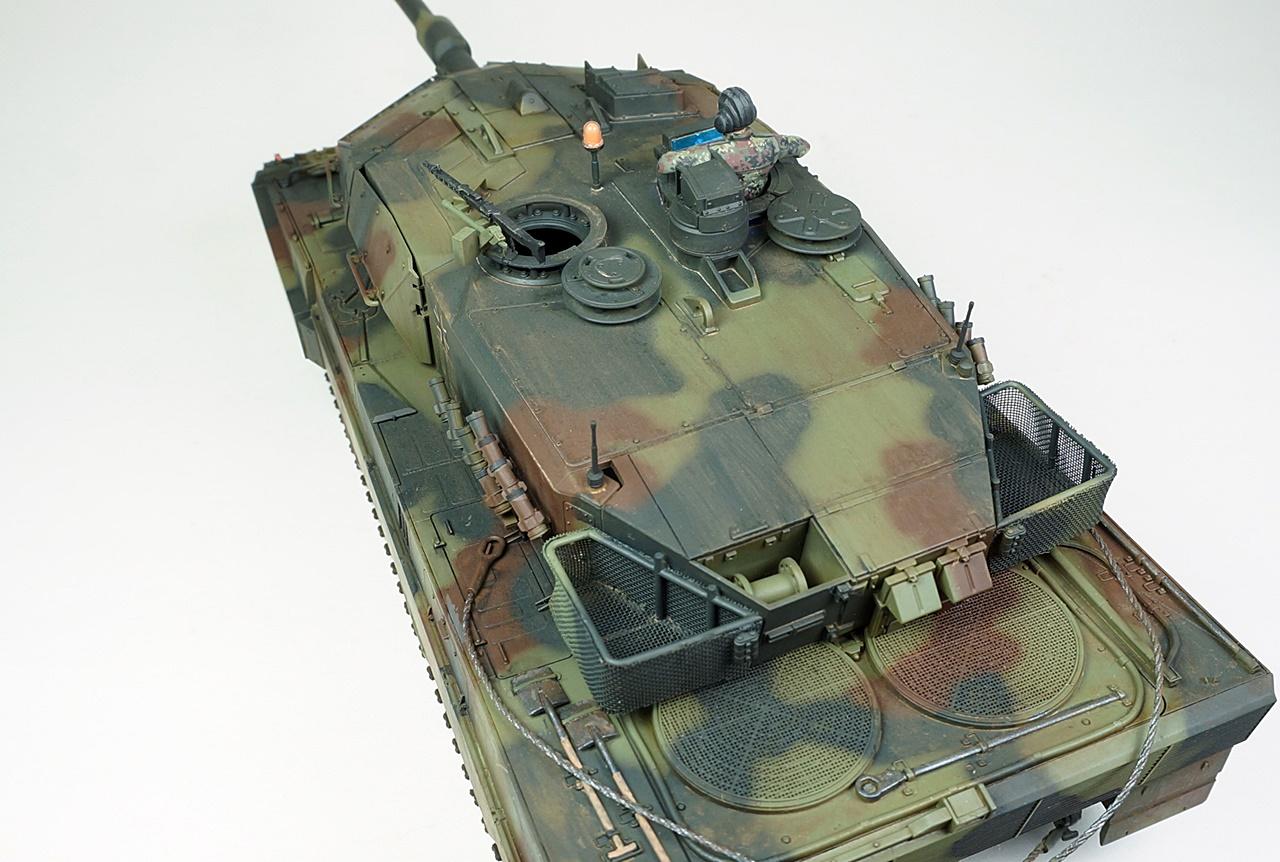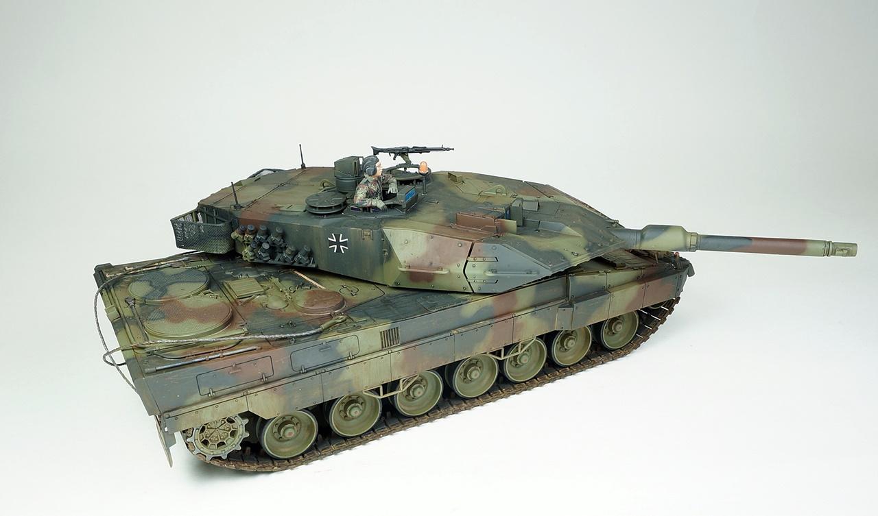 타미야의 레오파드2A5입니다. 사용한 키트는 사실 A6형인데 포탑조립을 다 하고 나서야 A5형 포신으로 잘못 끼운걸 알고 바꿔보려했으나 이미 단단하게 접착제가 굳은후라 그냥 포신을 놔두고 A5형으로 만들었습니다. 외관상 달라진건 포신밖에 없다고 알고 있는데...정확치는 않습니다. 타미야키트 답게 뚝딱뚝딱 금방 조립했고 키트그대로 만들었습니다. 다만 오래전부터 넣어주던 토잉케이블용 나일론실과 재단과 접착이 번거로운 바스켓용 나일론메쉬는 가격대비 아쉬움이 있습니다.