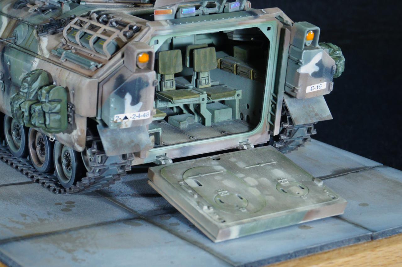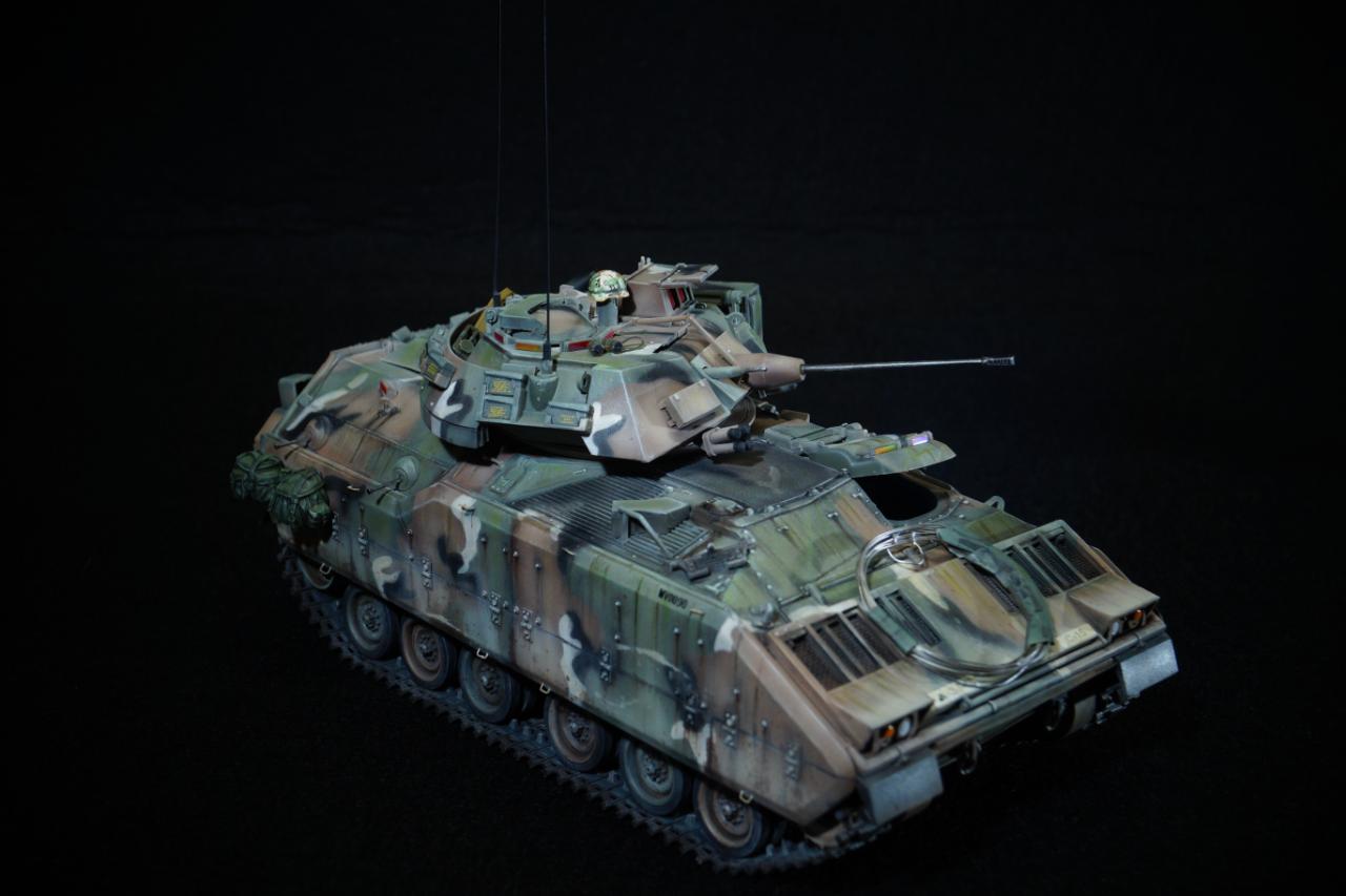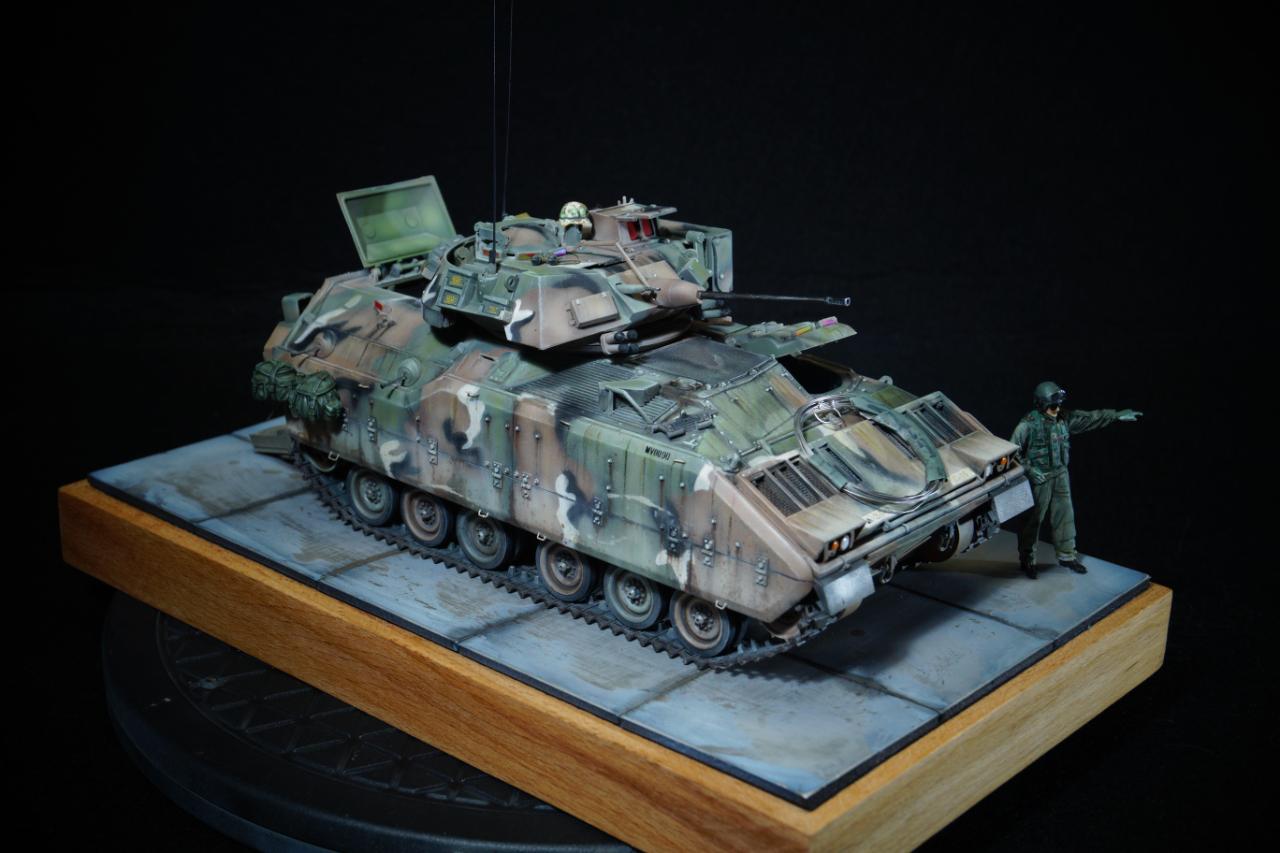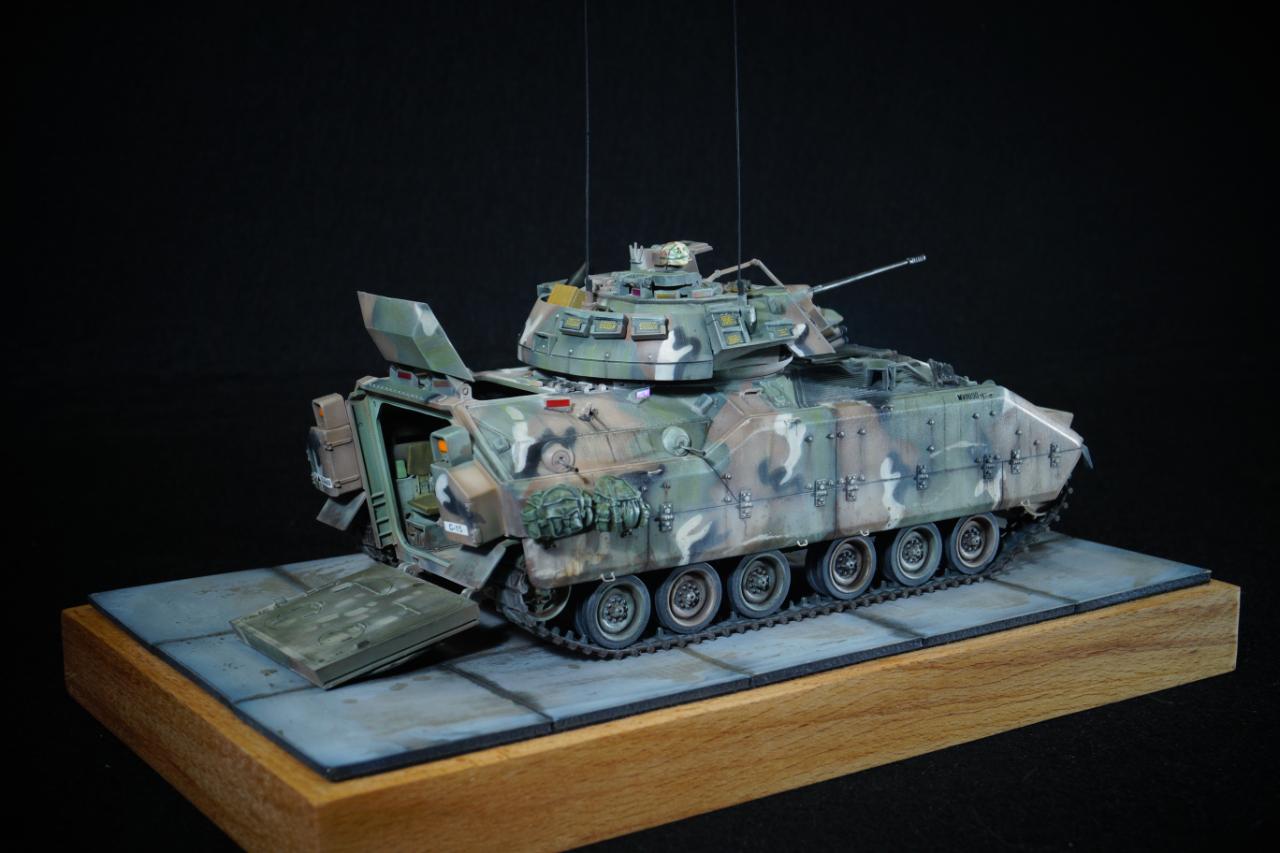 M60A3 패튼에 이어 M2 브래들리 장갑차입니다. 도색은 전 작업과 동일한 MERDC 패턴으로 작업했고요, 미세하게 패턴을 변경하여 차이점을 뒀습니다. 베이스도 다이소에서 소품을 구입, 적당히 추가해 줬습니다.