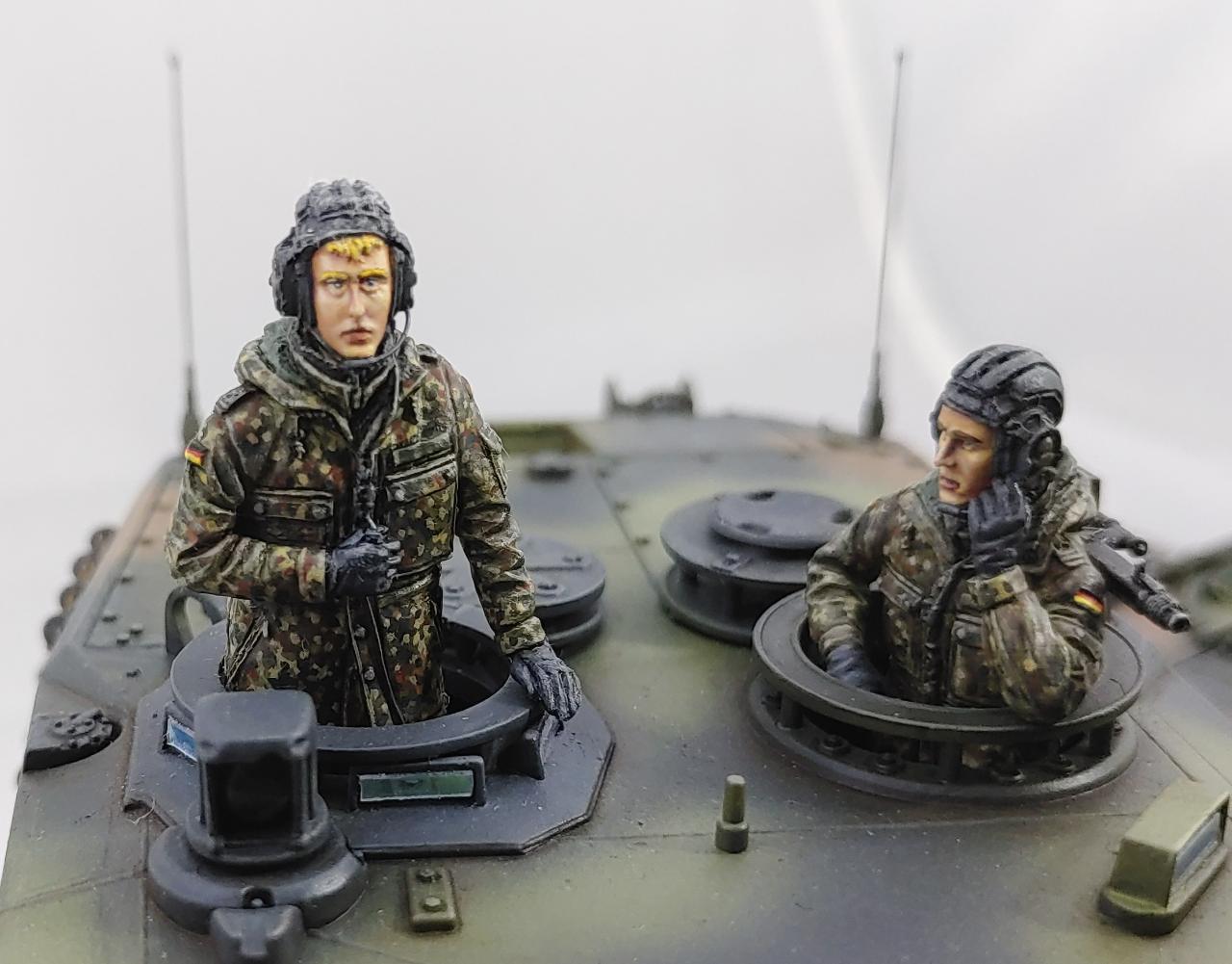 전차병은 Valkyrie Miniature제 현대 독일연방군 전차병(2000년대) 세트를 적용하여 주었습니다. 독일연방군의 특유의 플렉탄 위장복도 Vallejo Model Color를 조색하여 열심히 칠해주었습니다.