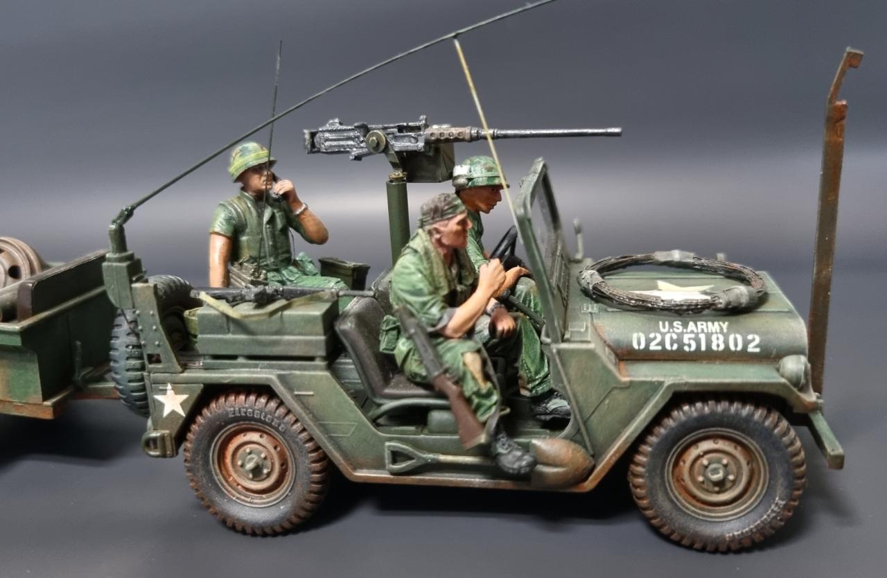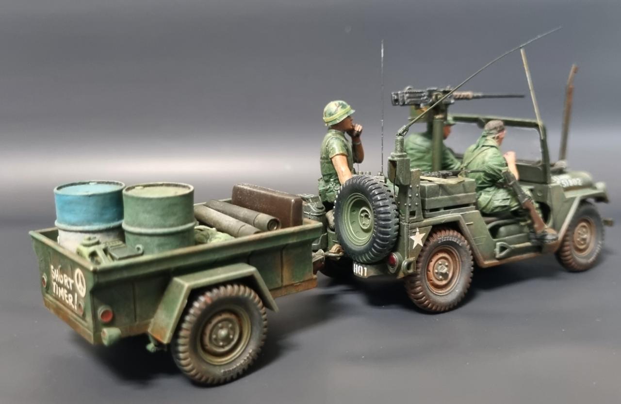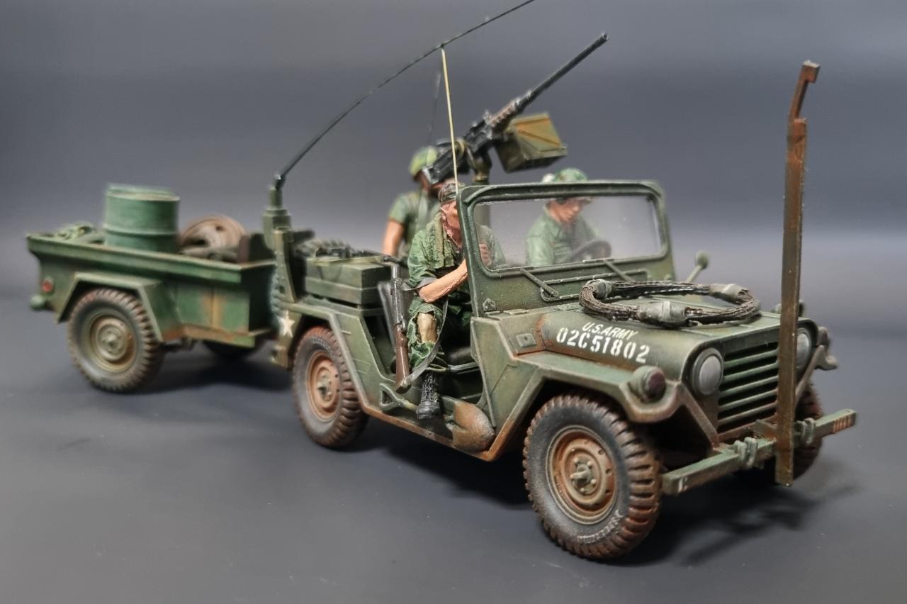 아카데미 80년대 구판 M151A2를 고증 무시하고 월남전 형으로 만들어 보았습니다. 앞쪽의 커터는 남는 부품으로 자작하였습니다.
