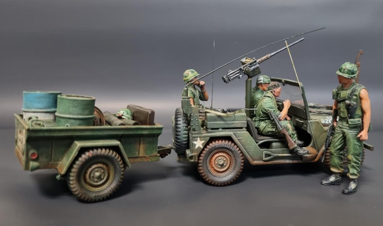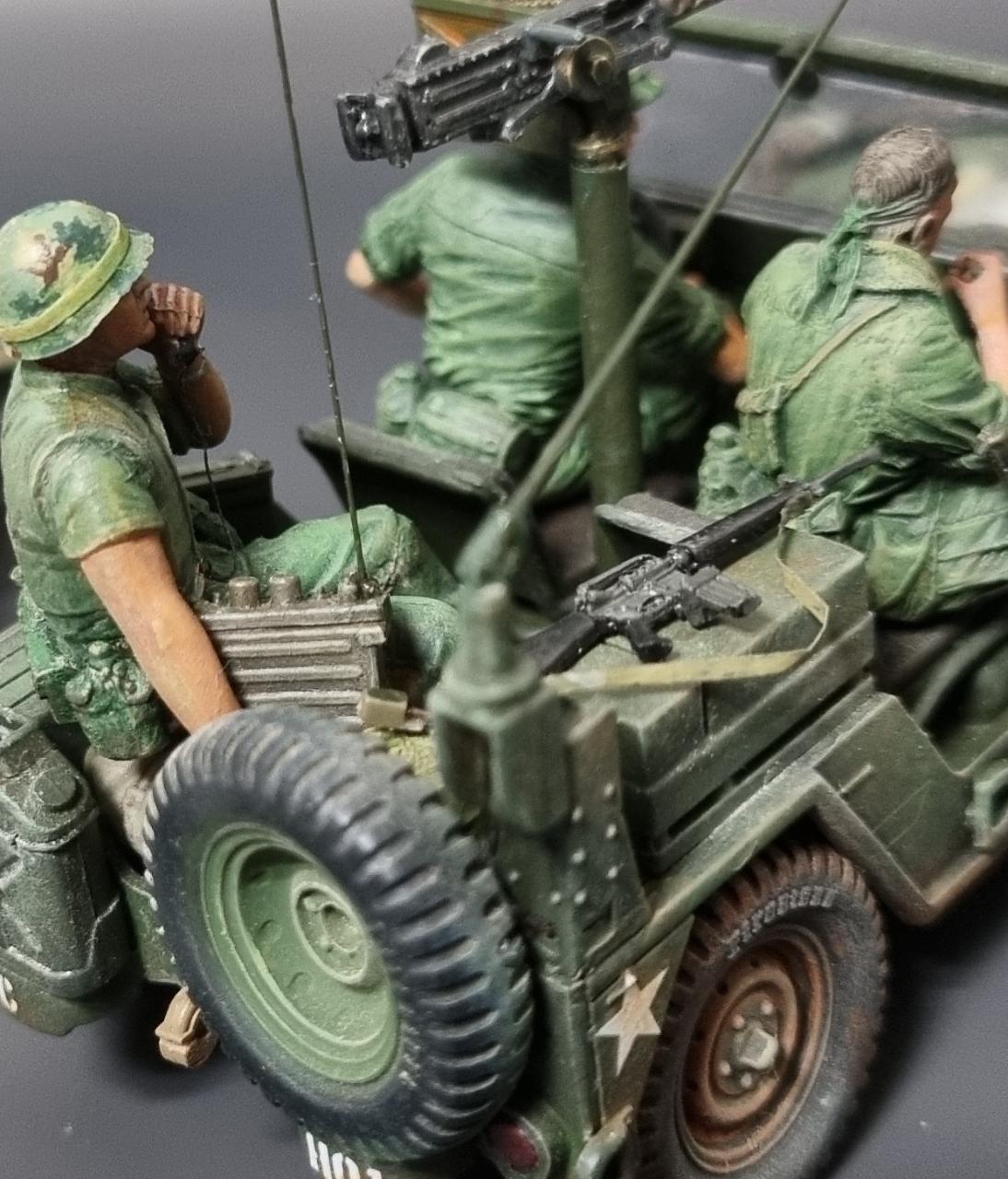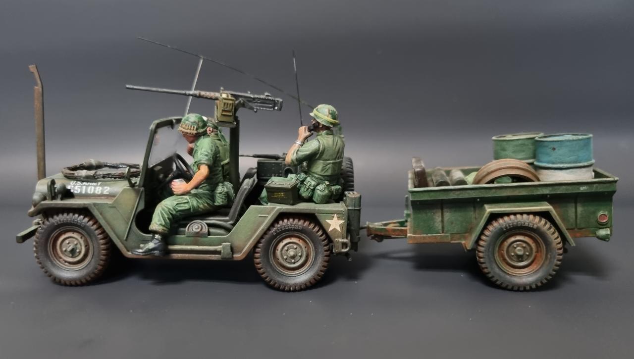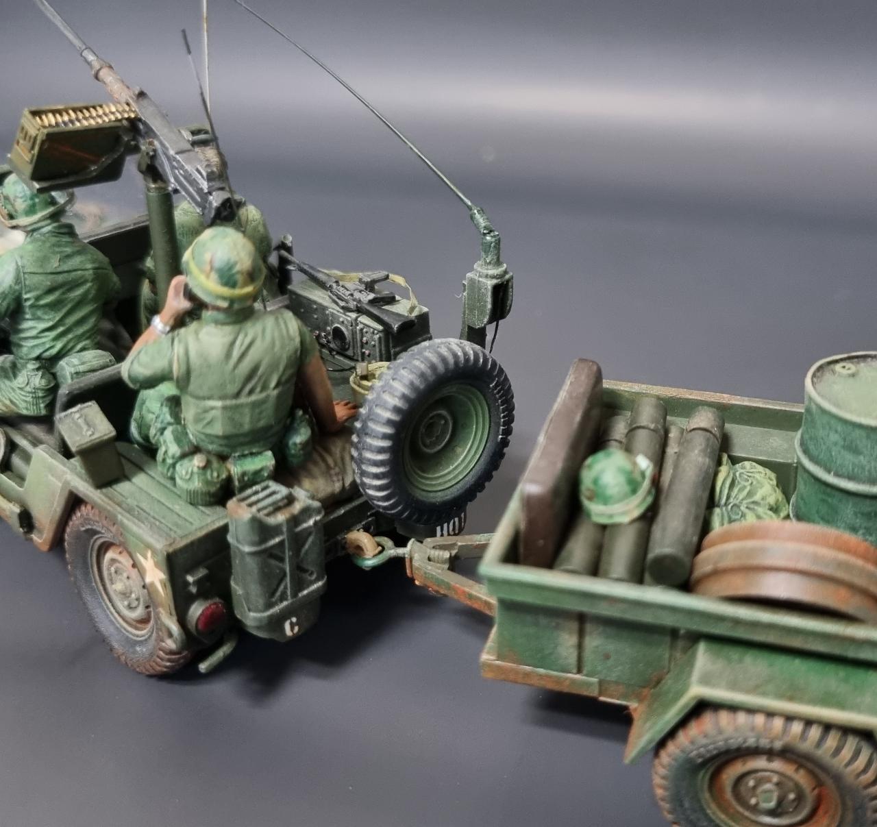아카데미 80년대 구판 M151A2를 고증 무시하고 월남전 형으로 만들어 보았습니다. 앞쪽의 커터는 남는 부품으로 자작하였습니다.