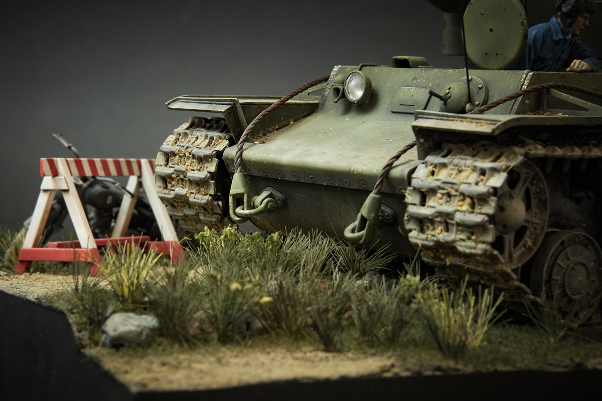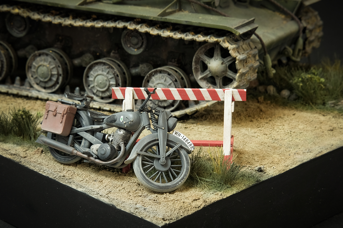 오토바이와 바리케이트는 타미야 독일군 모터싸이클 오더리 세트에서 착출했습니다