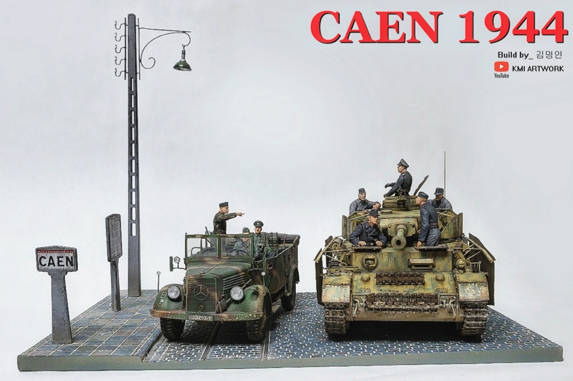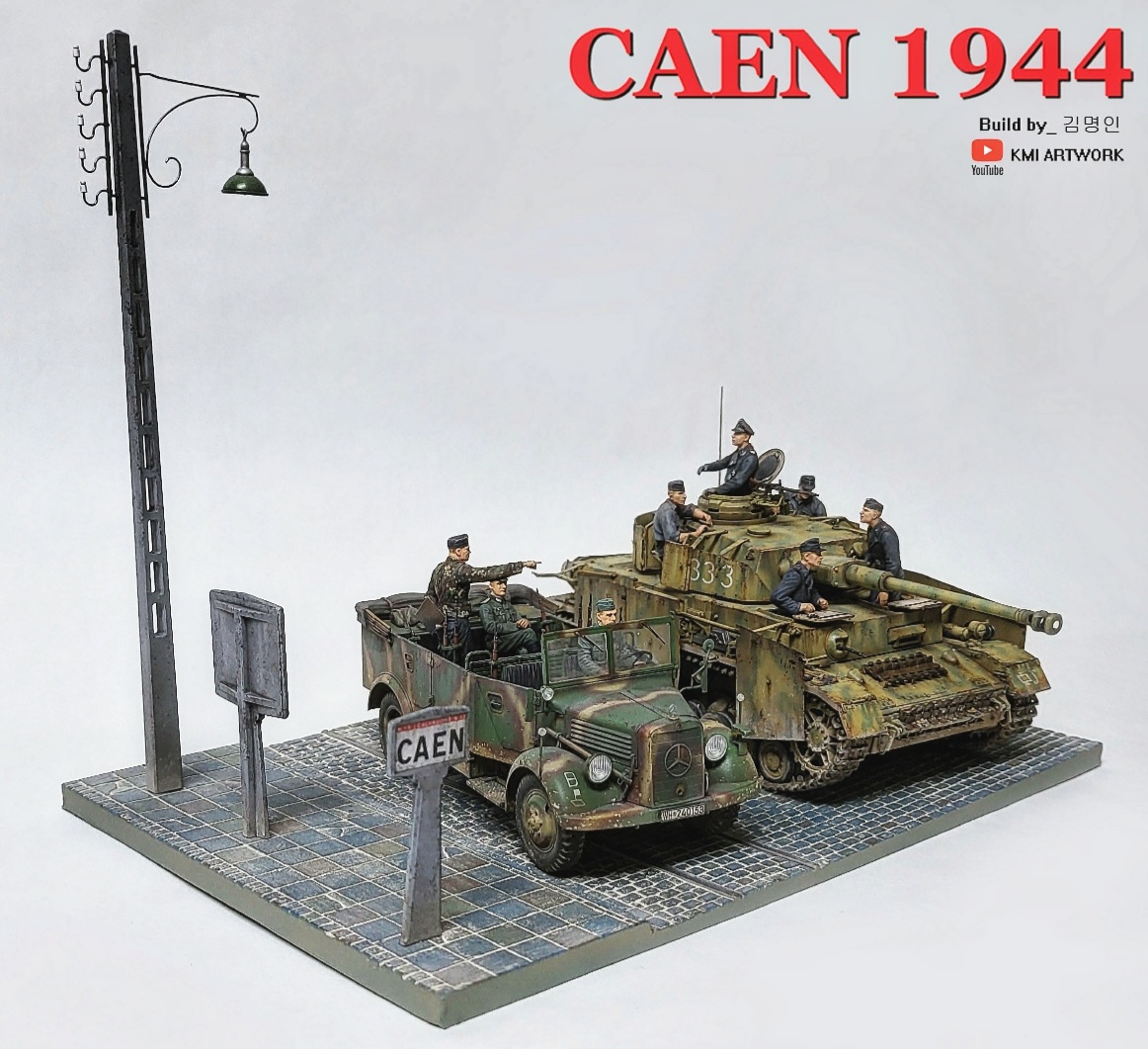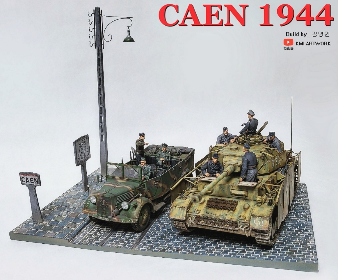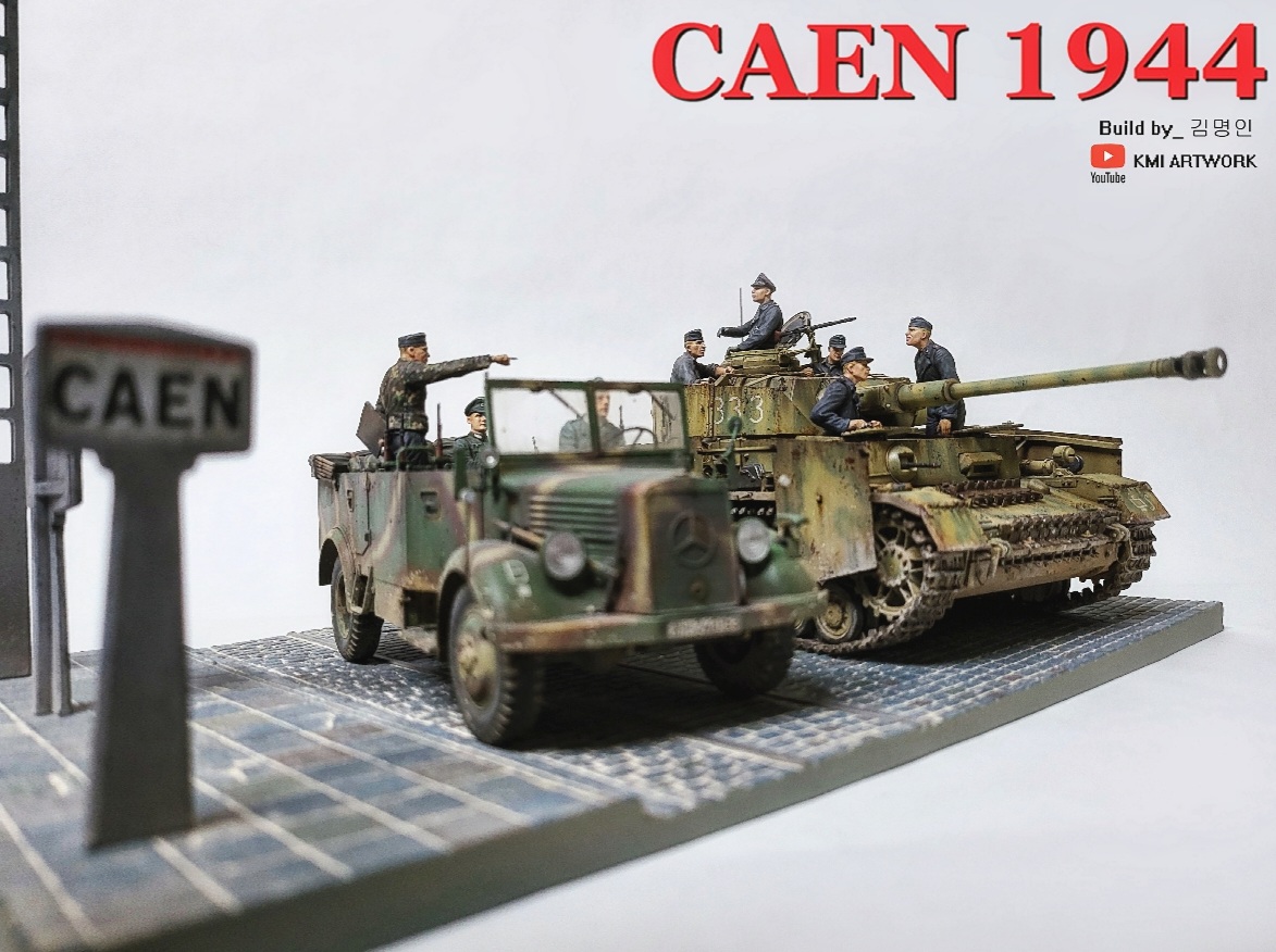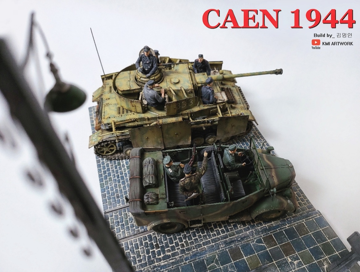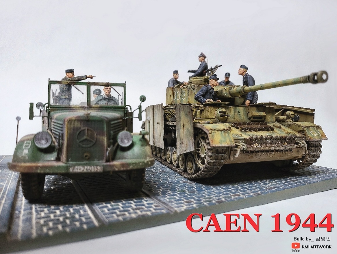 미니아트사의 1/35스케일 caen1944라는 디오라마 빅셋인데 4호전차,kfz차량, 피규어8명,베이스가 포함된 킷입니다.