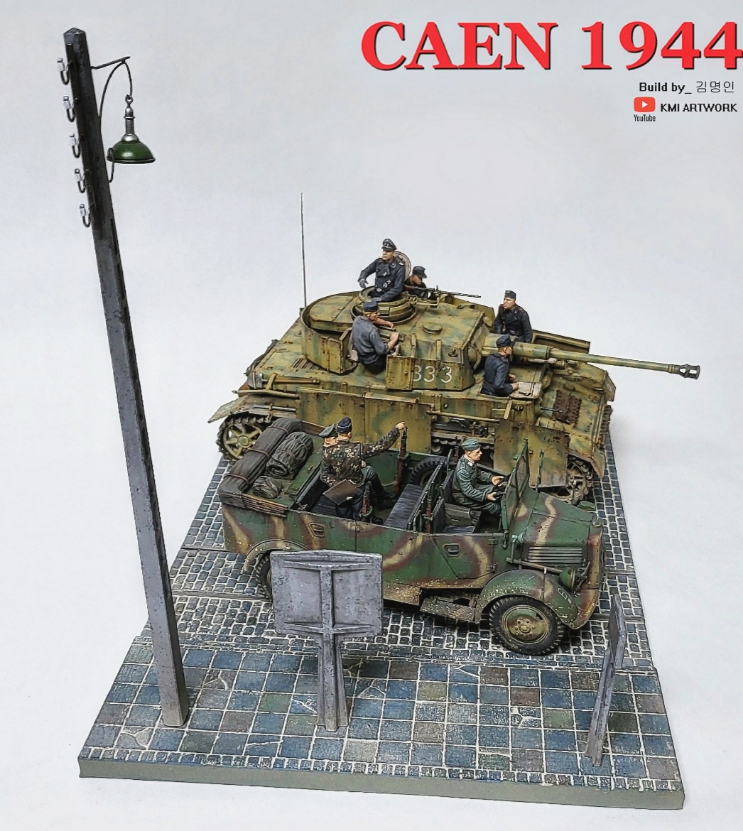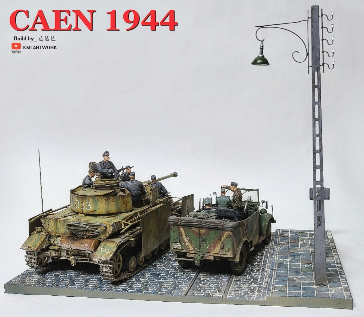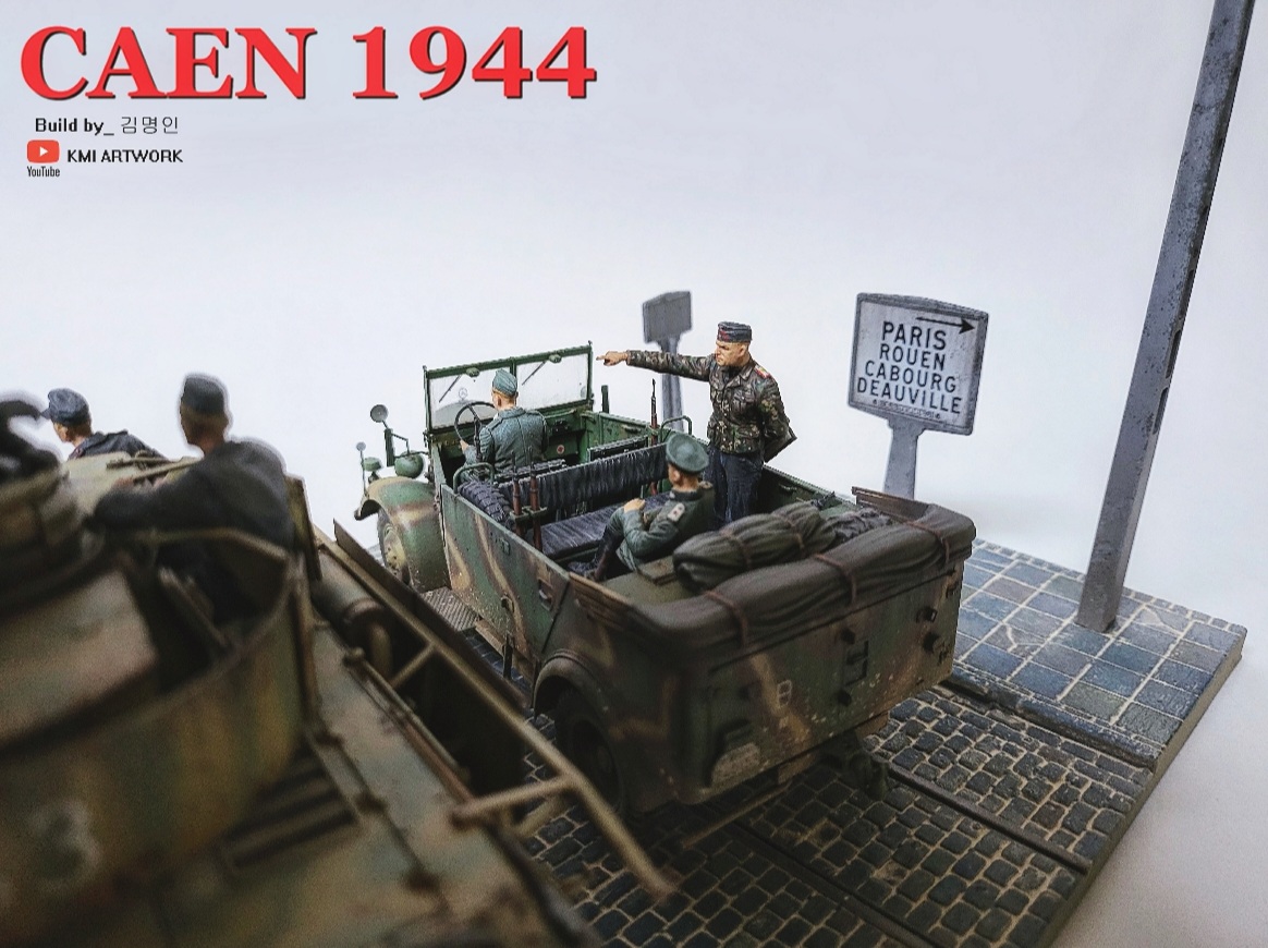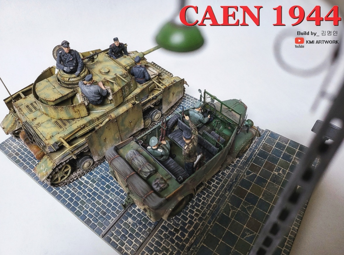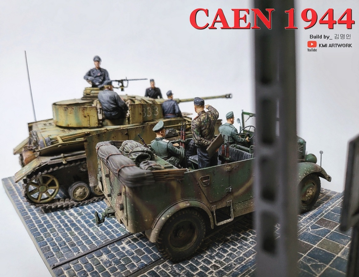 미니아트사의 1/35스케일 caen1944라는 디오라마 빅셋인데 4호전차,kfz차량, 피규어8명,베이스가 포함된 킷입니다.