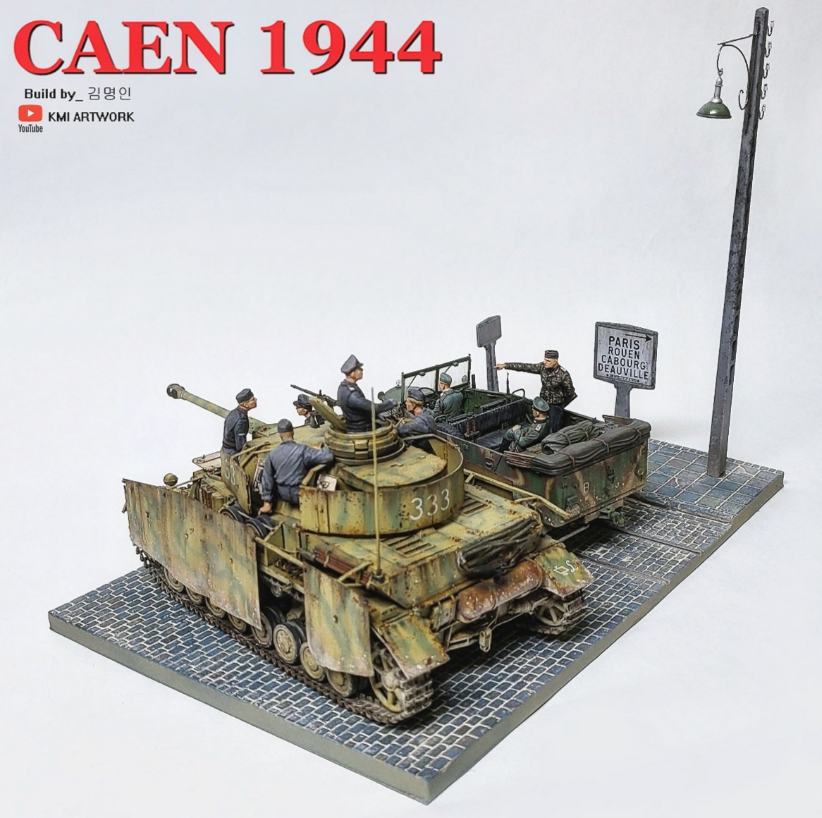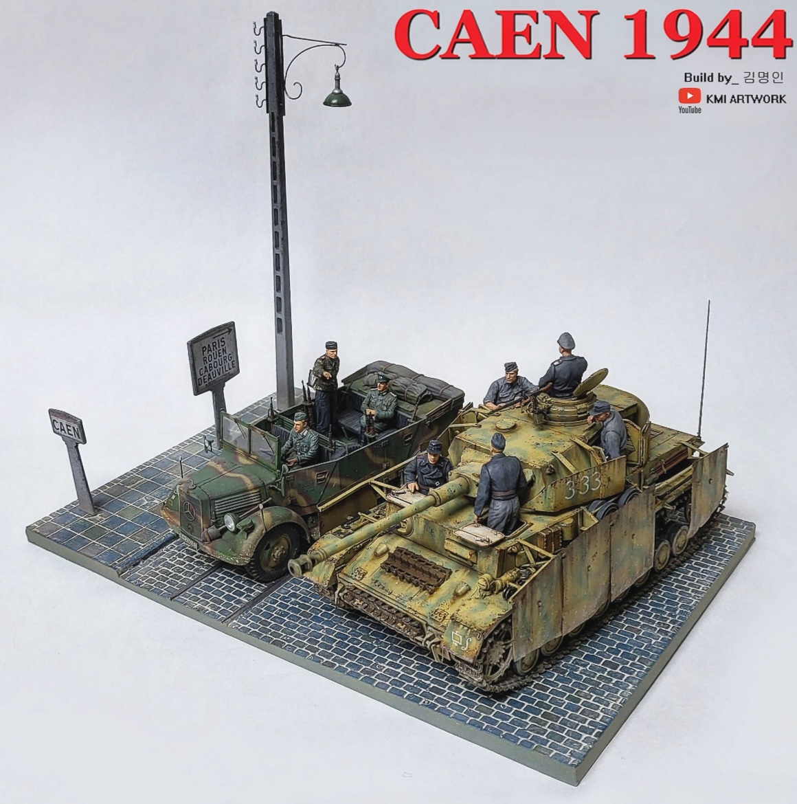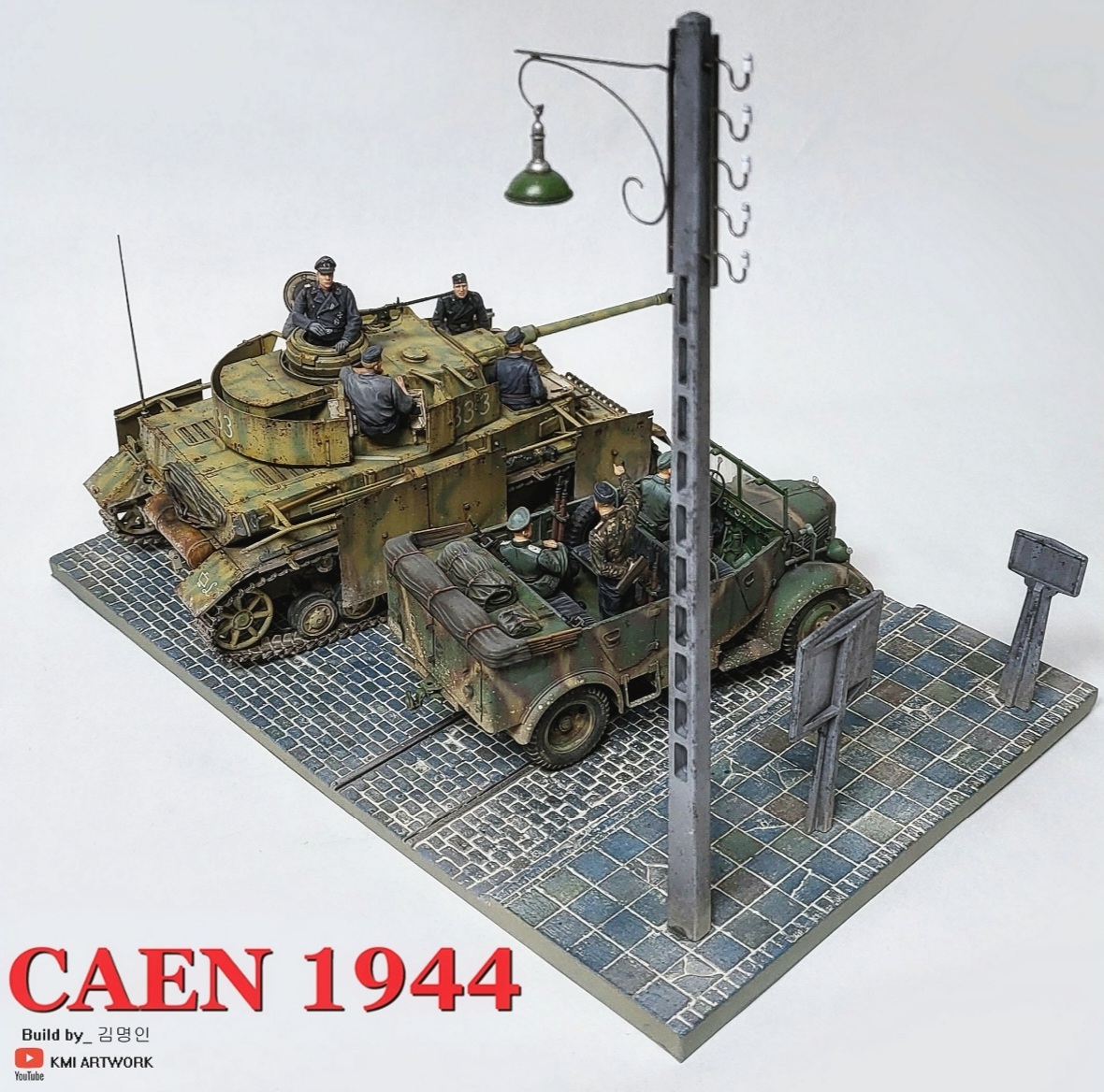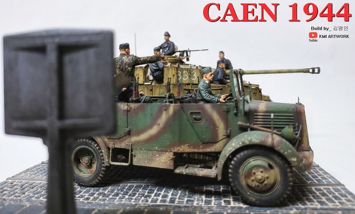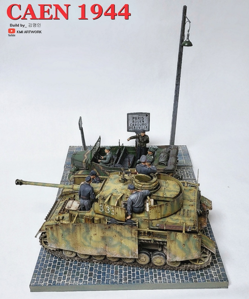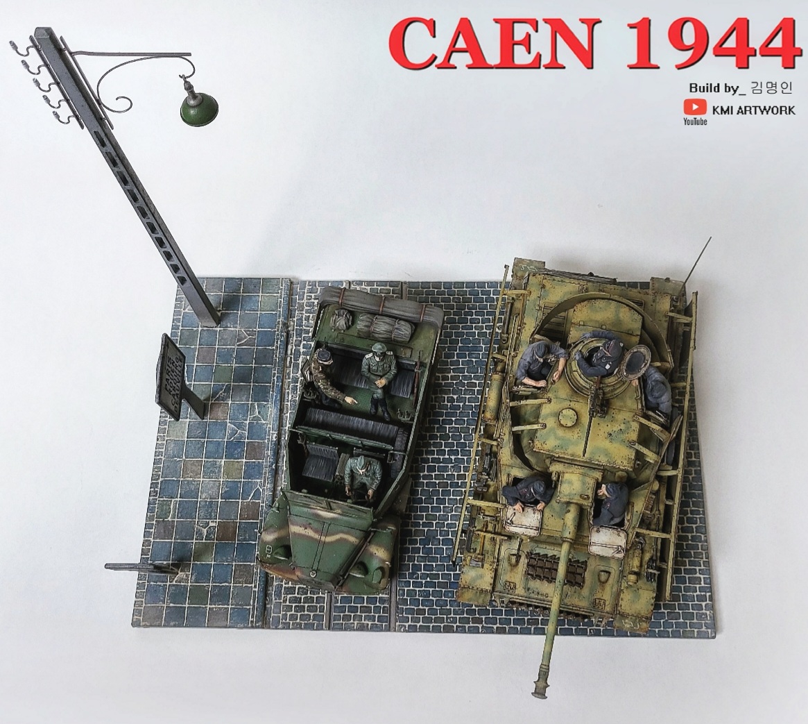 미니아트사의 1/35스케일 caen1944라는 디오라마 빅셋인데 4호전차,kfz차량, 피규어8명,베이스가 포함된 킷입니다.