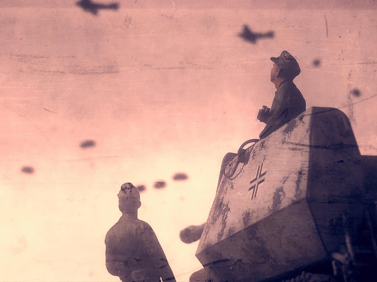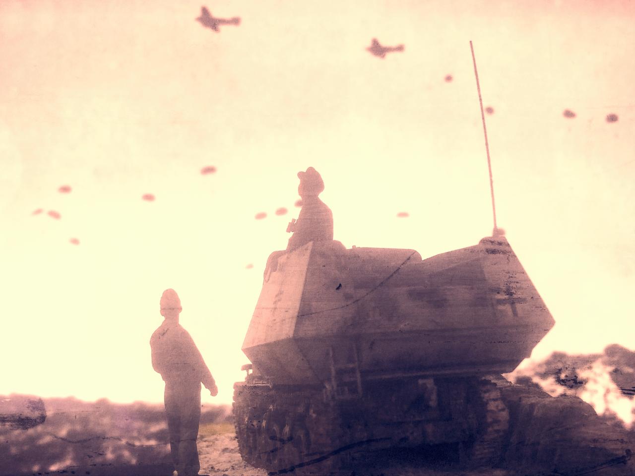 눈 처럼 떨어지는 연합군의 공수부대를 황망히 바라보며 패배를 직감하는 두 독일병사의 모습을 연출 하였습니다.