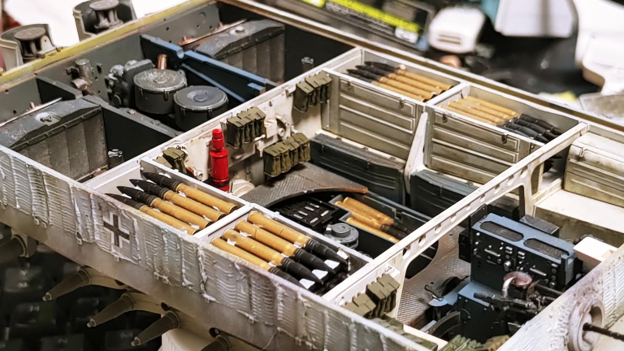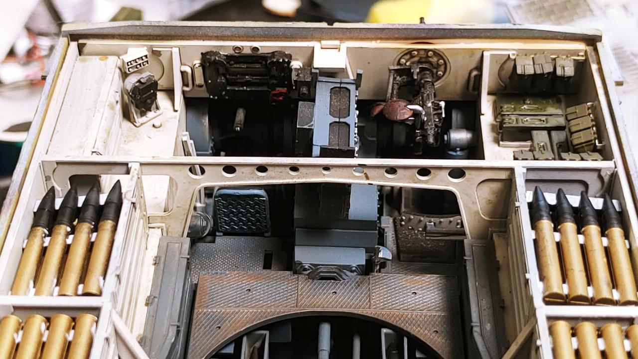 외부는 찌메리트코팅(모델링페이스트)-블랙서페-다크옐로-다크그린,레드브라운 위장(요기까지 락카)-동계위장(아크릴 워셔블 화이트)-워싱-웨더링 정도 순서로 작업하였습니다...