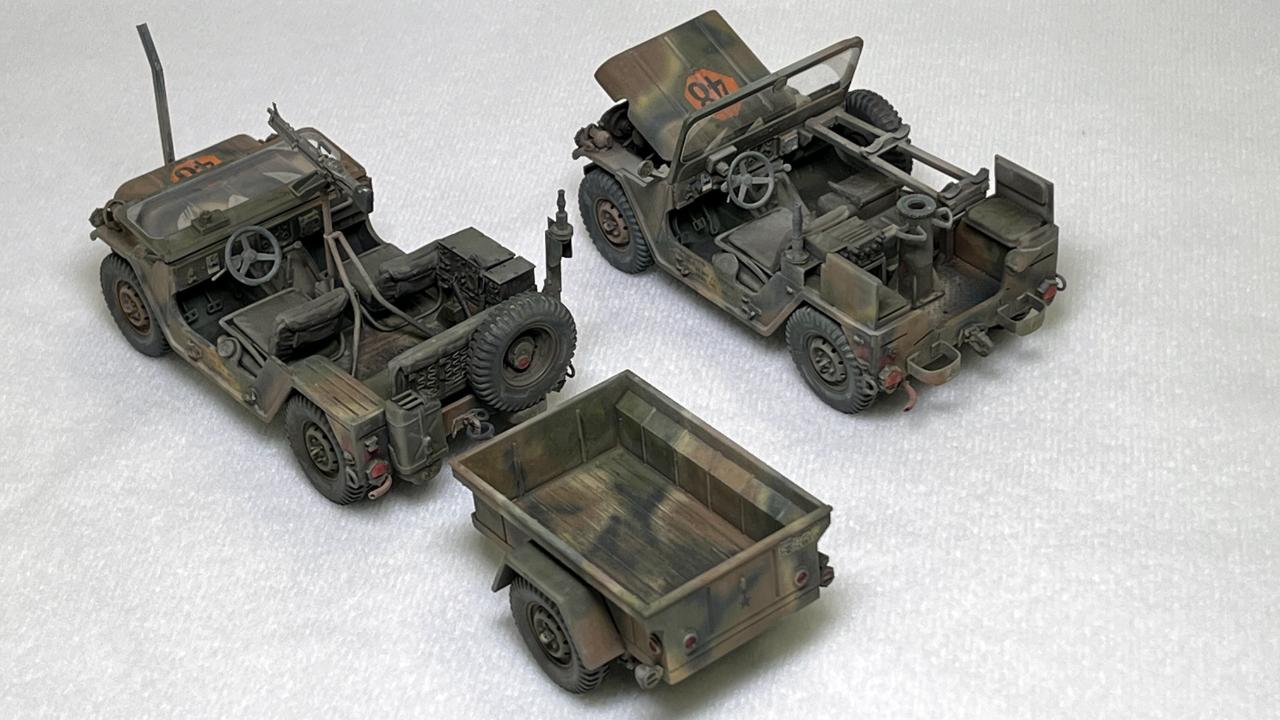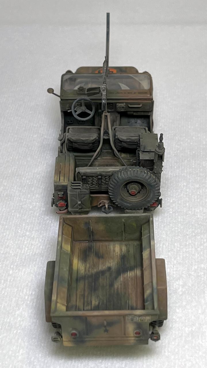 이 차량의 무전기는 Tamiya의 키트 그대로 쓰고 안테나포스트만 Verlinden 제품으로 교체해주었는데, 몰드의 워싱과 하일라이트를 잘 살려주었더니 트레일러차량의 레진부품과도 크게 위화감이 있지는 않아서 좋았습니다.