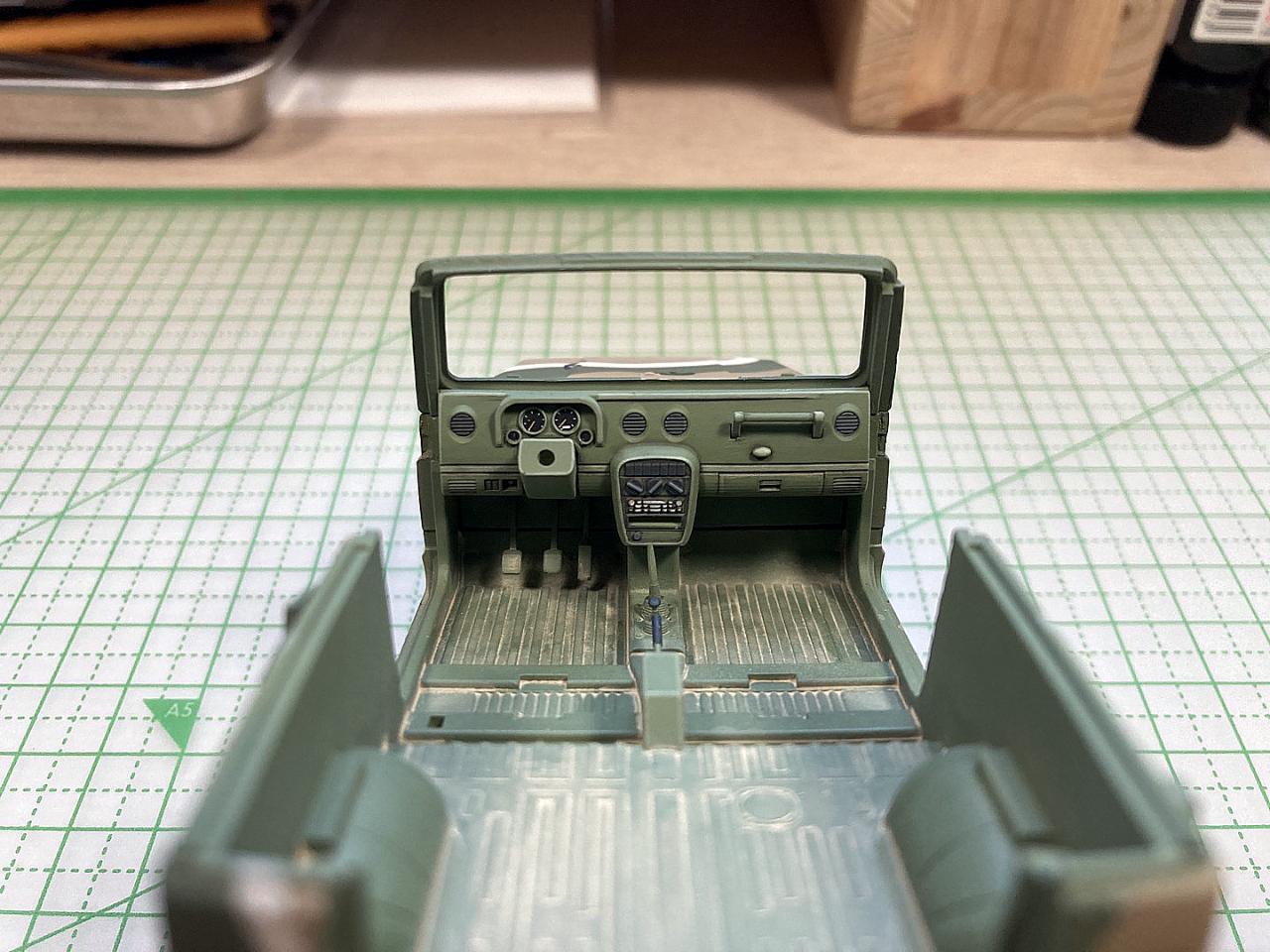 차량 내부 웨더링 및 대시보드를 결합한 모습입니다