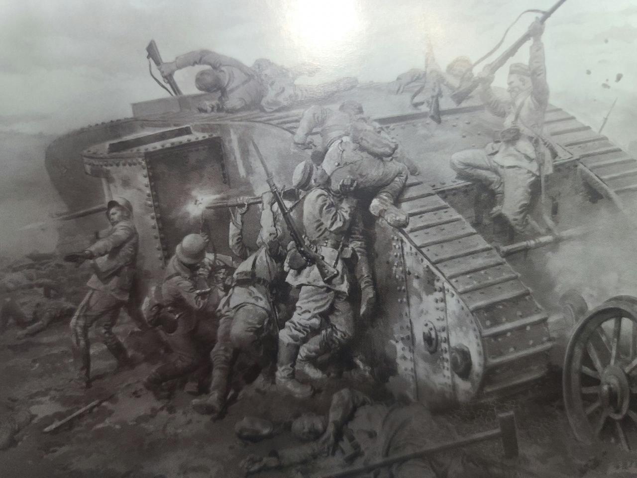 이 제품은 1차세계대전에서 전차가 처음 투입되었던 전투의 모습을 전투 다음날 프랑스 신문지상 삽화로 들어간 다음 이미지가 모티브가 된 제품으로 알고 있습니다.