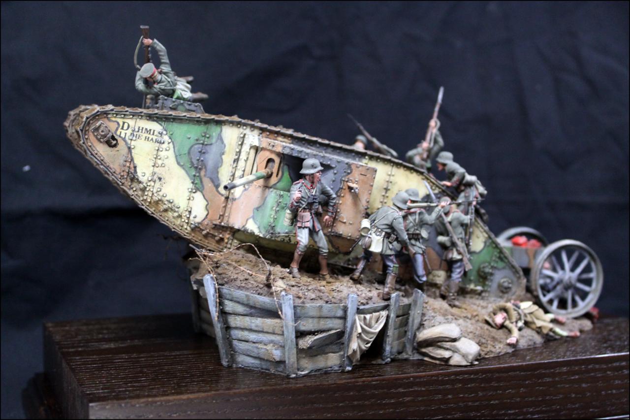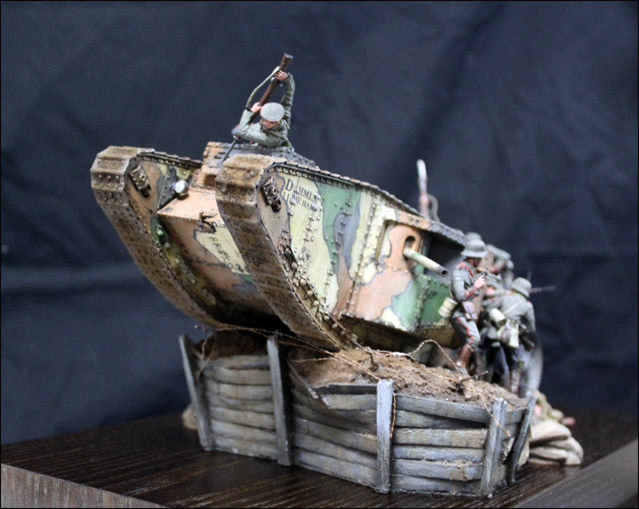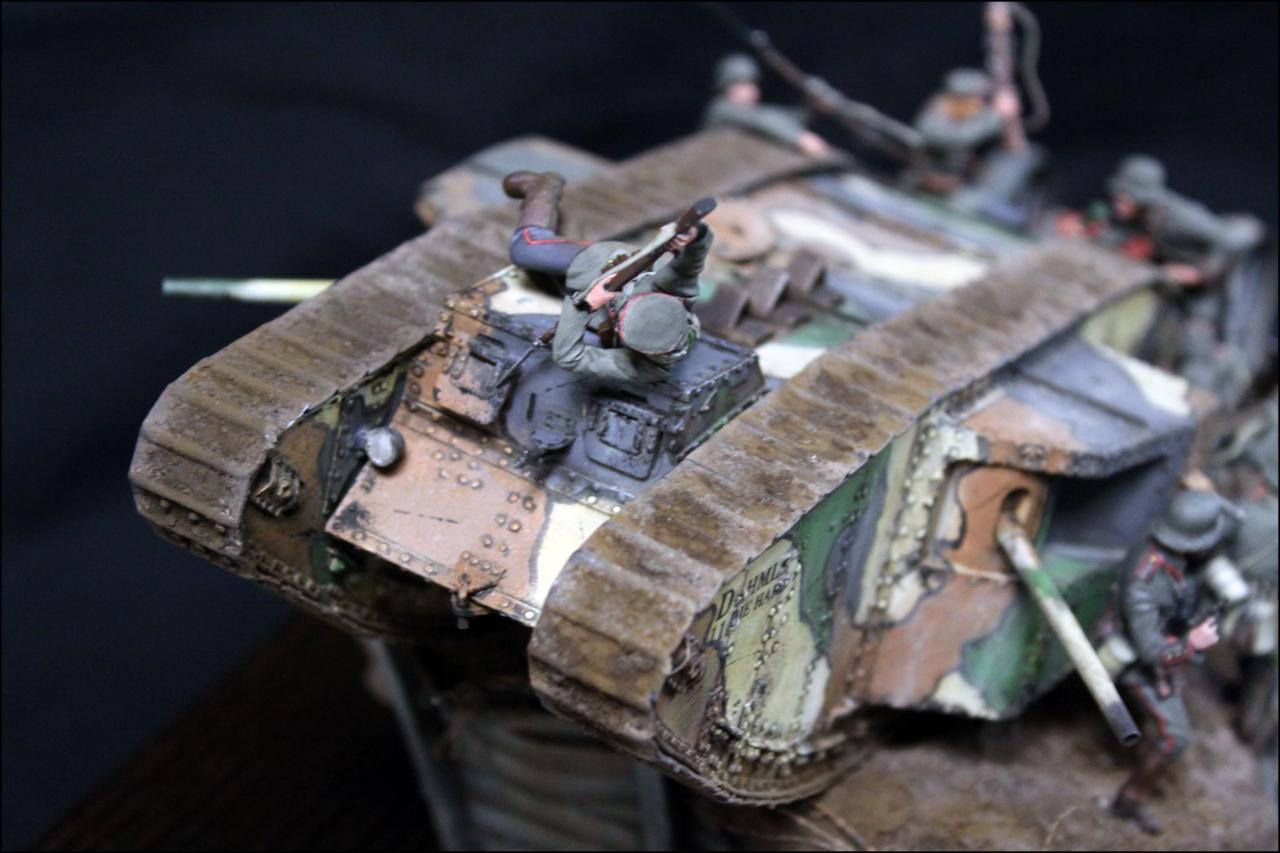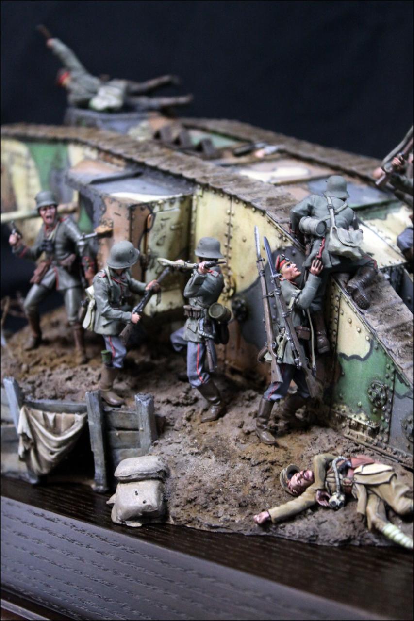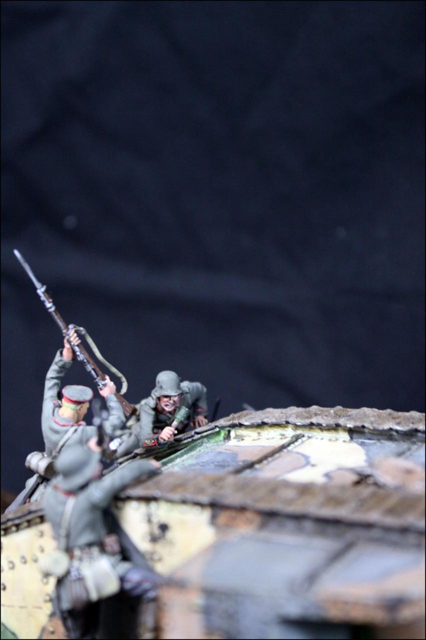 진지는 부숴졌고, 독일 보병들이 할 수 있었던 선택은...진지를 들이받고 고장나 멈춰선 영국군 전차에 올라타 내부를 공격하려는 시도로 자연스럽게 이어졌을거라 보이고...(실제로 많은 전차가 처음 전투에서 기계적 결함으로 멈춰선 것으로 알고 있습니다.) 이런 이미지가....어찌보면, 인간과 기계와의 사투를 그리는 모습이라.