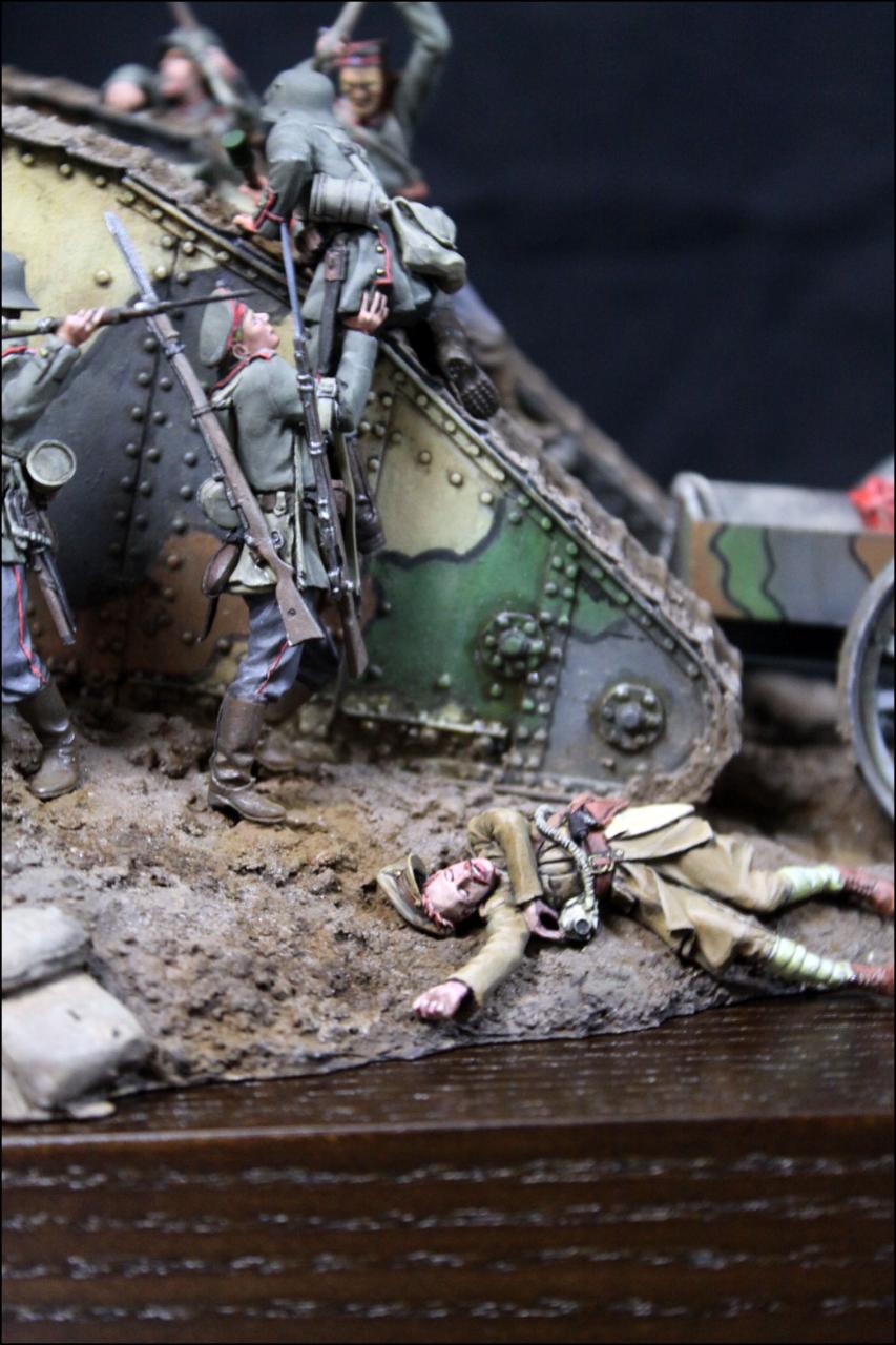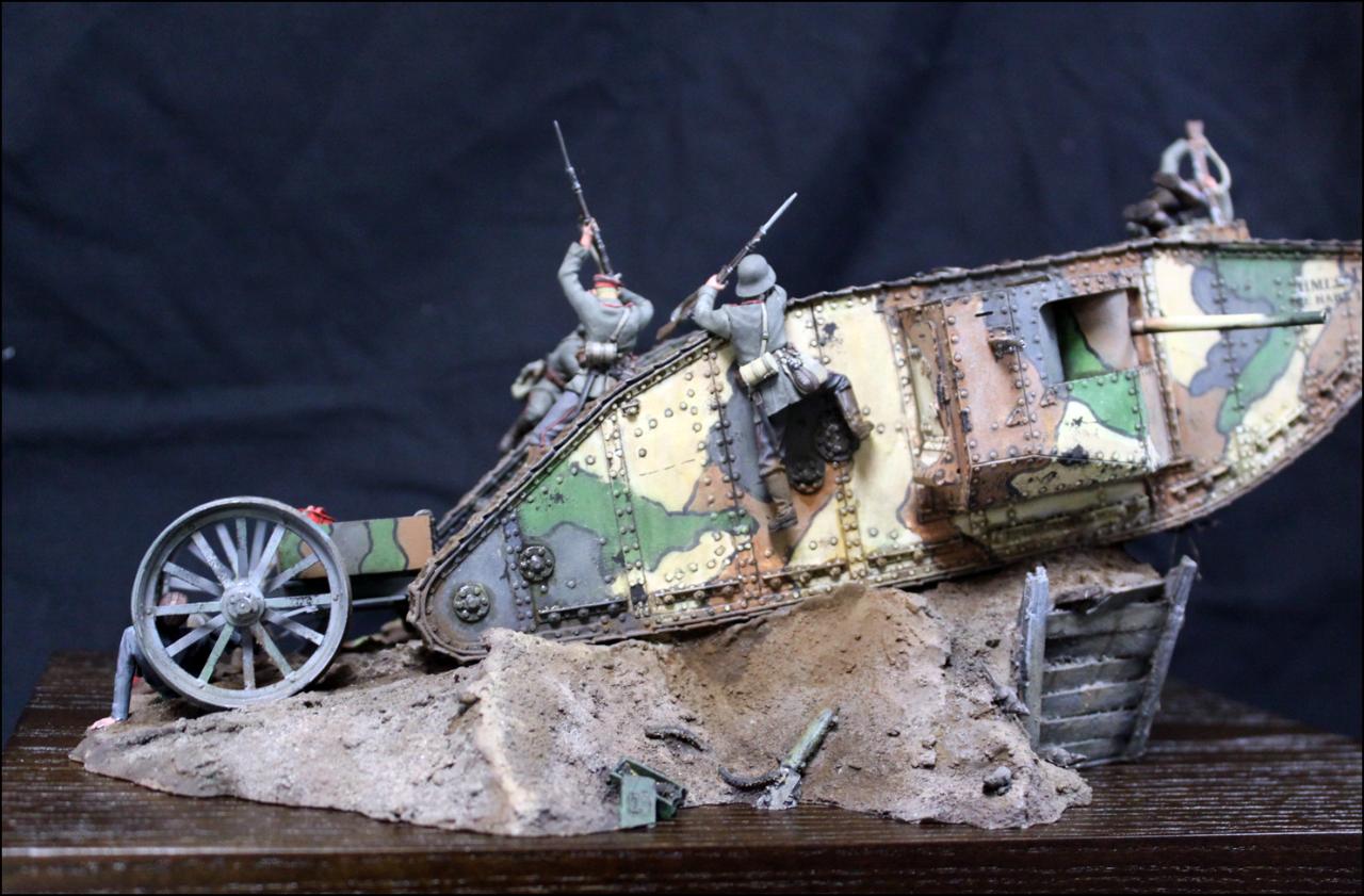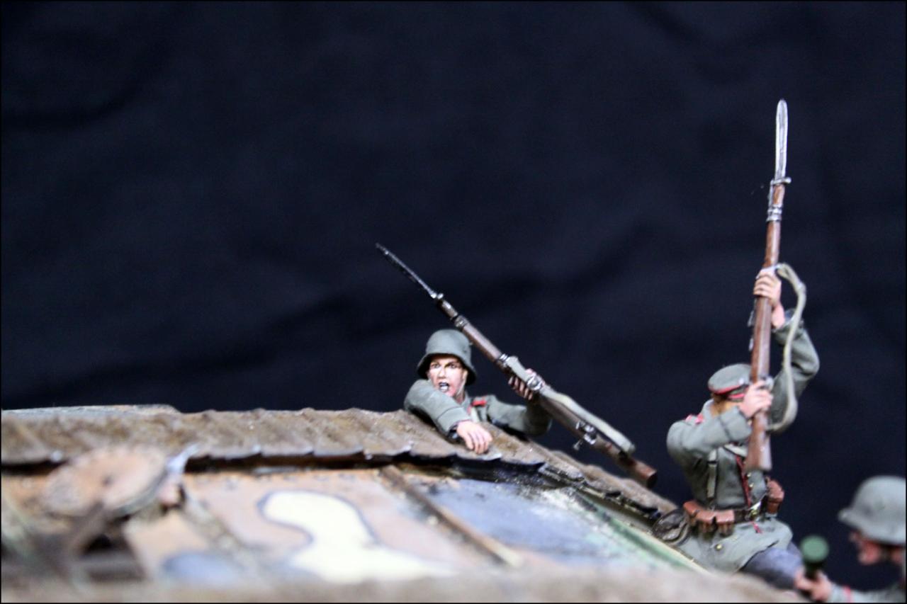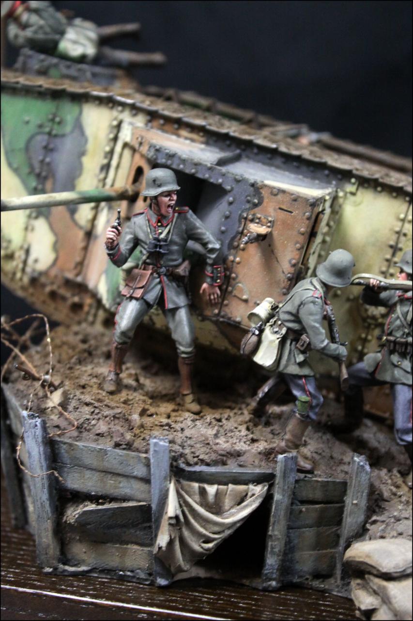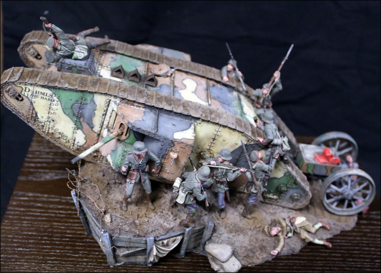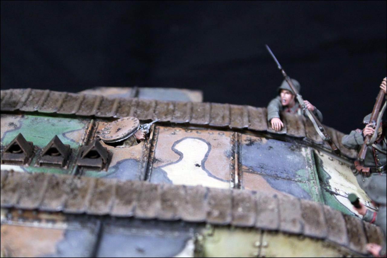 진지는 부숴졌고, 독일 보병들이 할 수 있었던 선택은...진지를 들이받고 고장나 멈춰선 영국군 전차에 올라타 내부를 공격하려는 시도로 자연스럽게 이어졌을거라 보이고...(실제로 많은 전차가 처음 전투에서 기계적 결함으로 멈춰선 것으로 알고 있습니다.) 이런 이미지가....어찌보면, 인간과 기계와의 사투를 그리는 모습이라.