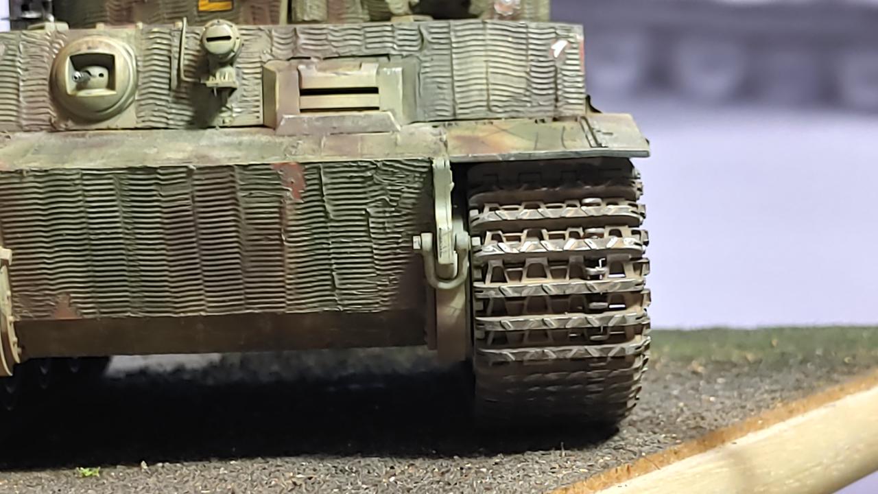 찌메릿의 아랫부분과 궤도 사이사이에 낀 흙은 피그먼트 사용을 어려워 하기때문에 미그사의 워셔블 어스를 묽게 희석하여 군데군데 고일만큼 분사해주고 말려준뒤 클리너로 튀어나온 부분의 도료를 제거해주고 제일 윗부분은 폴리시 메탈로 드라이 브러싱 해주었습니다...