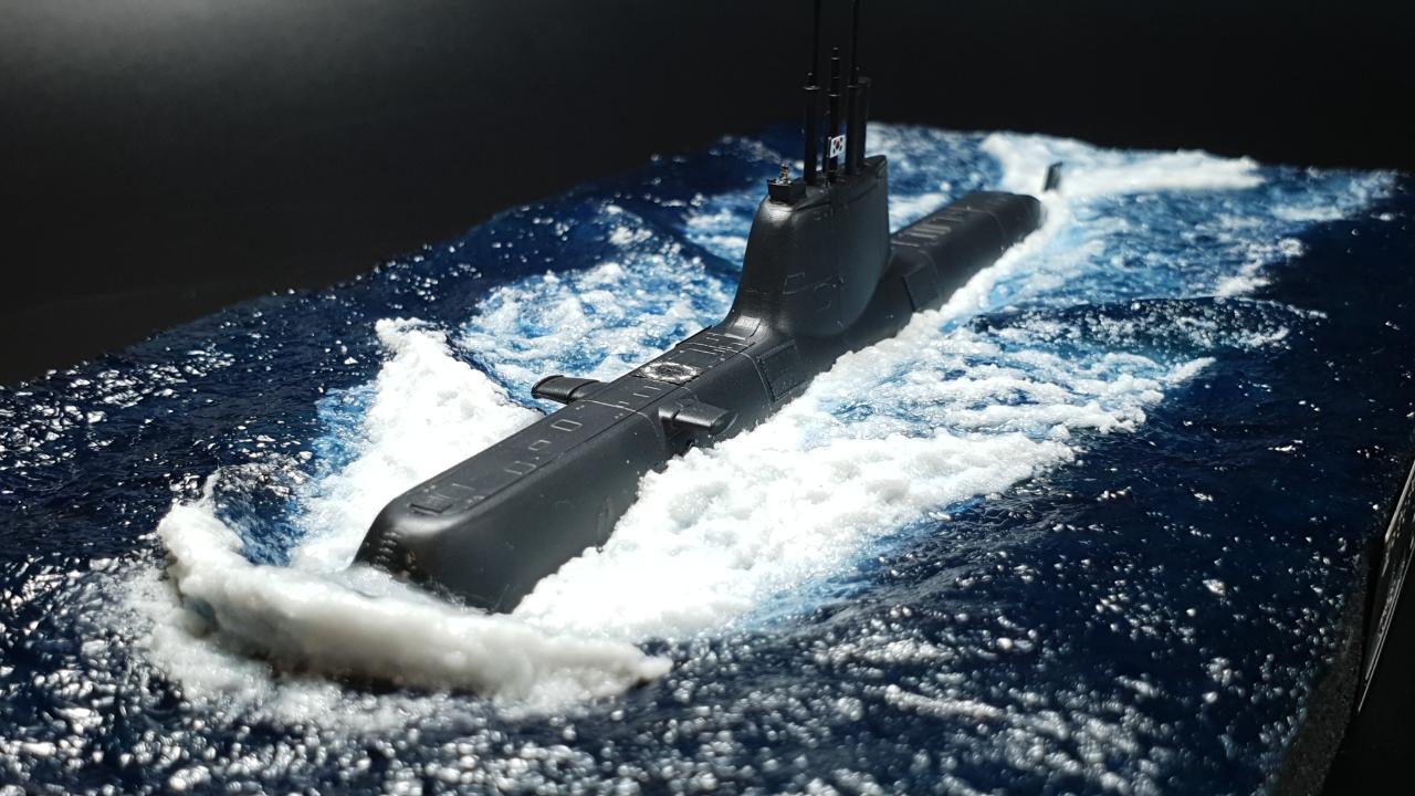 안녕하세요. 울프팩에서 발매된 대한민국해군의 손원일급 잠수함입니다. 실물도 그리 크지 않은 디젤잠수함이라 1/350으로도 다른 함선에 비하면 깜찍합니다.