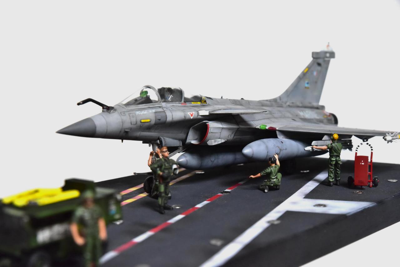 에이스 과학의 라팔 M입니다. 12년 전에 최초 제작했고 2일 간의 재도색 및 웨더링 추가버전입니다. 뭐, 다시 만드는게 더 쉬웠을 거라고 생각합니다만...제작 중 데칼을 찢어먹어 붓으로 그려넣었는데 위화감이 다소 있네요. 웨더링과 소금기 표현을 강하게 넣었는데 부족한 점이 많습니다. 즐감하세요. 아래 디오라마의 베이스와 피규어는 미군이라 설정에 맞지 않습니다. 참고하시고요.