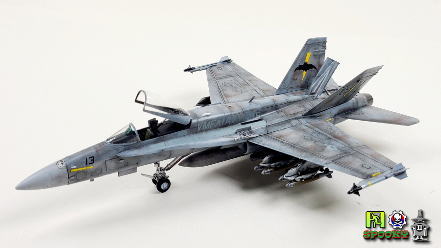 하세가와 1/72 F/A-18C HORNET에 아카데미 1/72 CHIPPYHO 제품에 있는 데칼을 이용해 VMFA(AW)-242 BAT 단좌형으로 작업하고 무장은 아카데미 1/72 F-15E에 있는 GBU-38을 달아주었습니다.